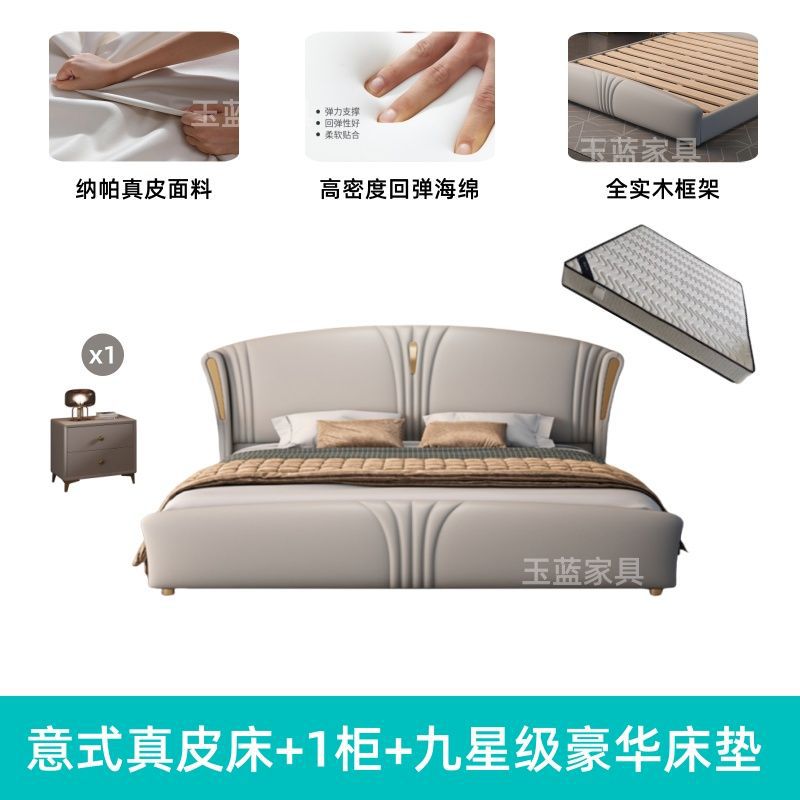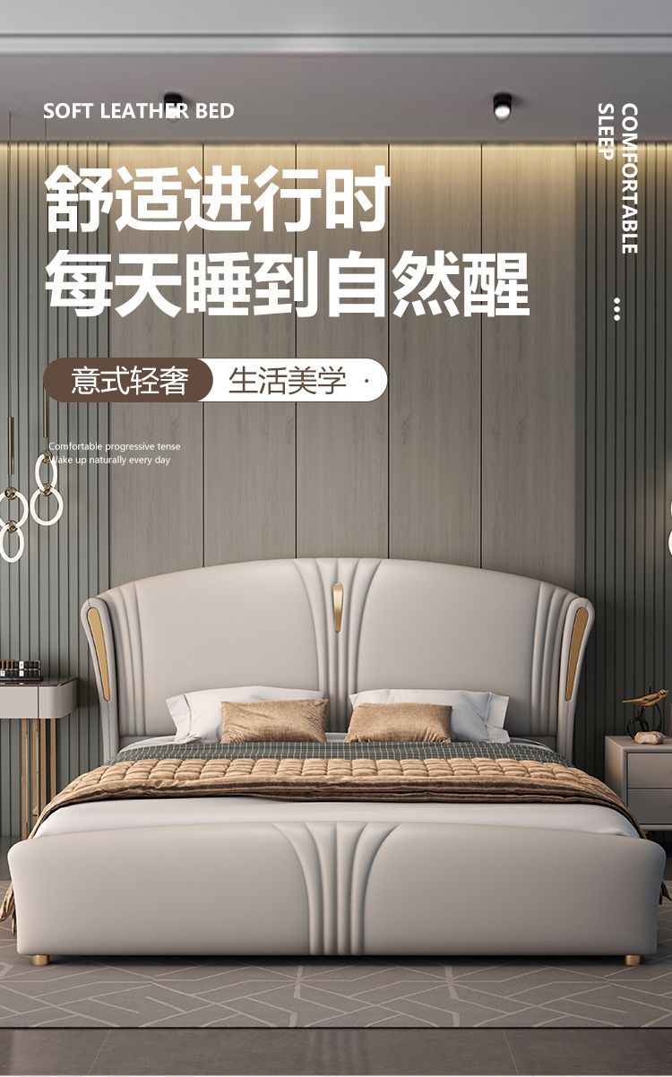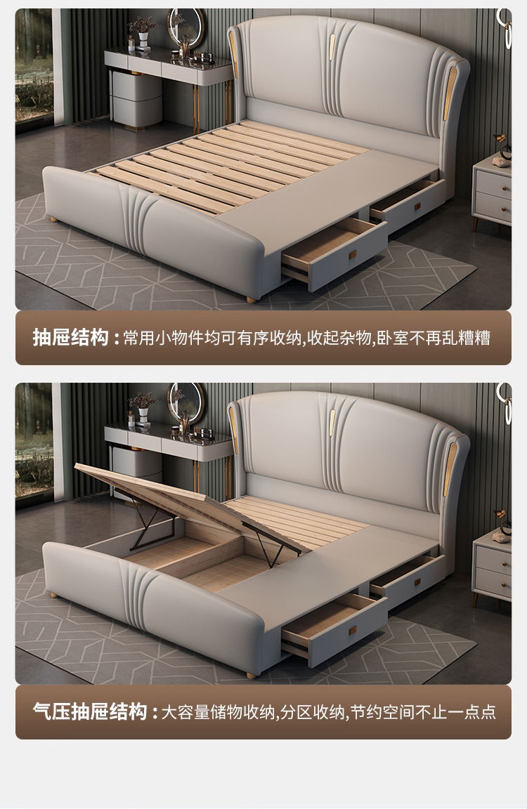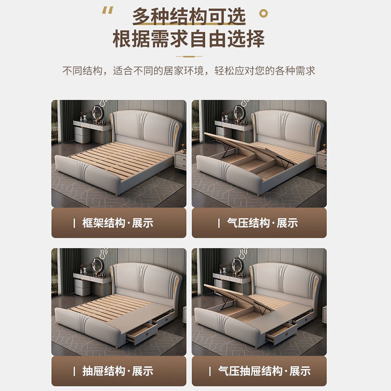 Легкая роскошная кровать из натуральной кожи, кровать в простом стиле интернет-знаменитостей, маленькая квартира с ящиком для хранения, большая кровать, минималистская домашняя двуспальная кровать