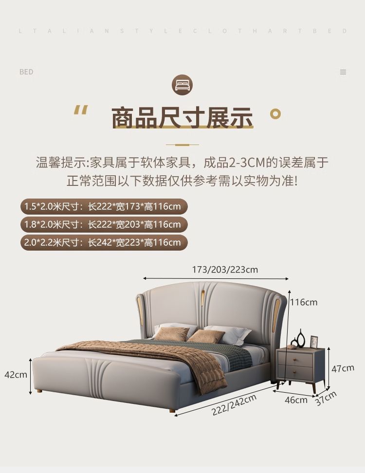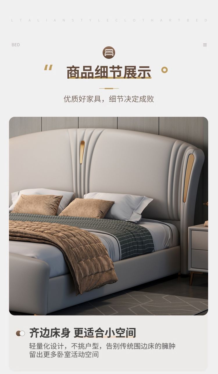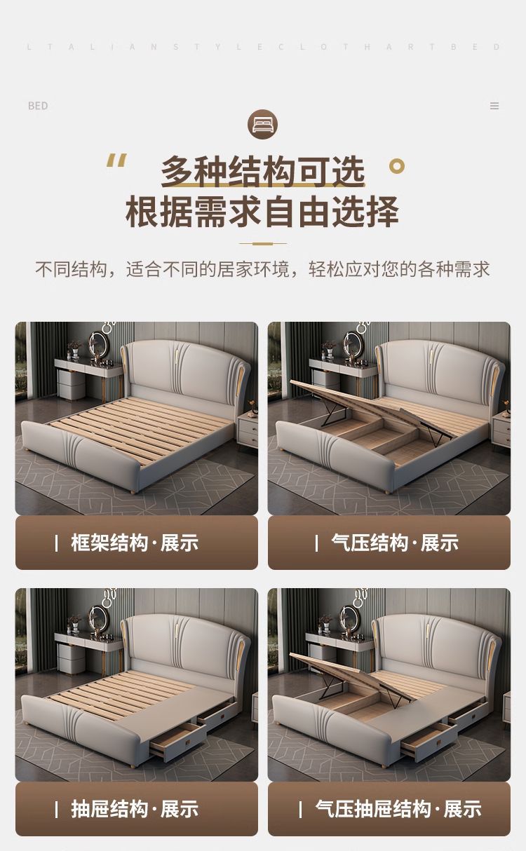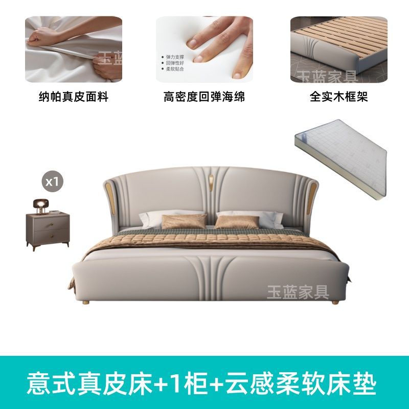 Легкая роскошная кровать из натуральной кожи, кровать в простом стиле интернет-знаменитостей, маленькая квартира с ящиком для хранения, большая кровать, минималистская домашняя двуспальная кровать