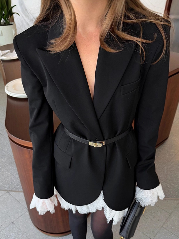 Женский черный блейзер в стиле "старые деньги" для осени и зимы 2025 года, элегантный офисный свободный силуэт, маленький костюм, высококачественная женская одежда