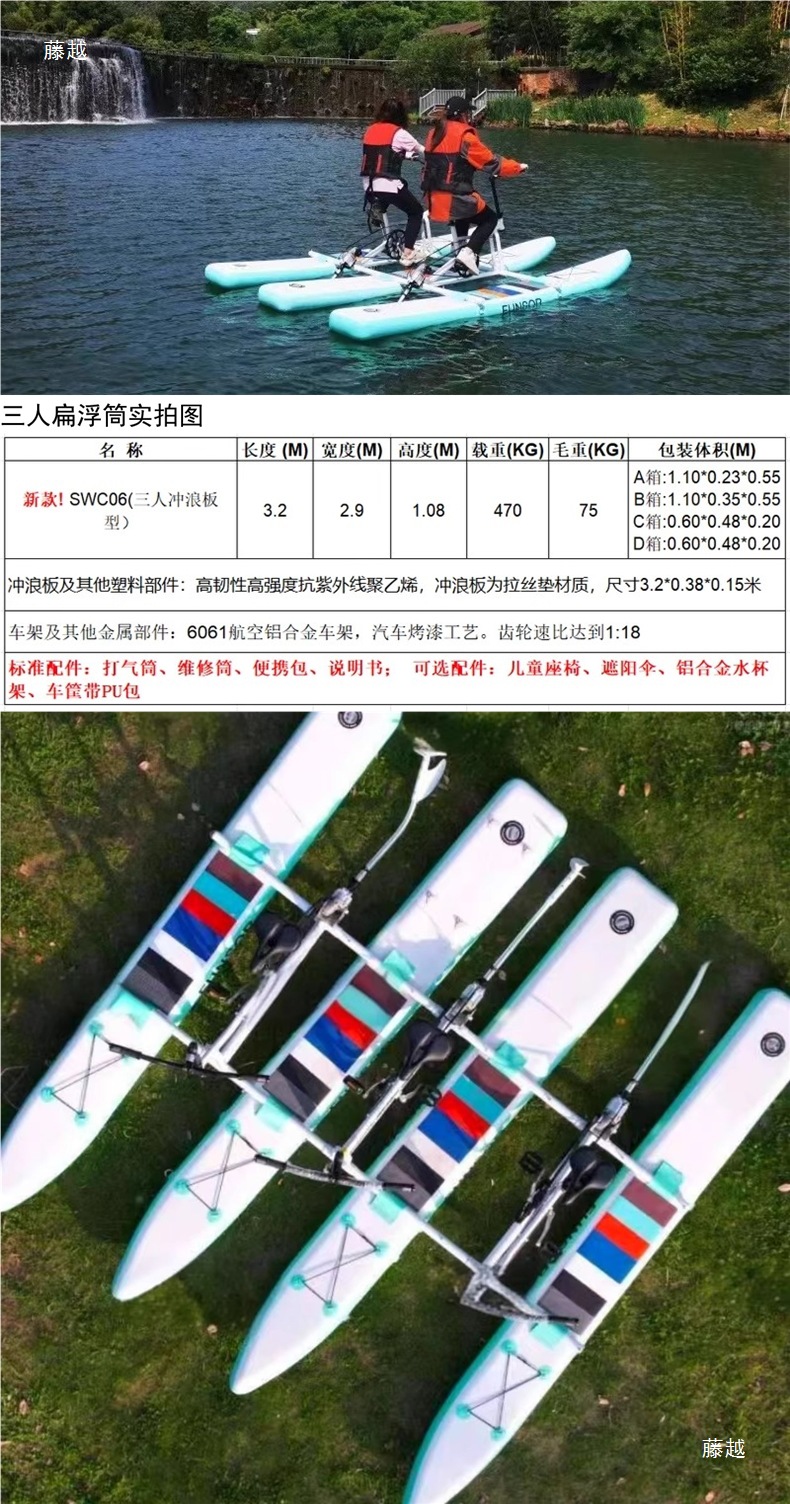 Водный велосипед, каяк, трёхместная надувная лодка с педалями, прогулочный катер, парковый электровелосипед