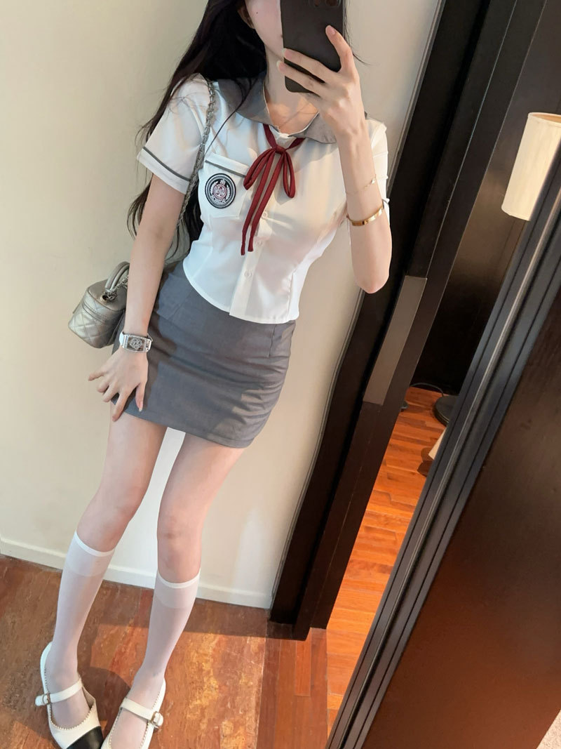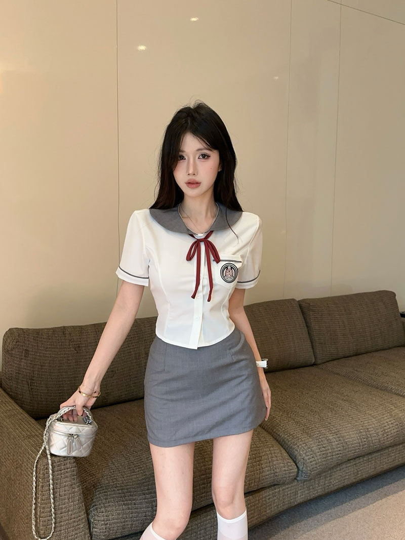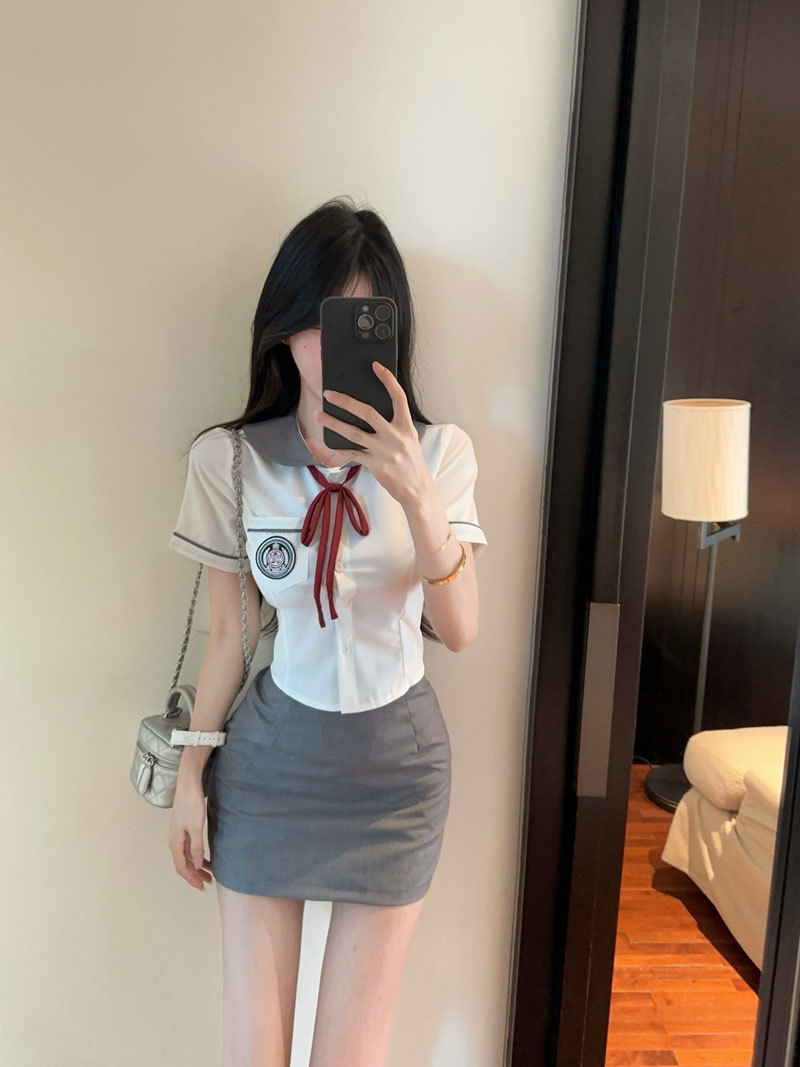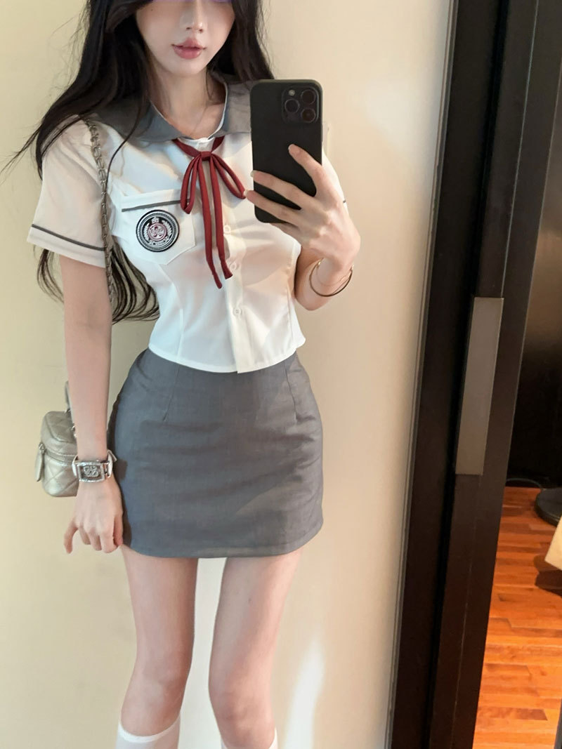 Комплект униформы Petite JK Pure Desire Spicy Girl, стильная рубашка с короткими рукавами и завышенной талией, облегающая бедра юбка с высокой талией, комплект из двух предметов для женщин.