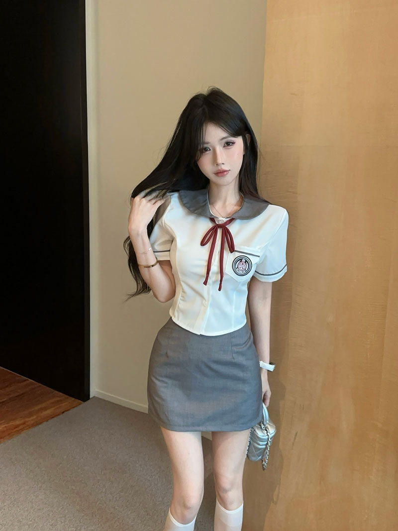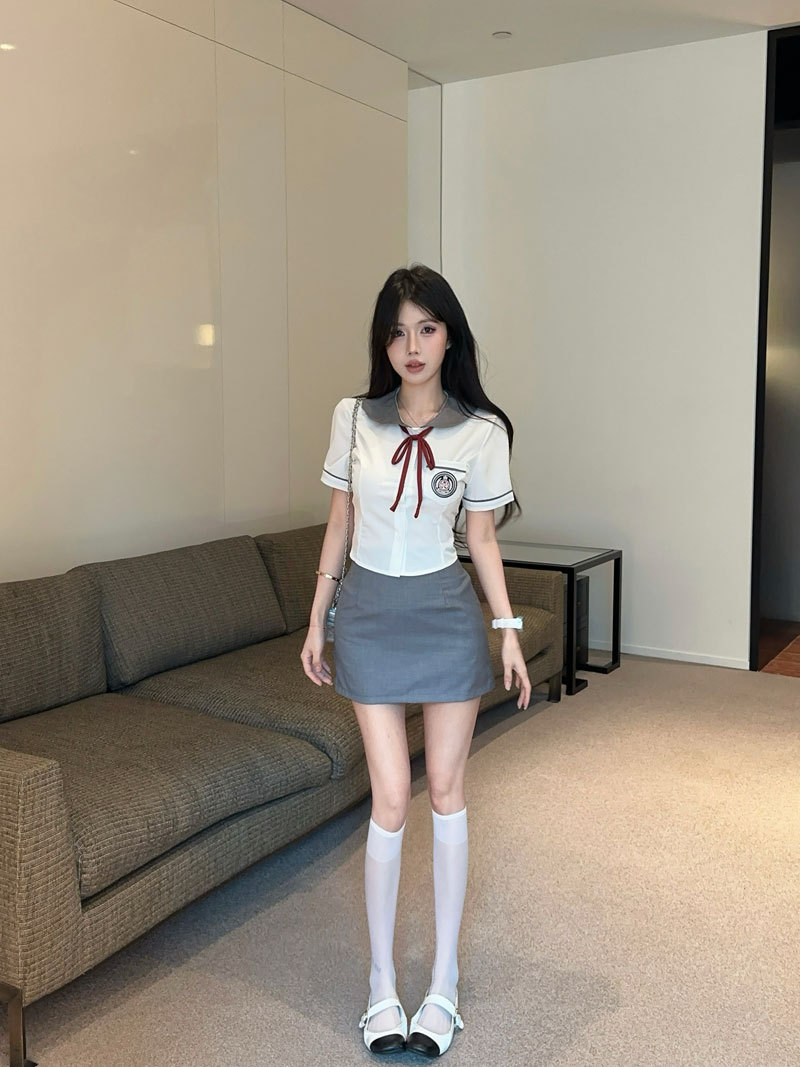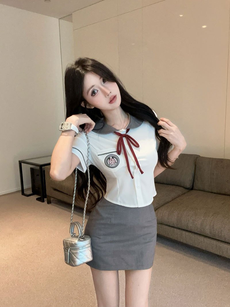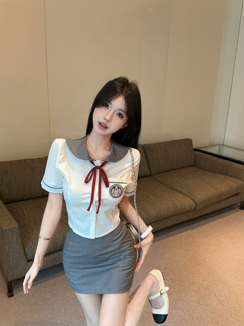 Комплект униформы Petite JK Pure Desire Spicy Girl, стильная рубашка с короткими рукавами и завышенной талией, облегающая бедра юбка с высокой талией, комплект из двух предметов для женщин.