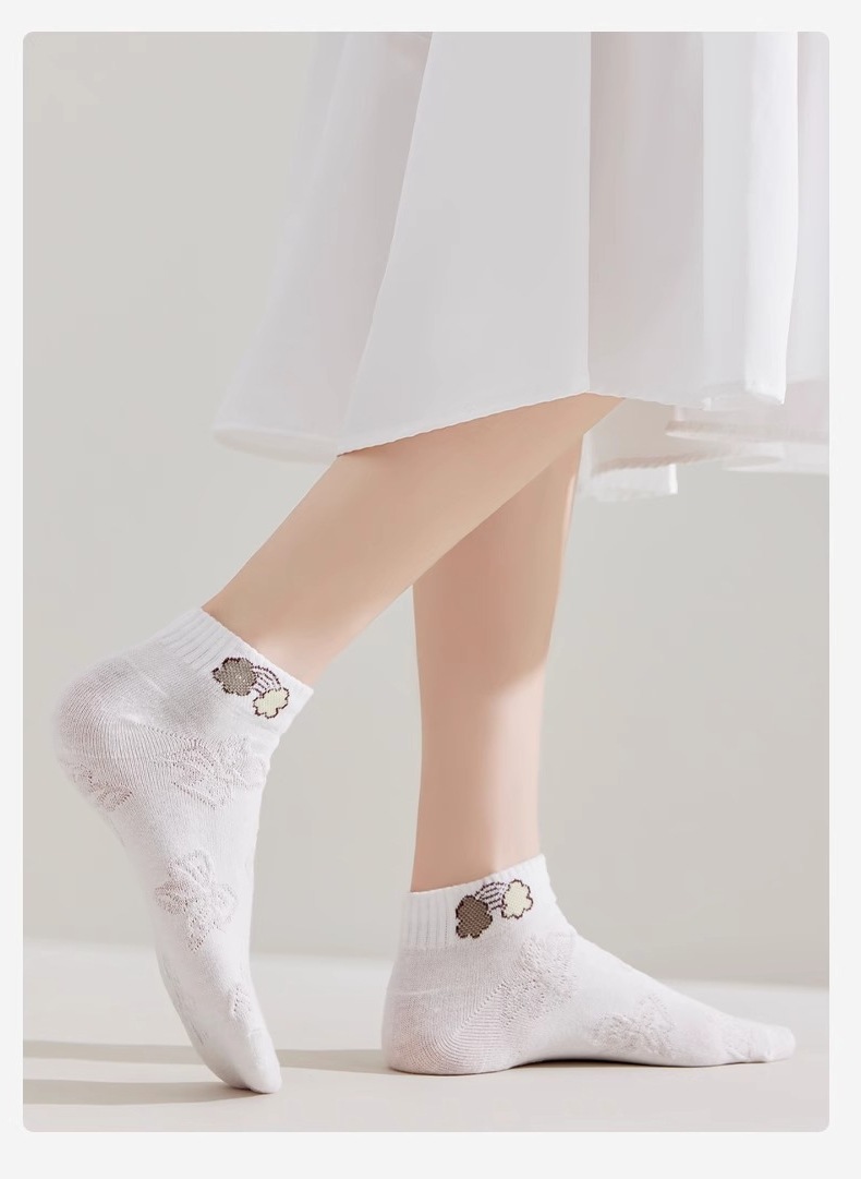 Облако белые весенне-летние женские маленькие белые носки с героями мультфильмов, впитывающие пот и дезодорирующие неглубокие носки с низким вырезом, модные носки, оптовая продажа, носки-лодочки для женщин