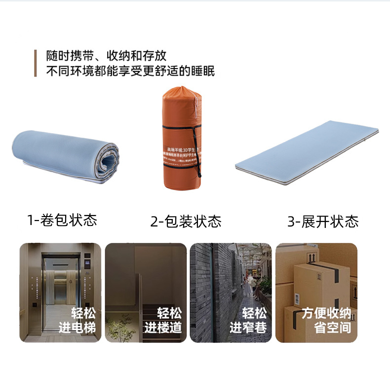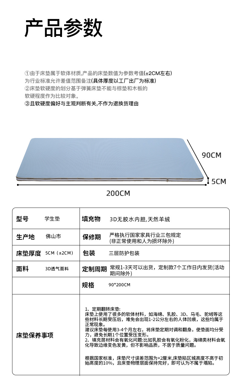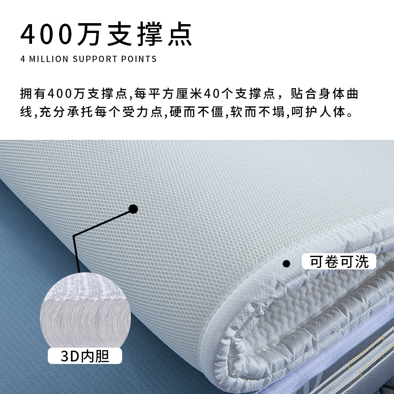 Тип A (как для зимы, так и для лета) имеет общую толщину 5 см: 3D-сотовая дышащая стираная ткань + 2cm 3D-основной материал + 2cm кашемировый хлопок (поставляется с водонепроницаемой сумкой для хранения).; Тип B (умеренный и слегка жесткий), общая толщина 5 см: 3D-сотовая дышащая стираная ткань + 2 см 3D-основной материал + 2 см 3D-основной материал (поставляется с водонепроницаемой сумкой для хранения); Для индивидуальных размеров, пожалуйста, свяжитесь со службой поддержки клиентов