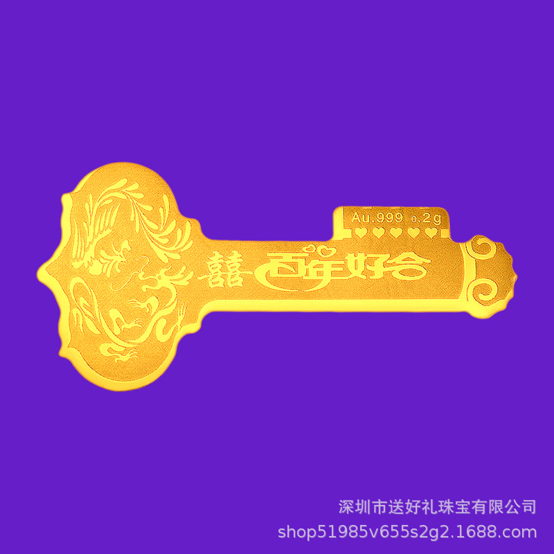 金银钥匙、黄金摆件、黄金书签、足金足银、黄金饰品定制、金银箔画、金丝彩绘印刷、3D硬金饰品、