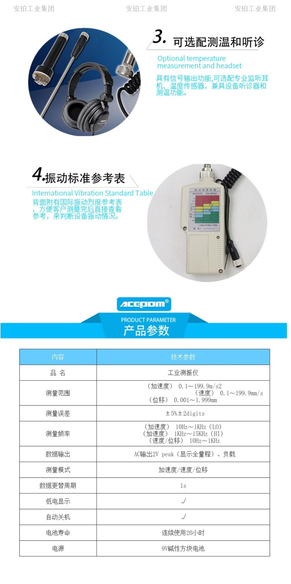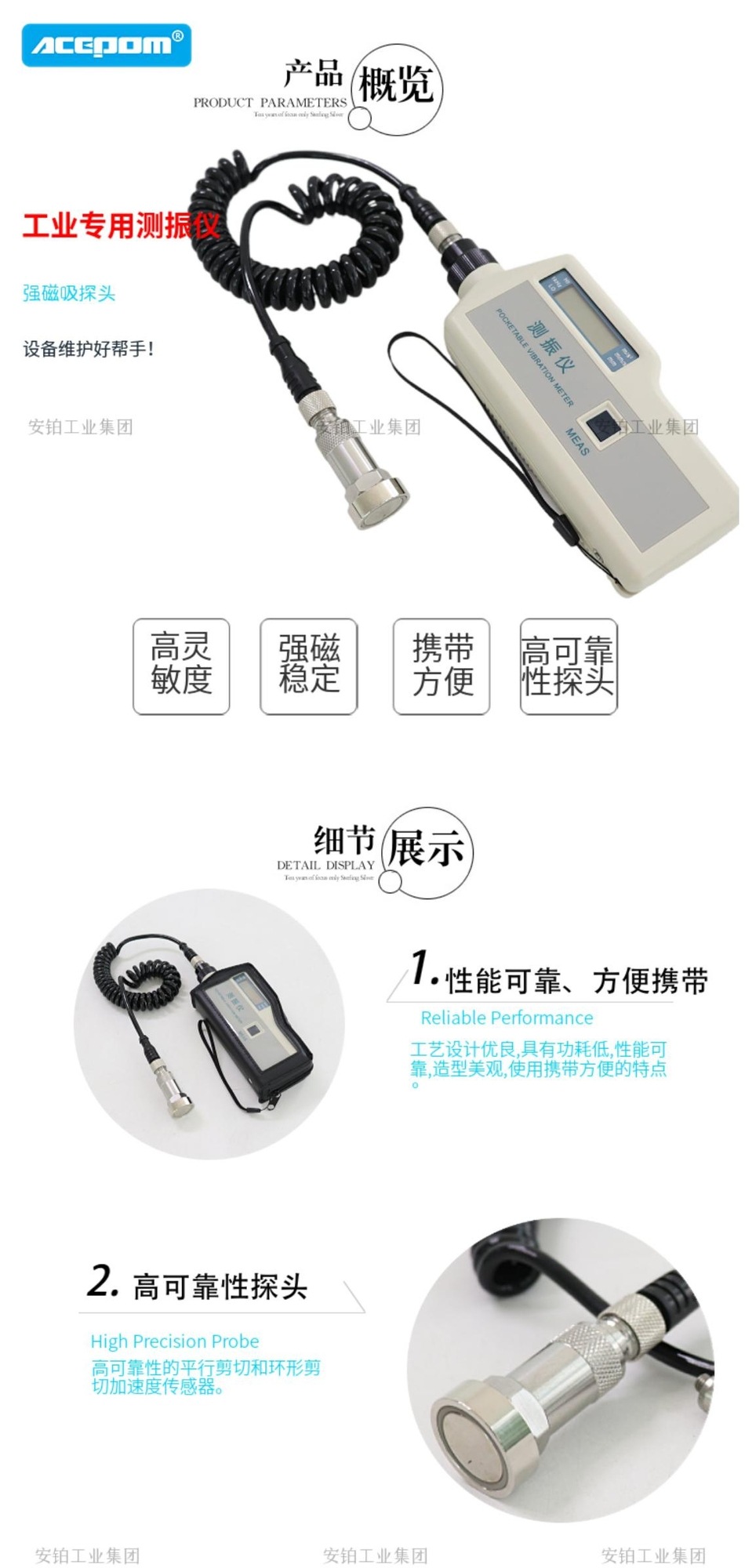 Взрывозащищенный виброметр янтарного цвета ACEPOM316/314/316M, портативный цифровой дисплей, скорость, ускорение, смещение