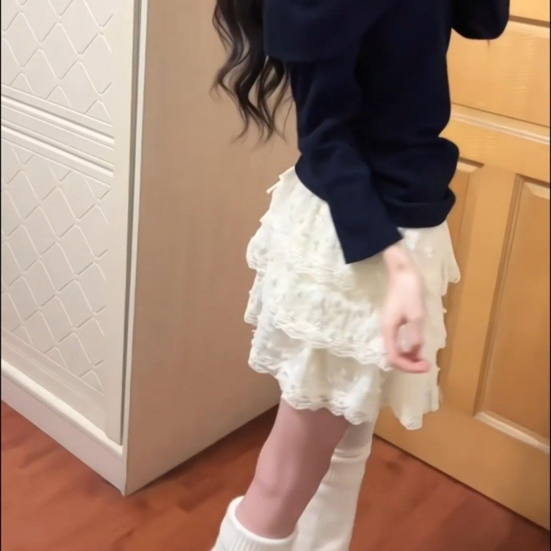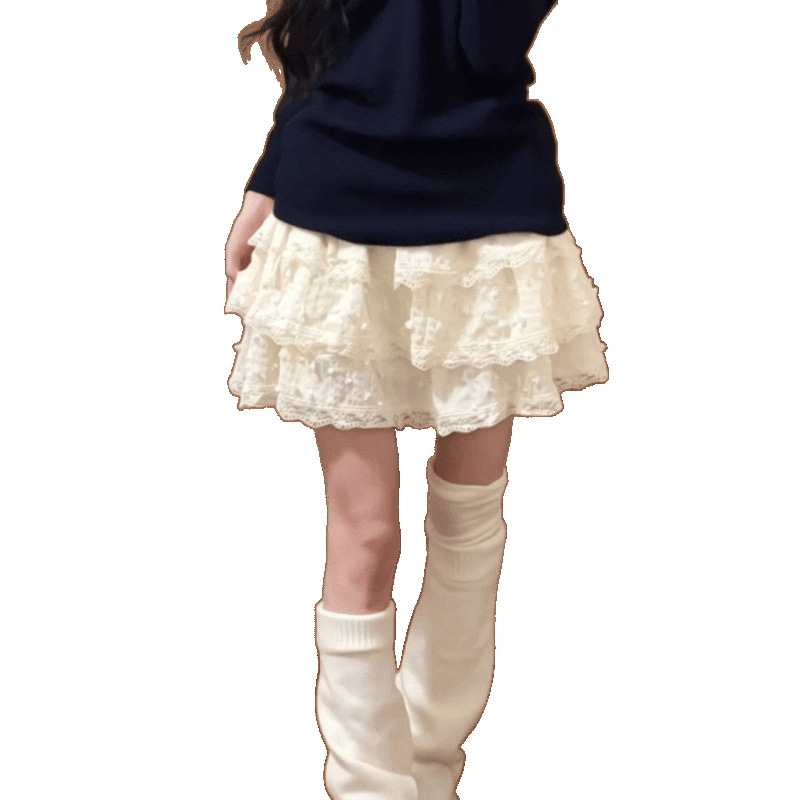 Маленькая женская юбка в корейском стиле, тяжелое кружевное соединение, пышная юбка-тортик, милый девичий стиль, юбка средней длины.