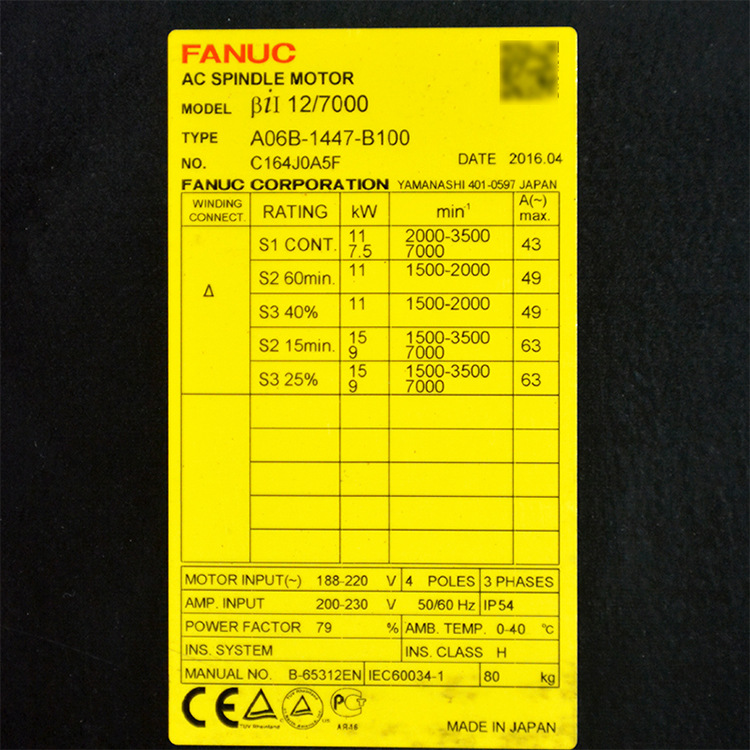 A06B-1447-B100 Fanuc FANUC серводвигатель, новый оригинальный, бывший в употреблении, цена договорная