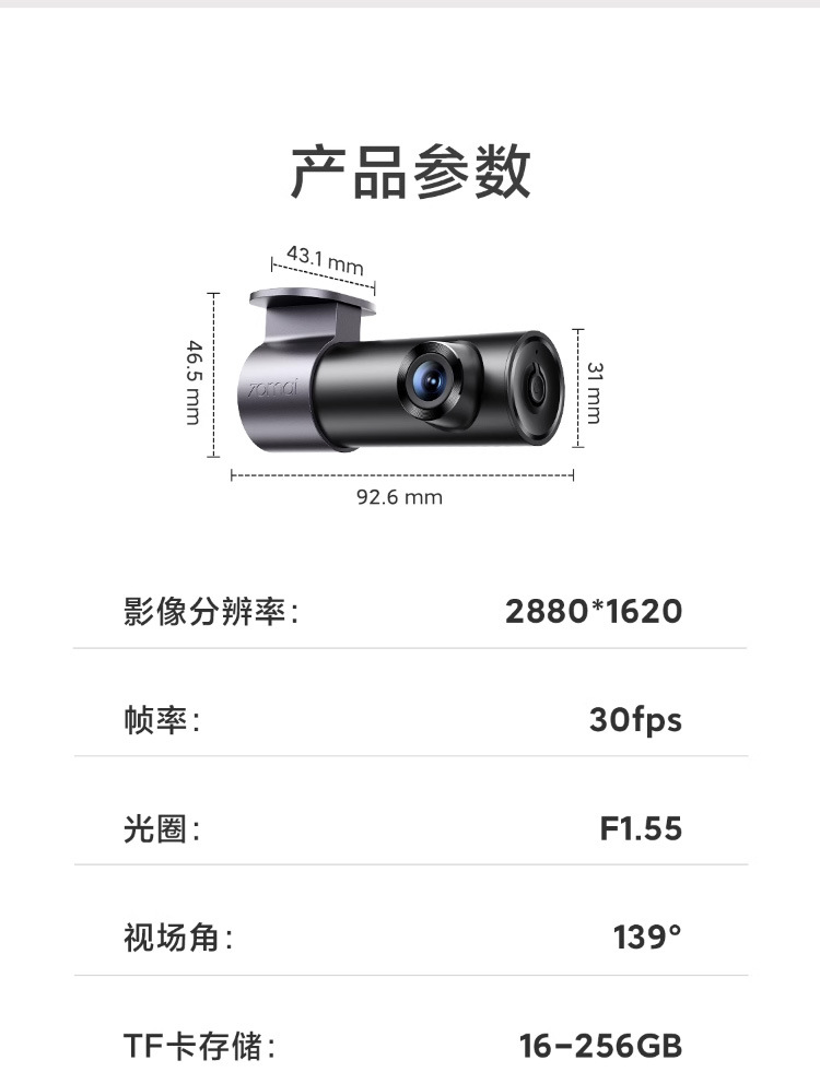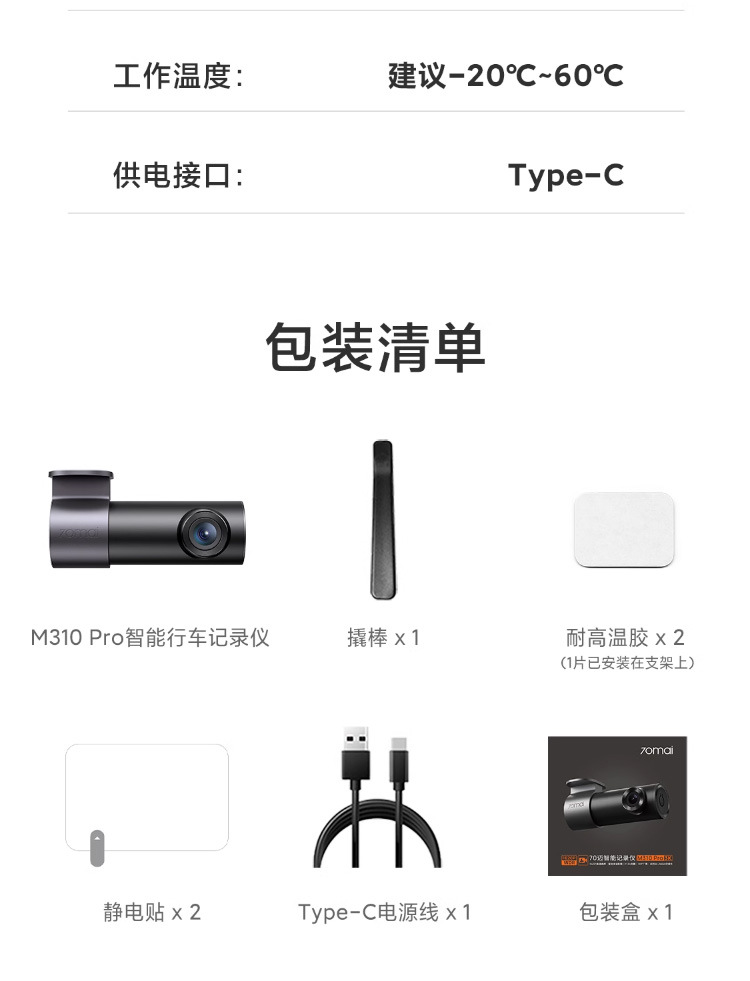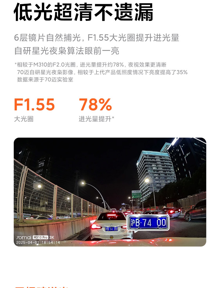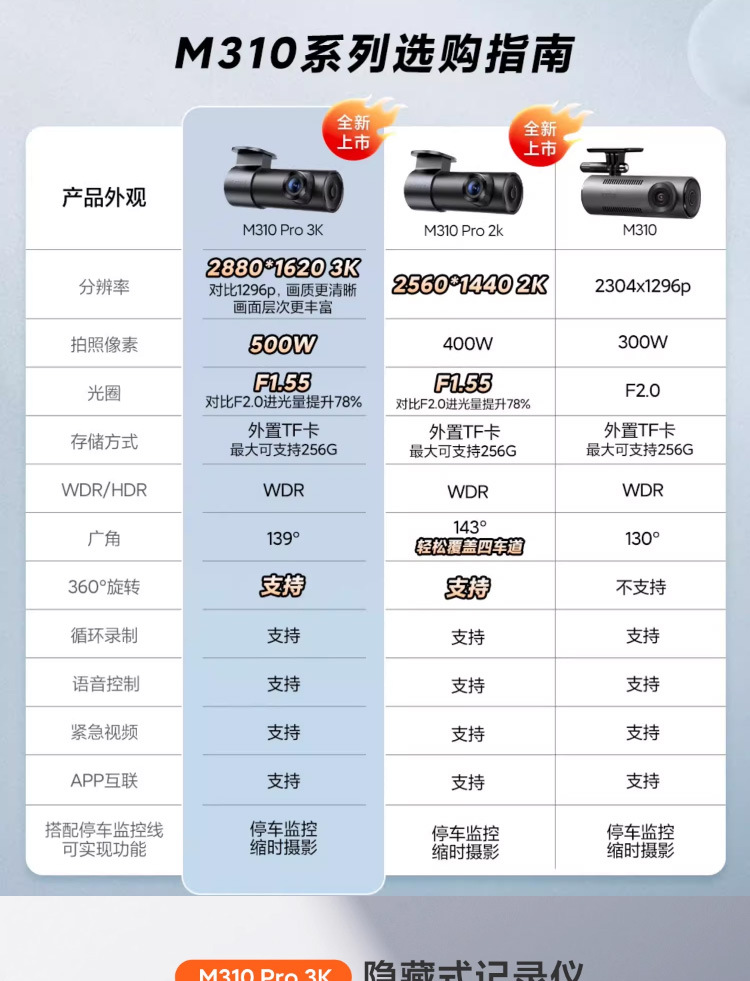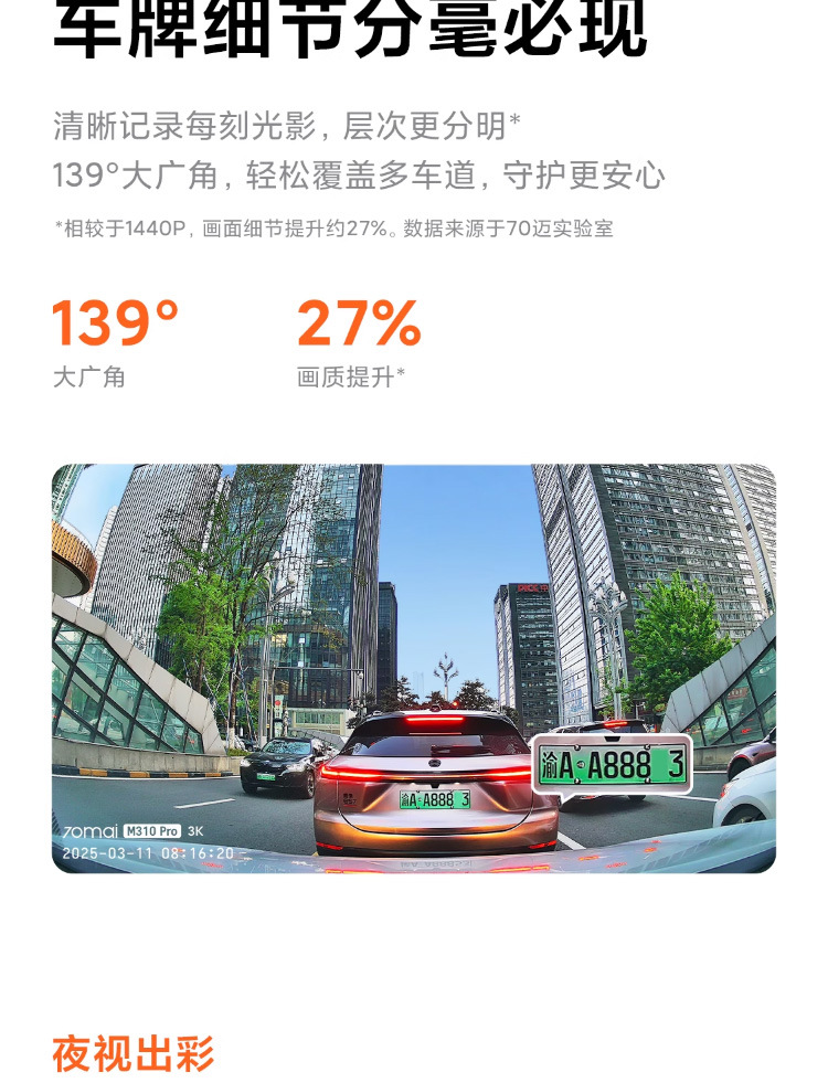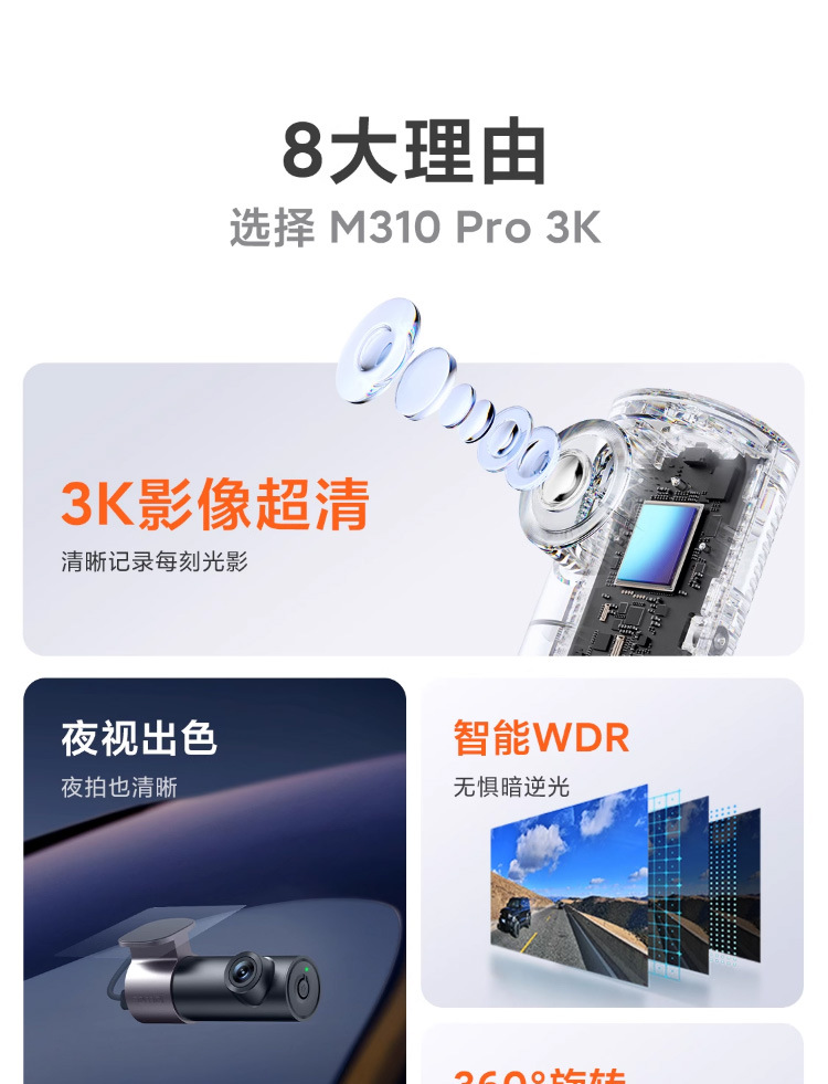 70迈行车记录仪M310 Pro 3K高清夜视汽车载停车监控70mai免走线