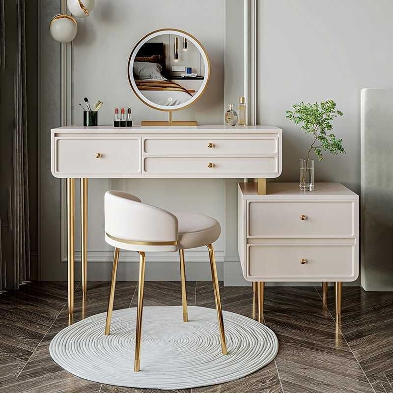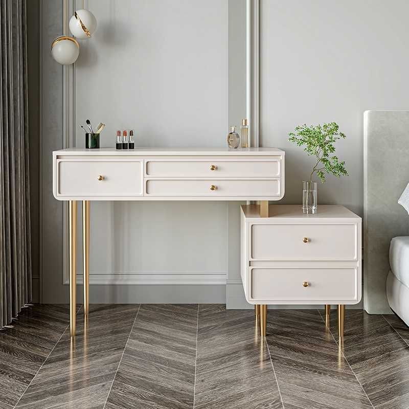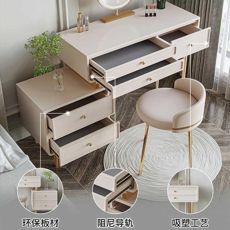 Туалетный столик и шкаф в кремовом стиле, встроенный современный простой туалетный столик для дома, спальни, легкий роскошный туалетный столик для маленькой квартиры, дерево