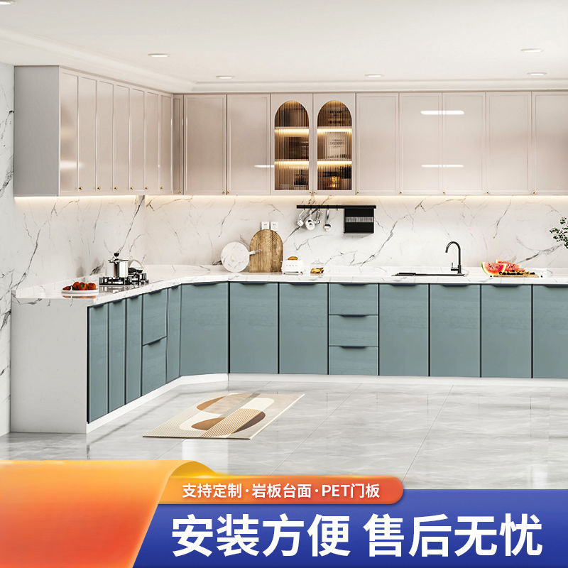 Экономичный кухонный шкаф на заказ со встроенной мойкой, мраморной столешницей, шкафом для раковины из нержавеющей стали, простой дизайн для трансграничной торговли