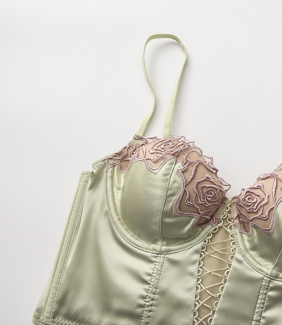 Винтажный корсет из рыбьей кости, европейский и американский жилет с вышивкой розы, корректирующий талию, нижнее белье, собранный французский тонкий комплект с бюстгальтером.