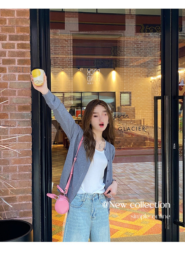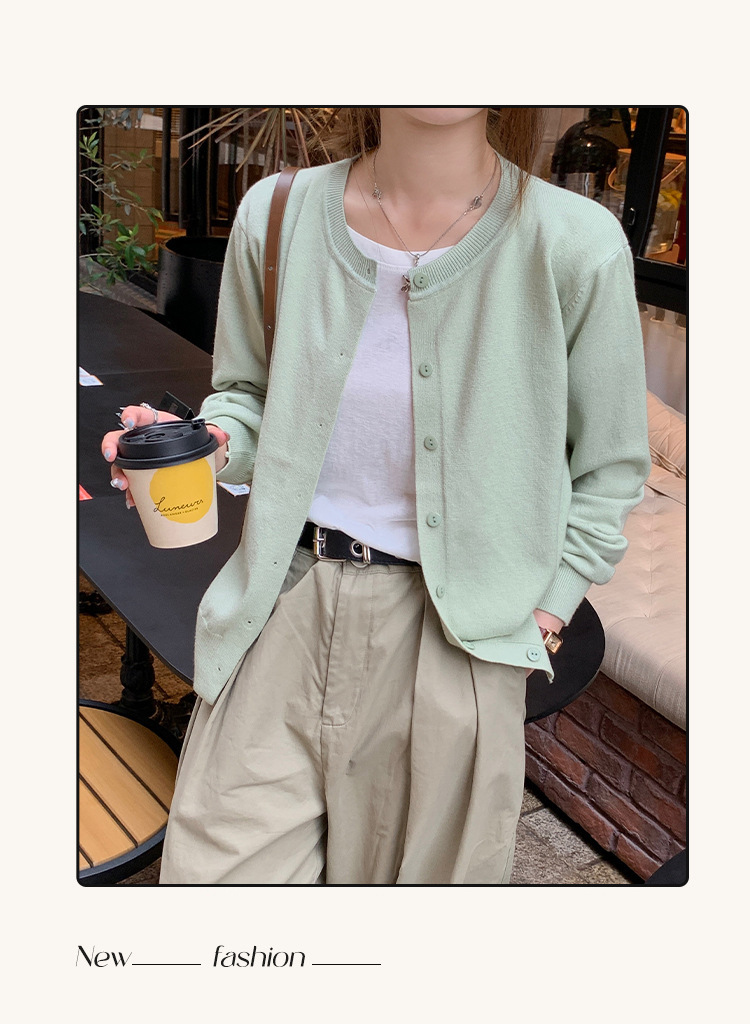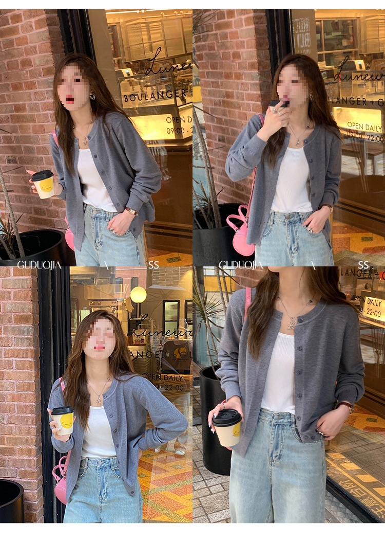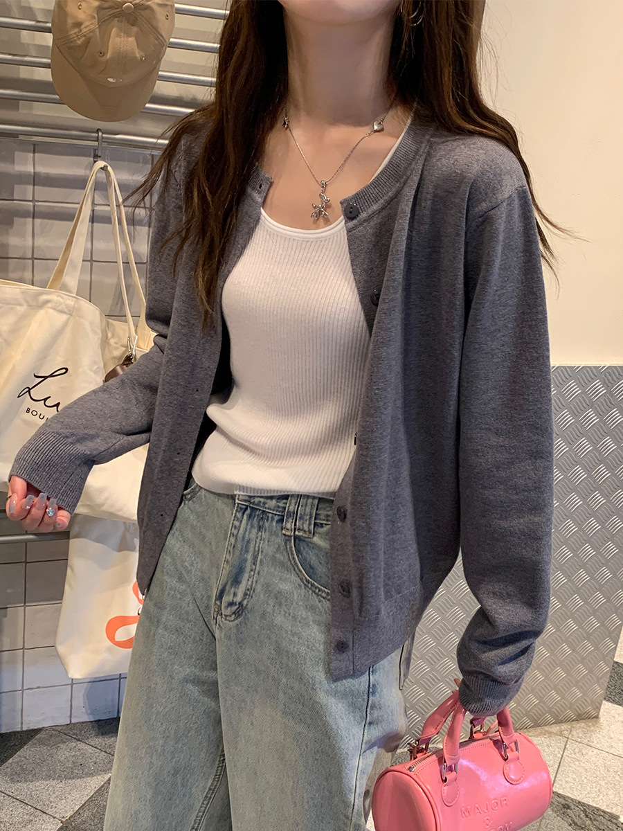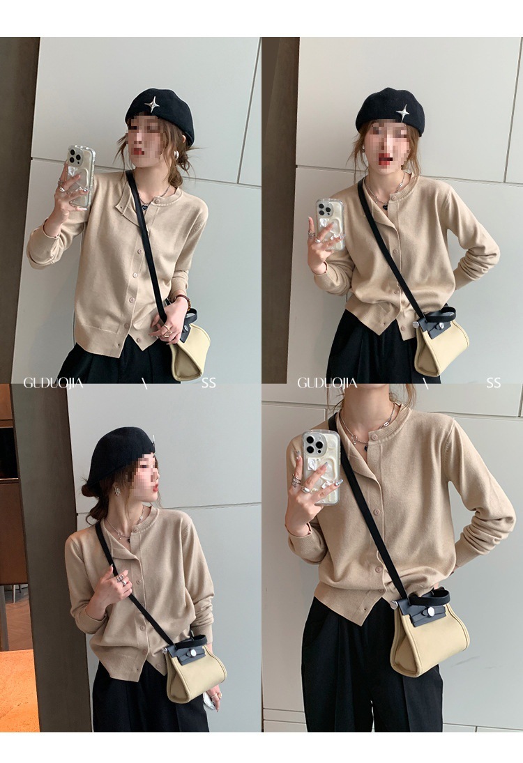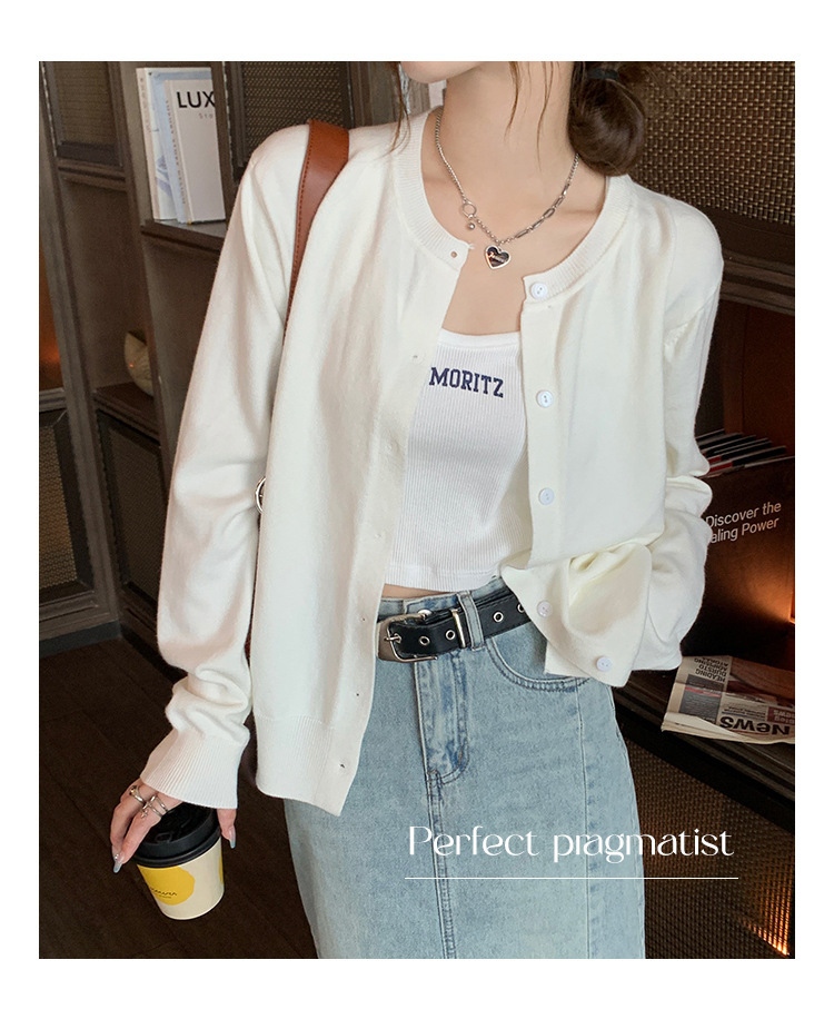 Вязаный кардиган, ранняя осень, новая женская одежда 2024, белый свитер с круглым вырезом, черный тонкий весенне-осенний топ, один размер подходит всем