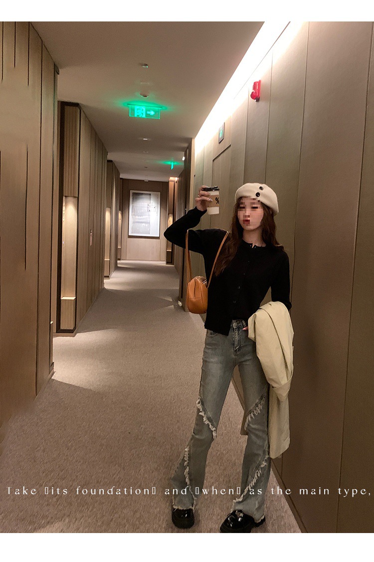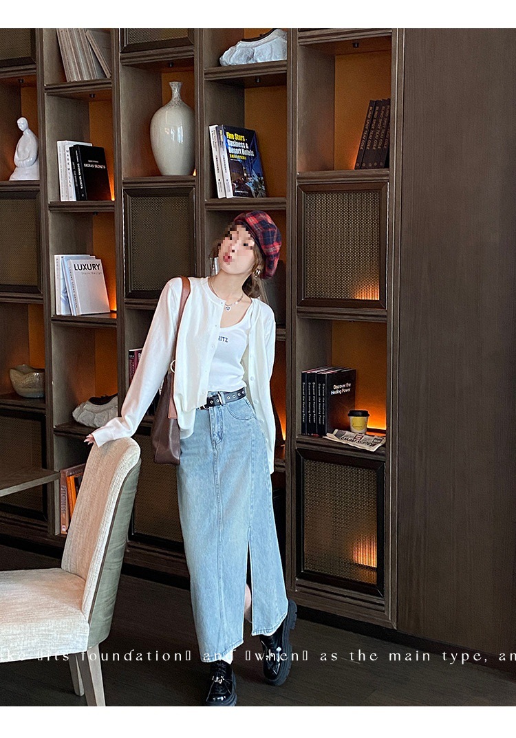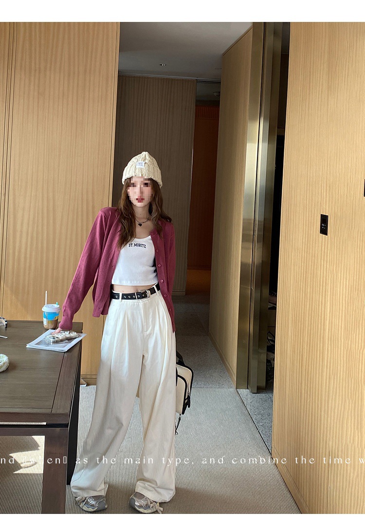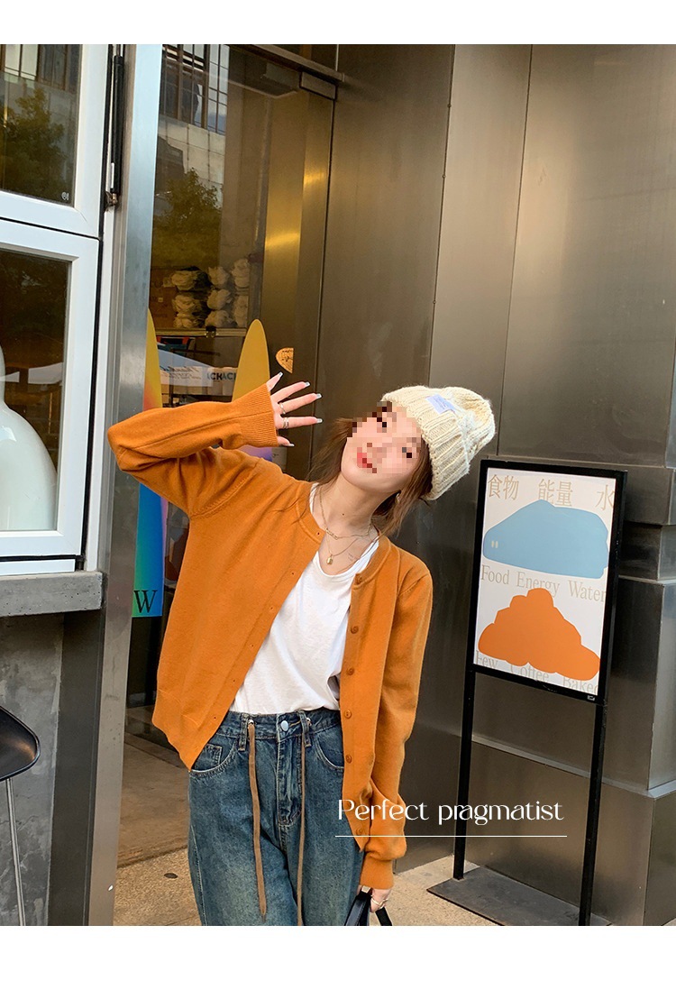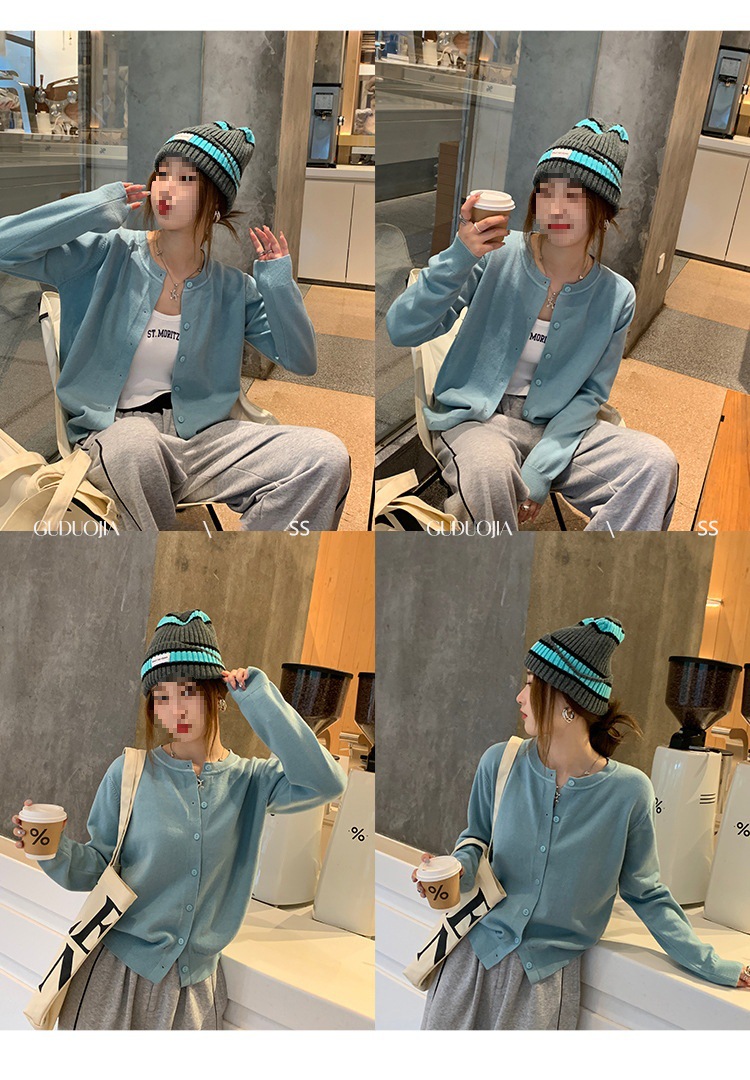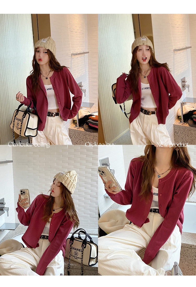 Вязаный кардиган, ранняя осень, новая женская одежда 2024, белый свитер с круглым вырезом, черный тонкий весенне-осенний топ, один размер подходит всем