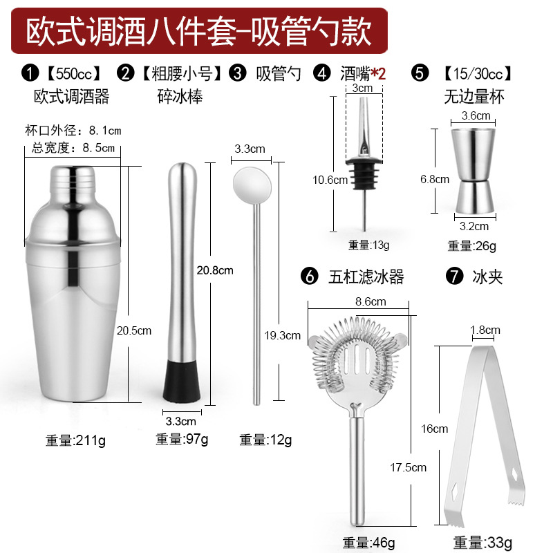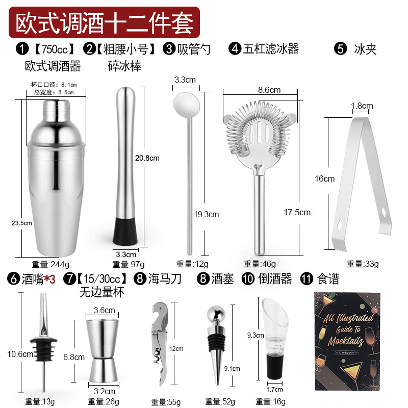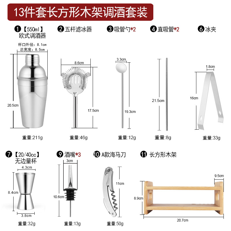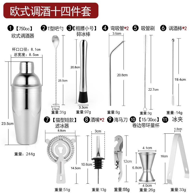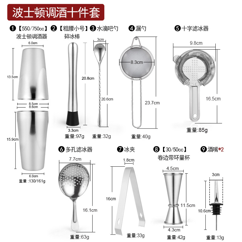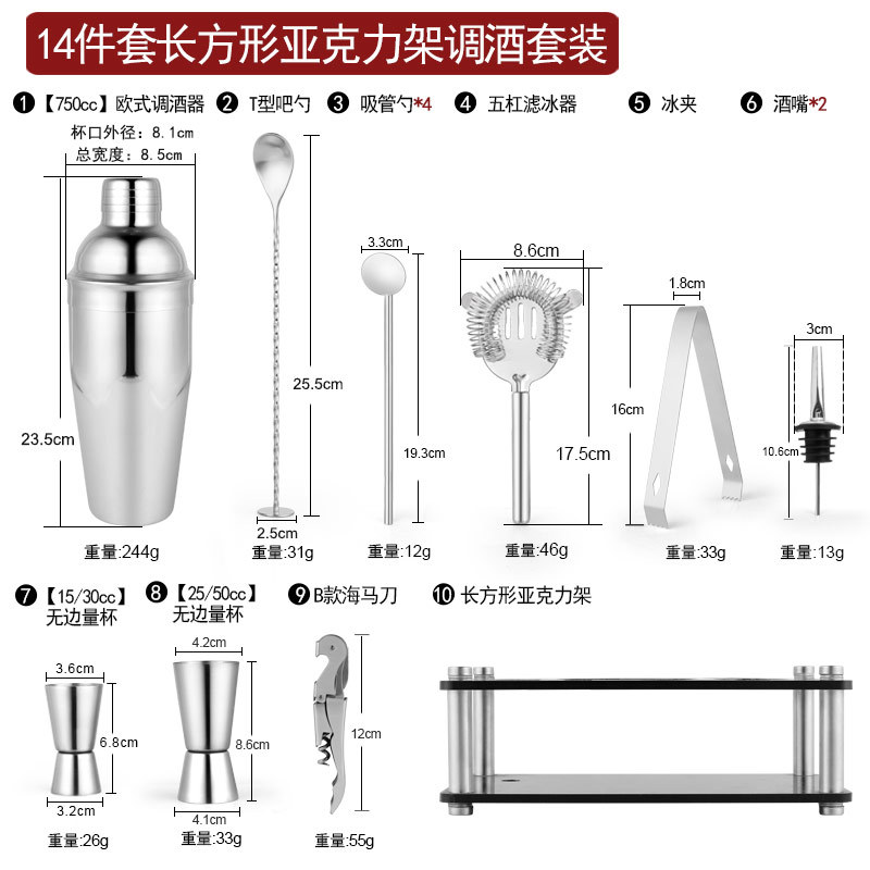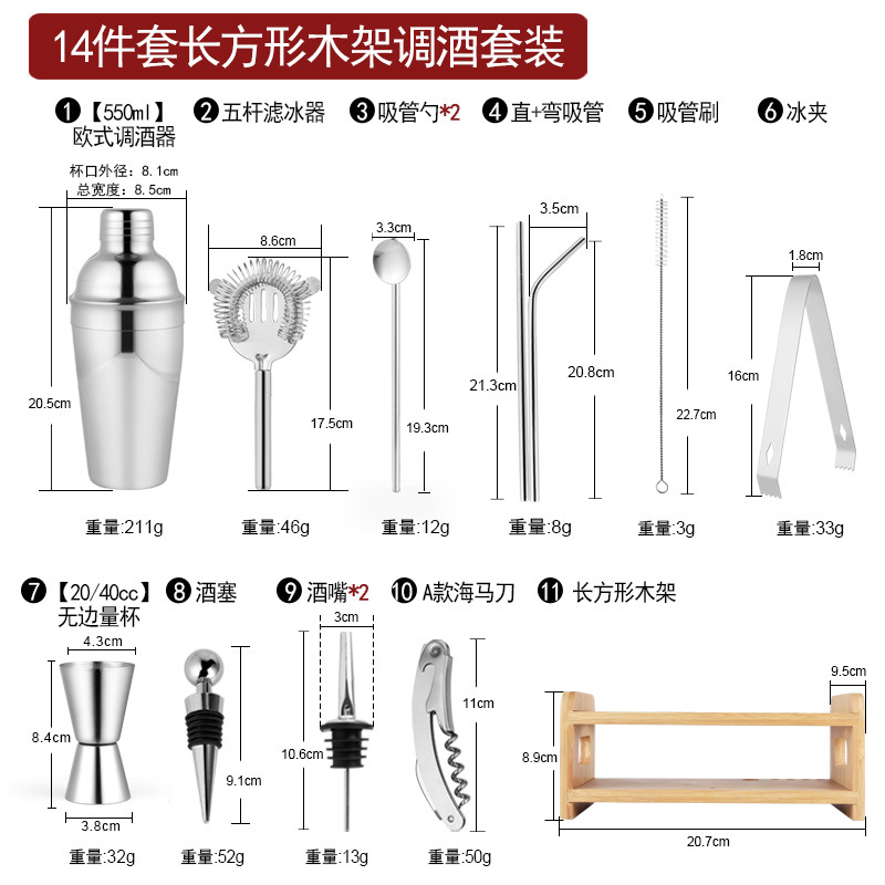 Набор из трех предметов для европейского бармена объемом 750 куб.см.; Набор из пяти предметов для европейского бармена объемом 550 куб.см.; Набор из пяти предметов для европейского бармена объемом 750 куб.см.; Набор из шести предметов для европейского бармена объемом 750 куб.см.; Набор из шести предметов для европейского бармена объемом 750 куб.см с капюшоном; Набор из семи предметов для европейского бармена объемом 750 куб.см.; Набор из восьми соломинок и ложек для европейского бармена объемом 550 куб.см.; Набор из восьми предметов для европейского бармена объемом 750 куб.см.; Набор из 11 предметов для европейского бармена объемом 750 куб.см.; Набор из 12 предметов для европейского бармена объемом 750 куб.см.; Набор для европейского бармена объемом 750 куб.см, 14 предметов.; Набор для европейского бармена объемом 750 куб.см, 22 предмета.; Набор из трех предметов для бармена «Бостон»; Набор из пяти предметов для бармена «Бостон»; Набор из десяти предметов для бармена «Бостон»; Набор для бармена «Бостон», 15 предметов.; Набор для бармена «Бостон», 20 предметов.; Набор для бармена с треугольными чашками из 13 предметов.; Овальная деревянная рама объемом 750 куб.см, набор из 10 предметов.; Овальная деревянная рама объемом 750 куб.см, набор из 12 предметов.; Набор из 13 предметов с прямоугольной деревянной рамой объемом 550 куб.см.; Набор из 14 предметов с прямоугольной деревянной рамой объемом 550 куб.см.; Набор для бармена из акрила, 14 предметов.; Акриловый набор из 20 предметов - Boston Bartending; Акриловый набор из 20 предметов-Европейский бармен; Акриловый набор из 23 предметов - Boston Bartending; Акриловый набор из 23 предметов-Европейский бармен; Акриловый набор из 25 предметов - Boston Bartending; Акриловый набор из 25 предметов-Европейский бармен