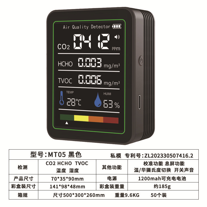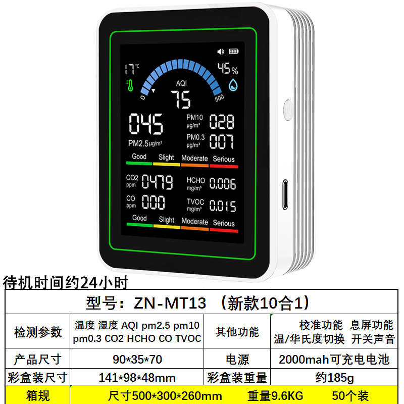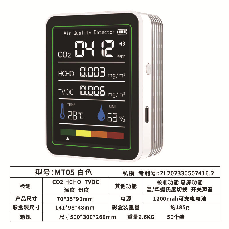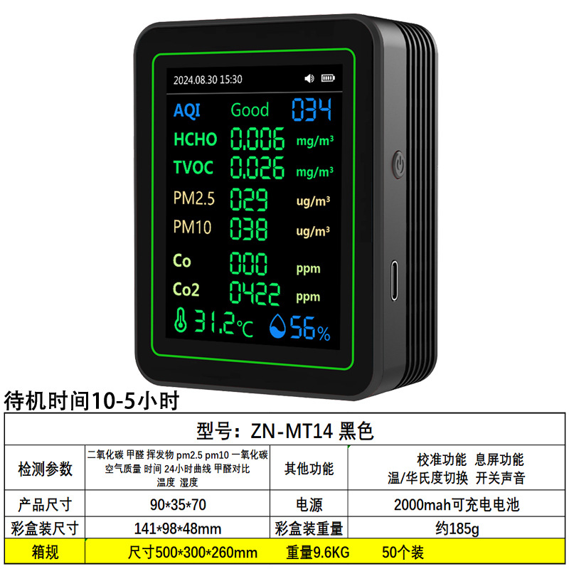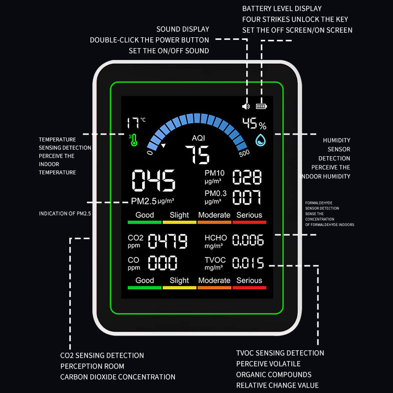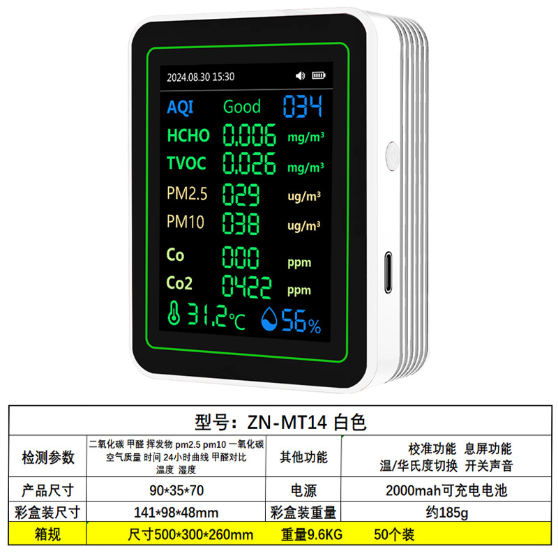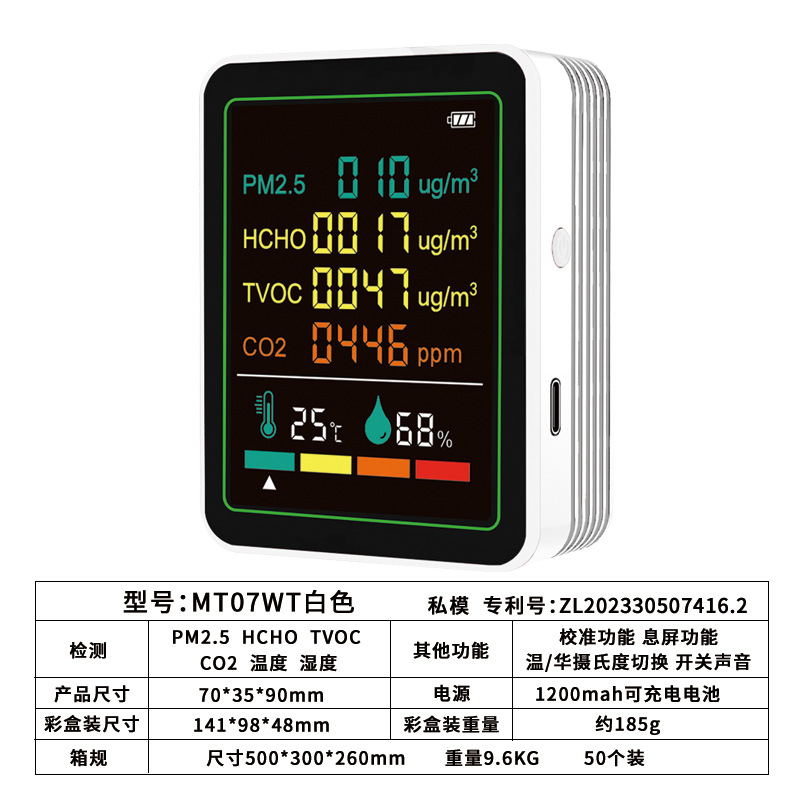 Точечный частный детектор углекислого газа PM2.5PM1.0, детектор формальдегида, детектор TVOC, температура и влажность CO2