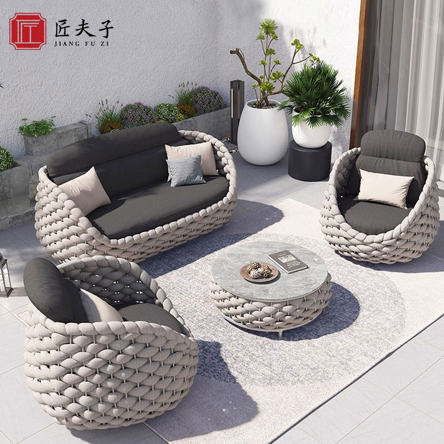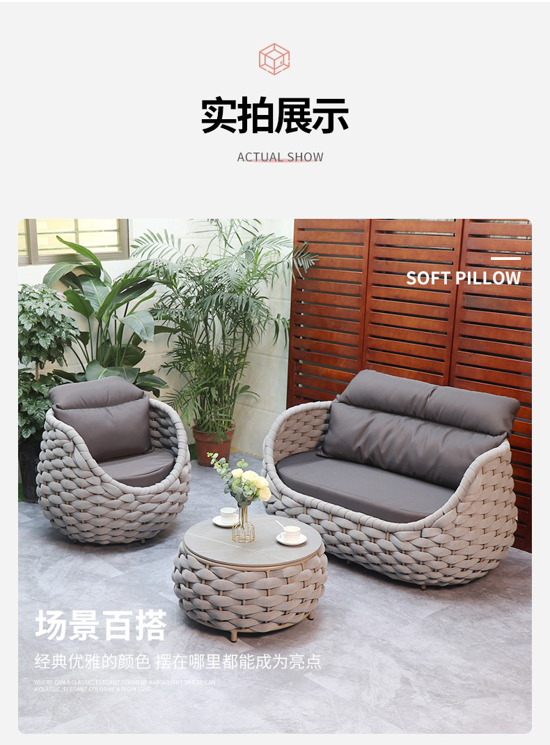 Уличный диван из ротанга для отдыха, двор, вилла, балкон, модель комнаты, кафе, сад, защита от солнца, стул из ротанга, журнальный столик, мебель