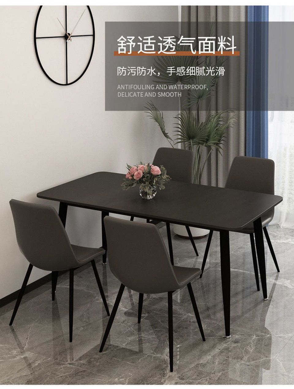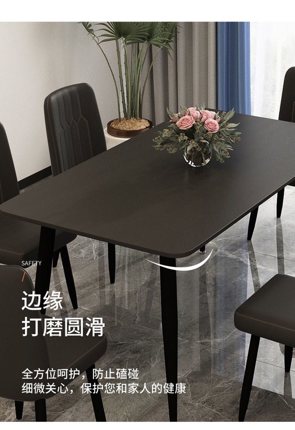 Обеденный стол и стулья из чистого белого сланца в скандинавском стиле для дома, небольшой квартиры, чистый черный, доступный роскошный, новый, высококачественный, чистый черный обеденный стол
