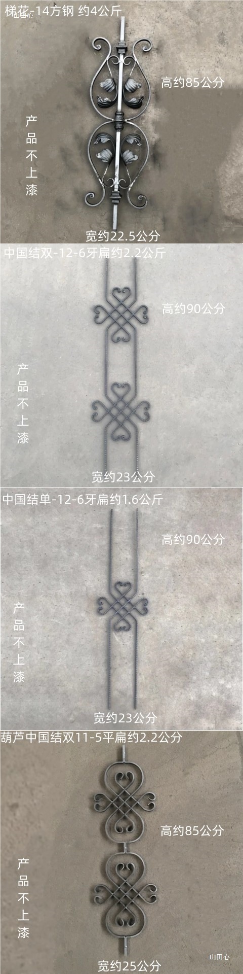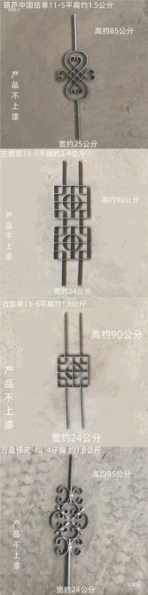 600 цветов-лестниц — 12 квадратов стальных 850*190; Стандартная цветочная композиция — 850—220 мм.; Одиночный фонарный столб — 12 квадратных стальных стержней 850*100 мм.; Двойной фонарный столб — 12 квадратных стальных 850*100 мм.; Квадратная тарелка-лестница цветок 850*240мм; Старинный оконный лист 900*240мм; Окно старинное двойное 900*240мм; Горошка китайский узел одинарный 850*250мм; Гард китайский узел двойной 850*250мм; Китайский узел 900-230 мм.; Узел китайский двойной 900*230мм; Цветок-лестница—850*225 мм.
