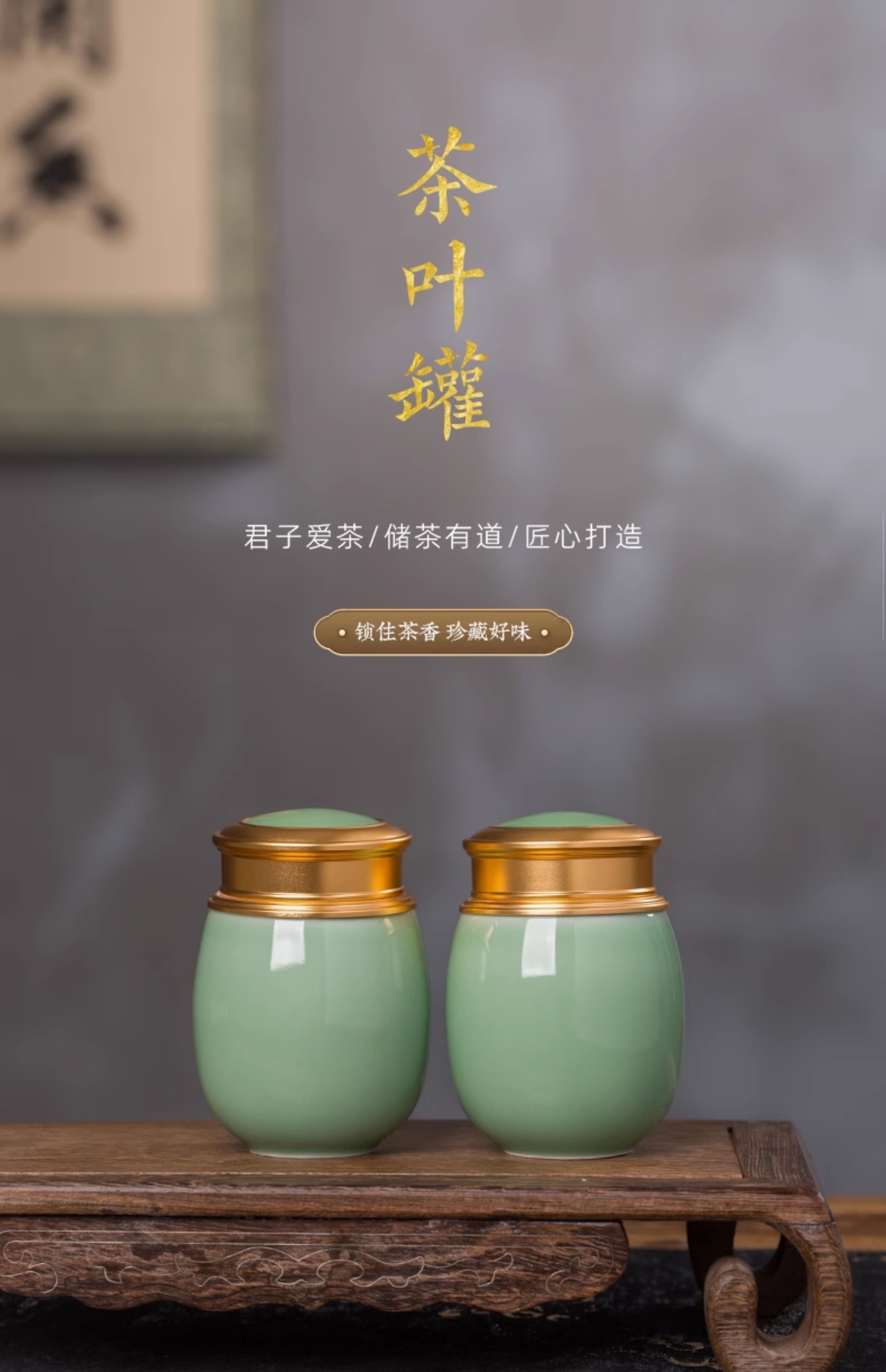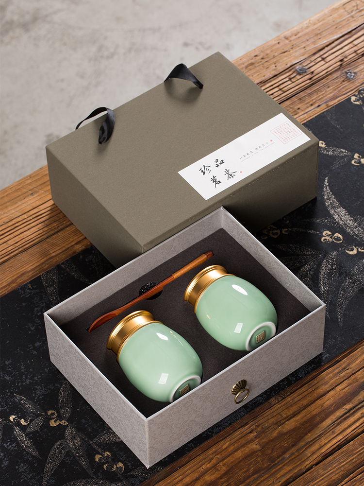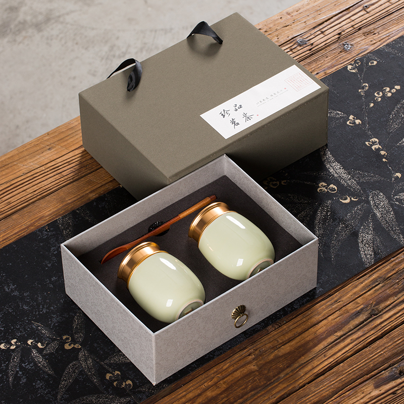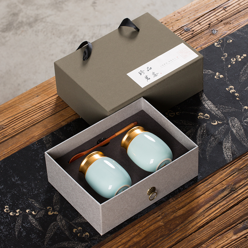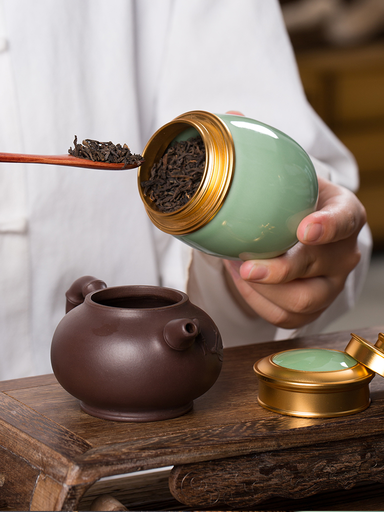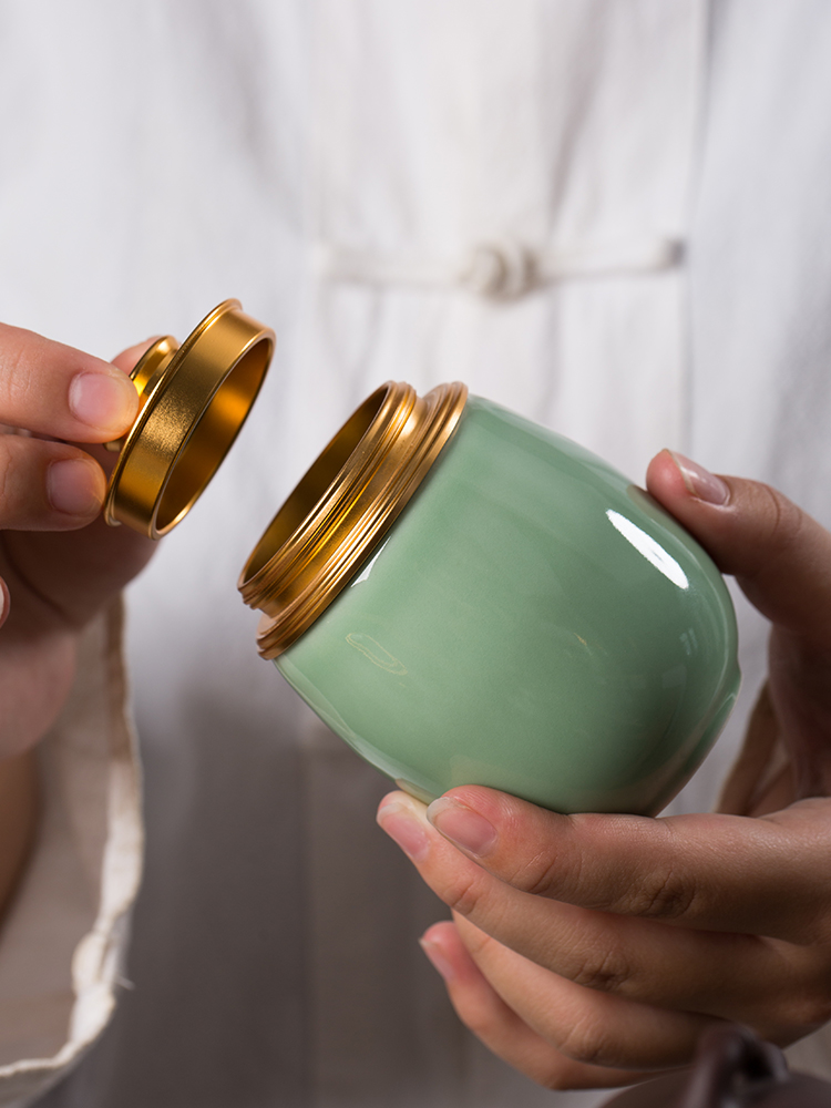 Портативная герметичная банка для чая из керамики цвета целадон, стильная упаковка для хранения чая, дорожная банка для дома, подарочная коробка