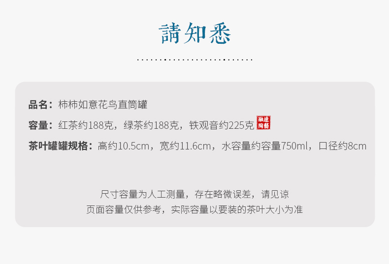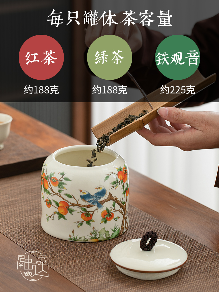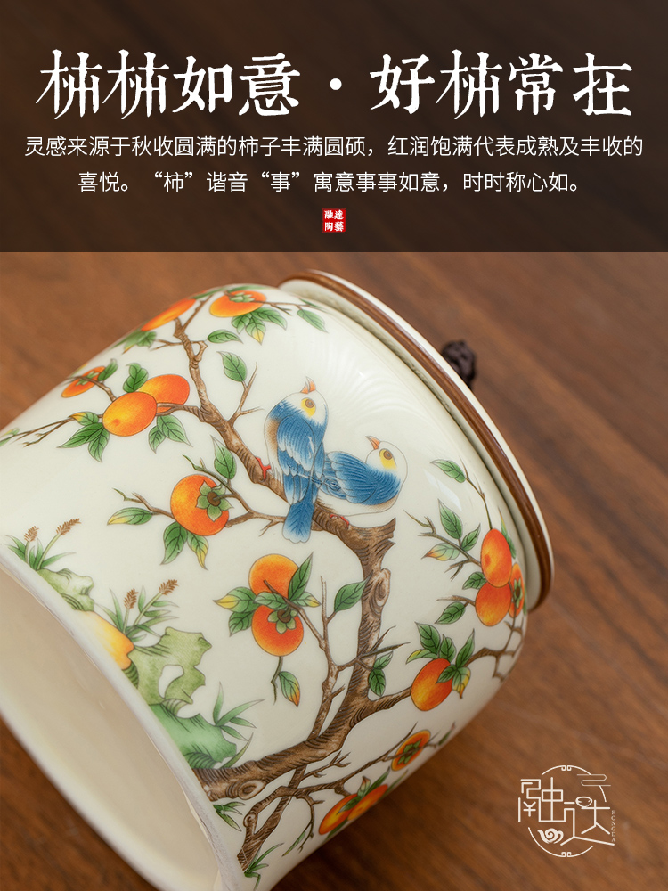 Persimmon Ruyi Persimmon Керамическая чайная канистра Герметичная канистра Канистра для хранения чая Канистра для хранения Пустая канистра Домашний декор Креатив.
