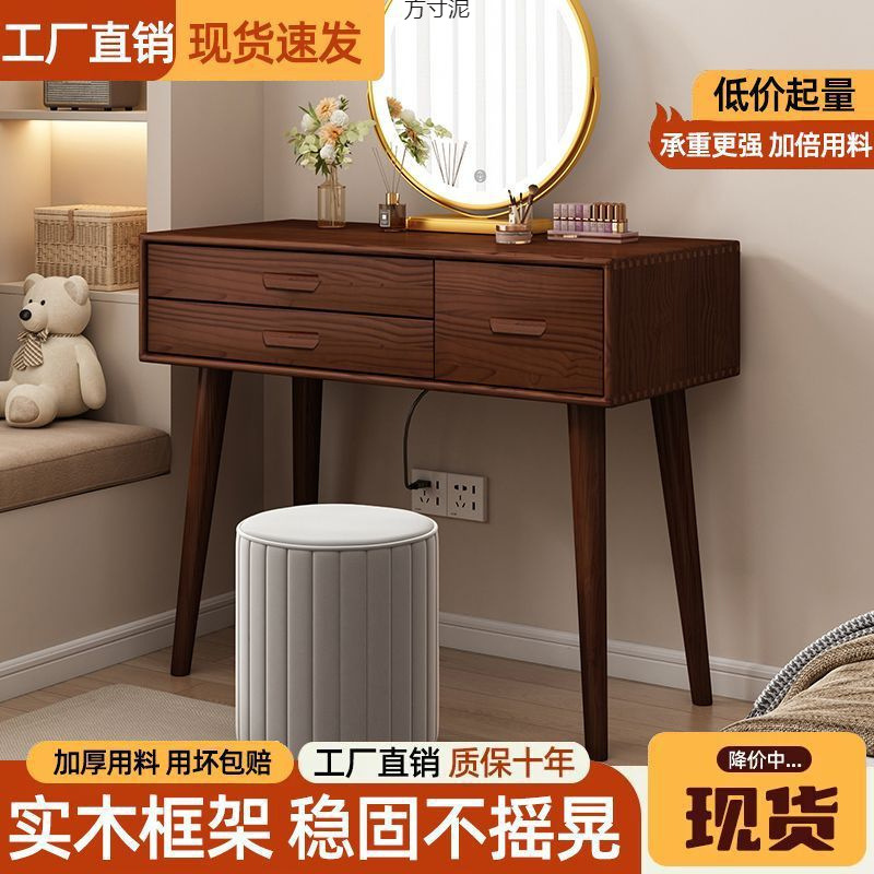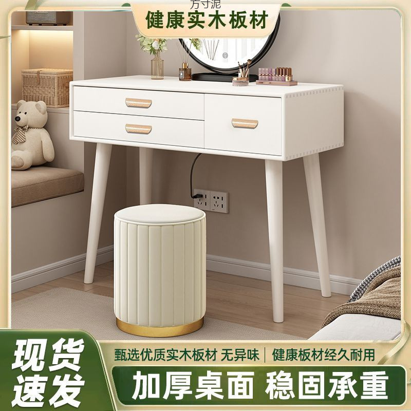 Туалетный столик в кремовом стиле, туалетный столик из цельного дерева, небольшой туалетный столик для спальни, универсальный теплый современный простой стильный туалетный шкаф