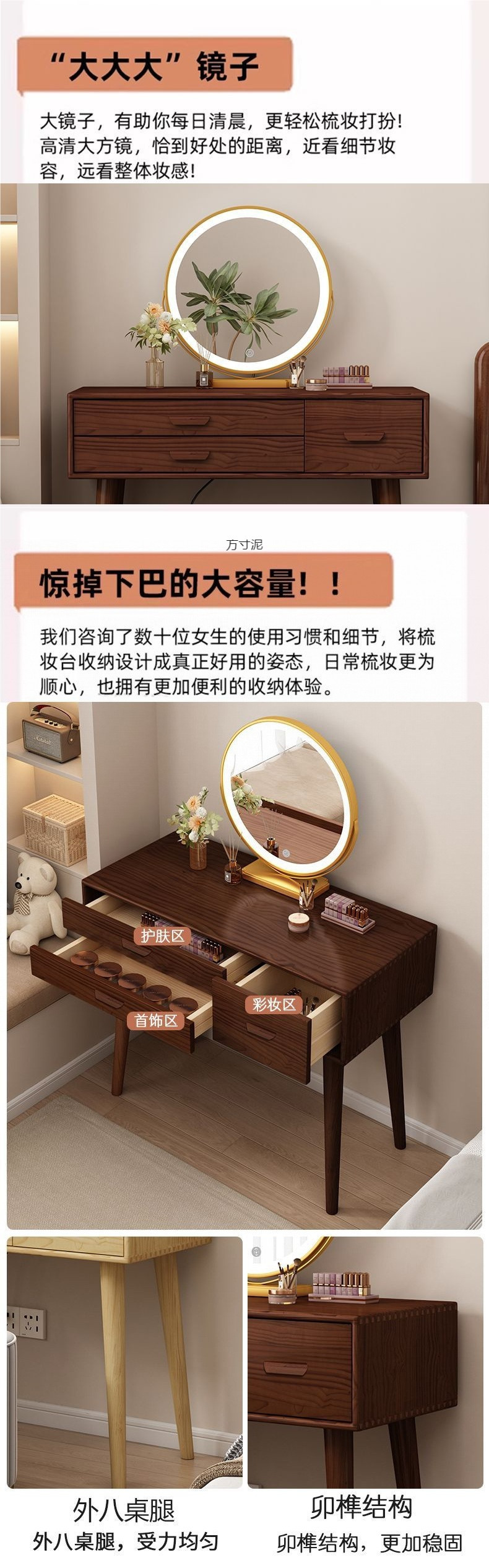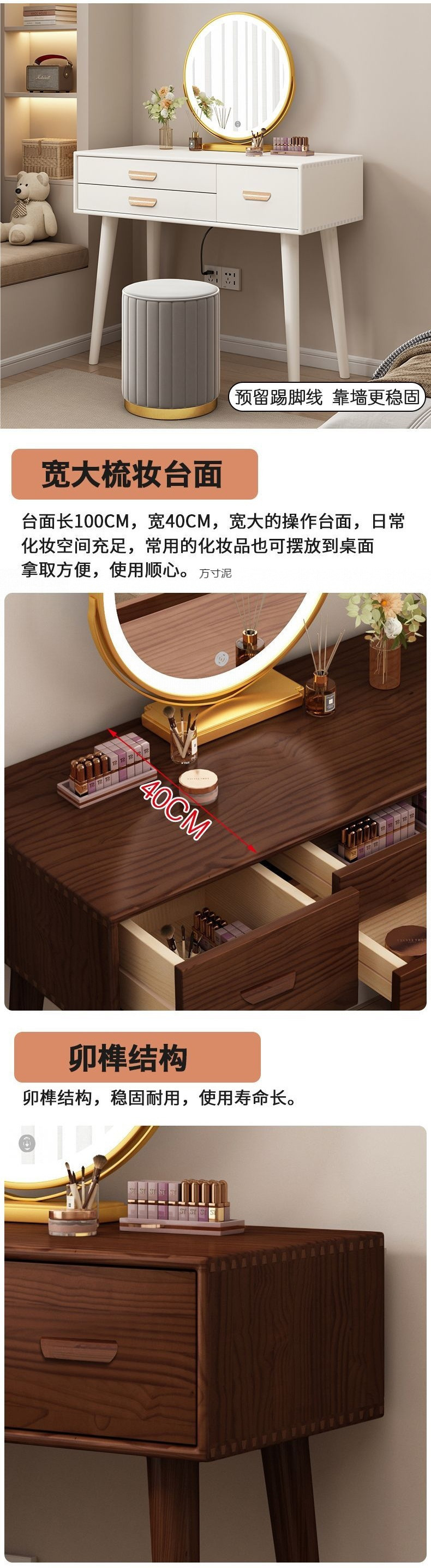 Одиночный стол 0,8 м + ртутное зеркало высокой четкости + мягкий табурет из массива дерева; Одиночный стол 1,0 м + ртутное зеркало высокой четкости + мягкий табурет из массива дерева