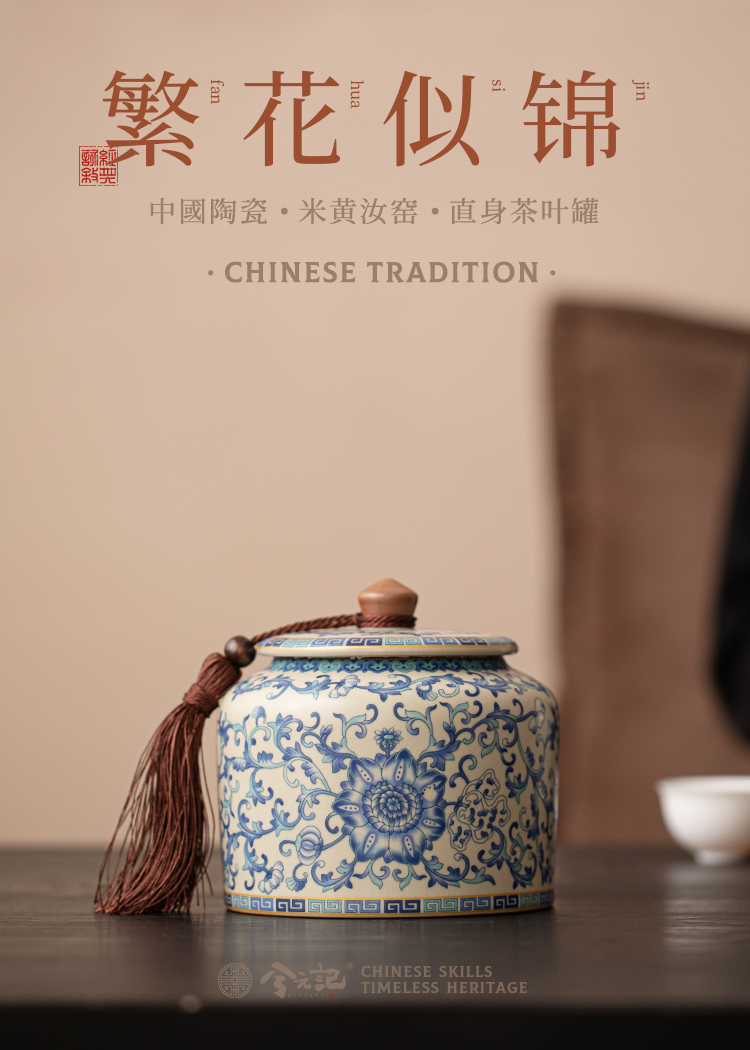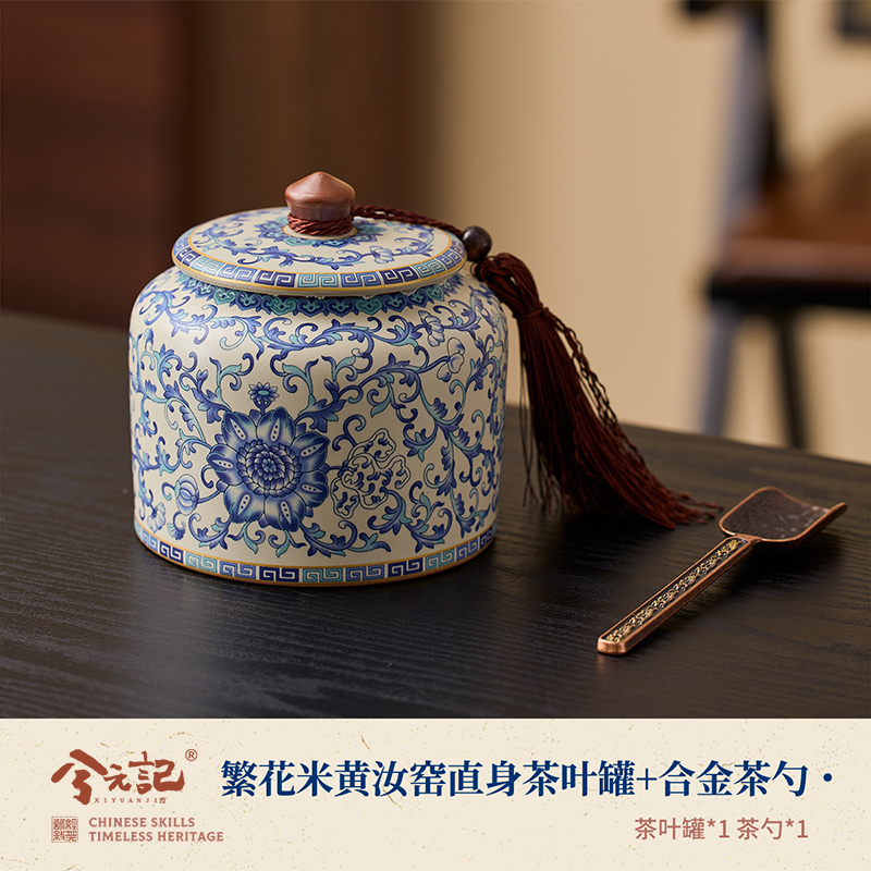 Прямоугольная банка для чая Flowery Beige Ru Kiln (вместимость около 215 г); Прямоугольная банка для чая Flowery Beige Ru Kiln + чайная ложка из сплава
