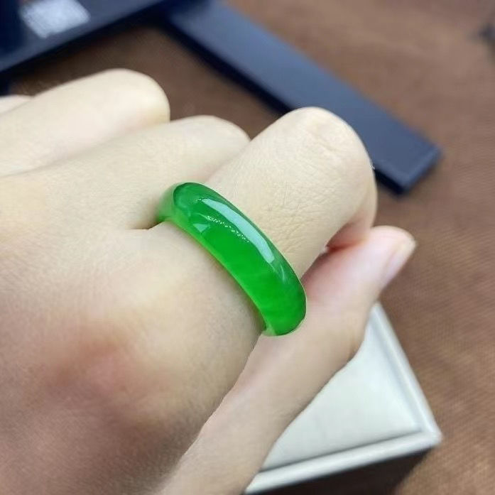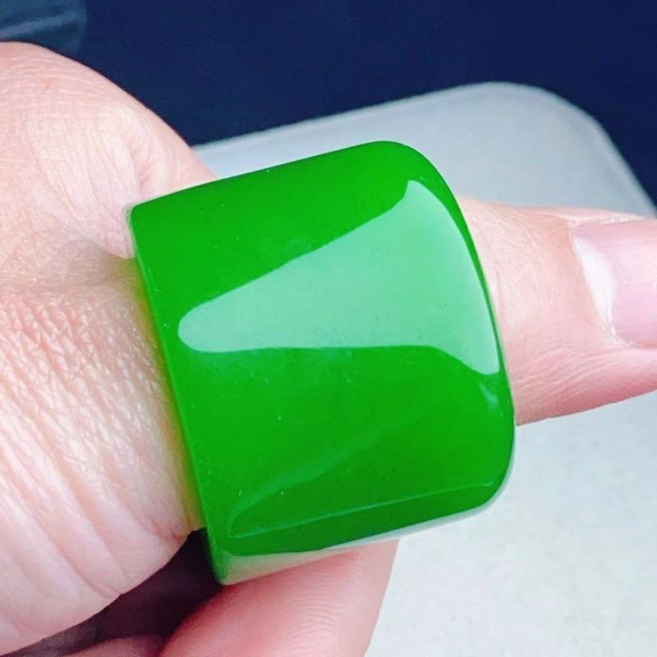 Мужское кольцо из бирманского нефрита цвета ледяной льда, тренд 2025 года, старинная шахта, широкое, утолщенное, полностью зеленое.