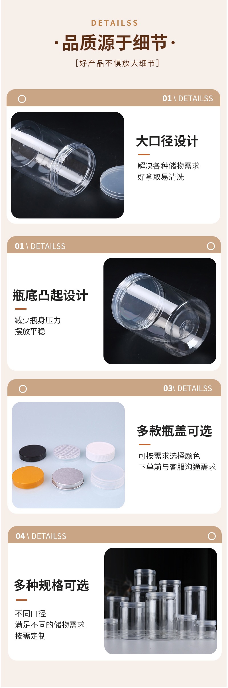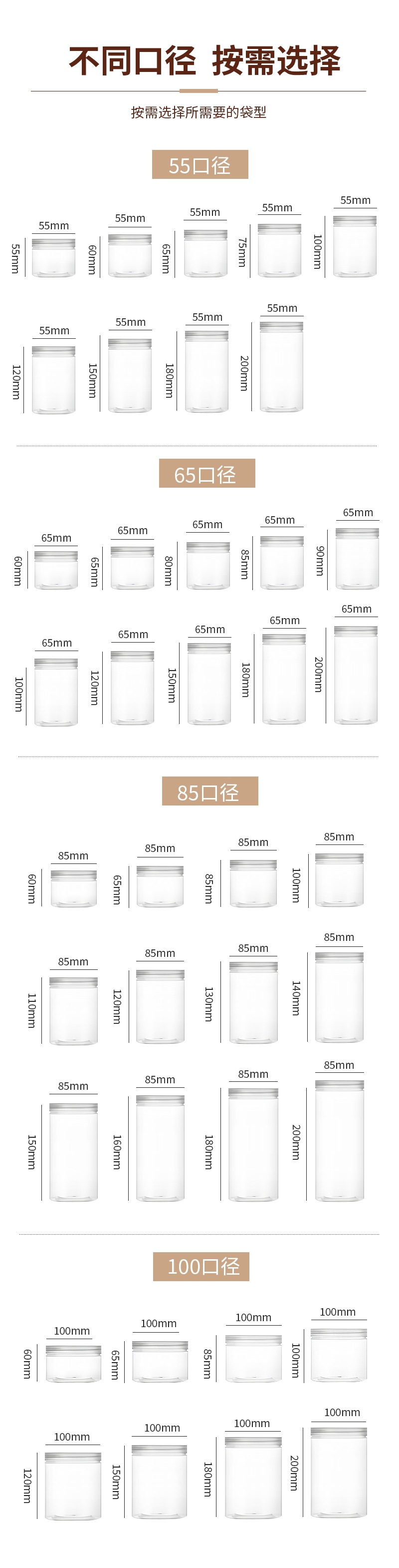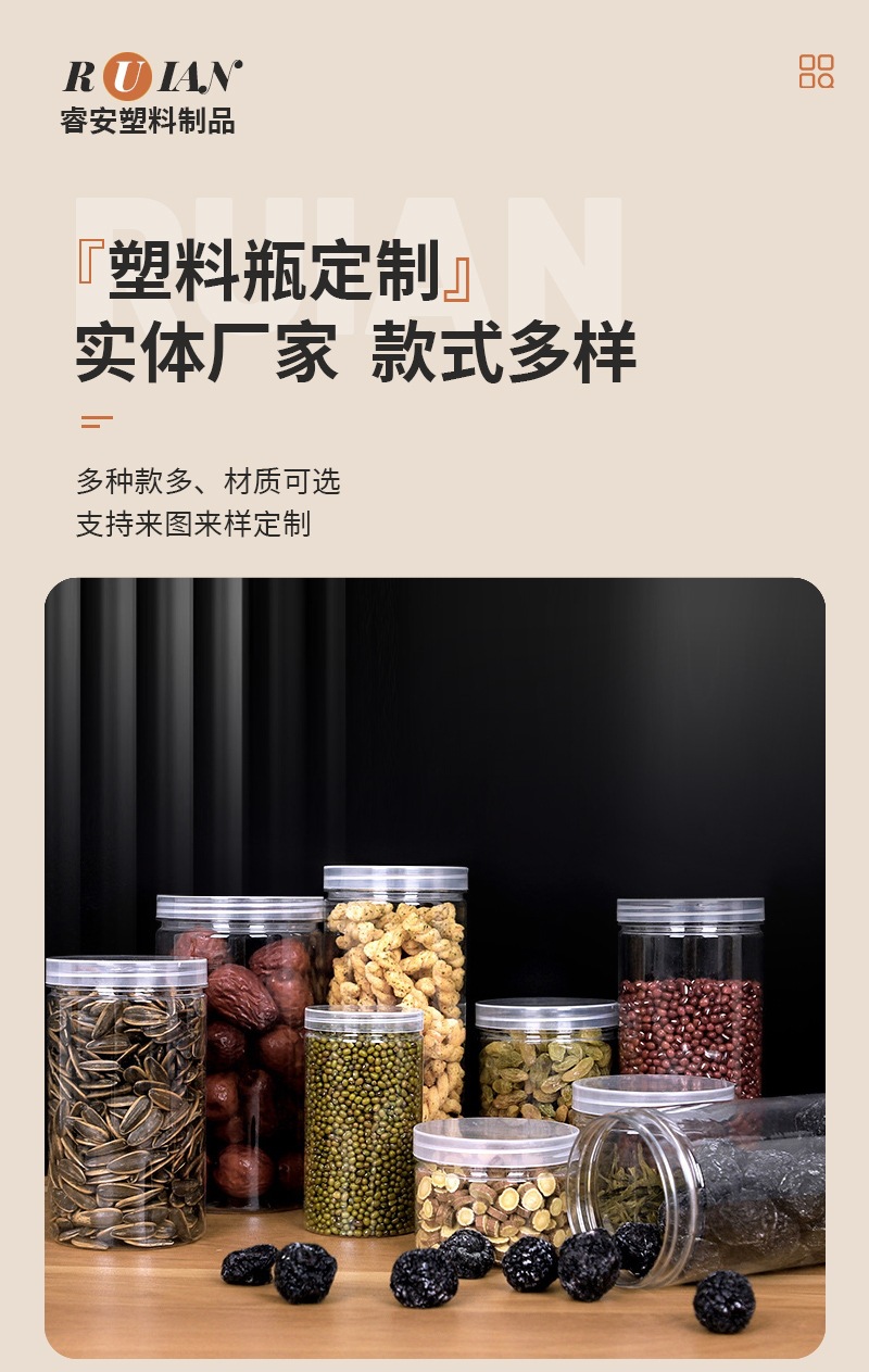 Герметичная банка для хранения 55, 65, 85, 100, пластиковая пустая бутылка большой емкости, кухонная прозрачная влагостойкая пластиковая банка с широким горлышком