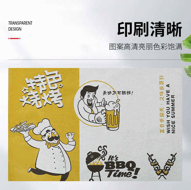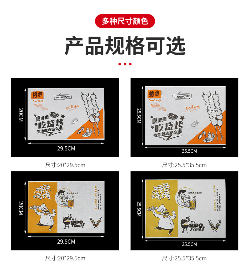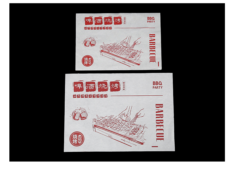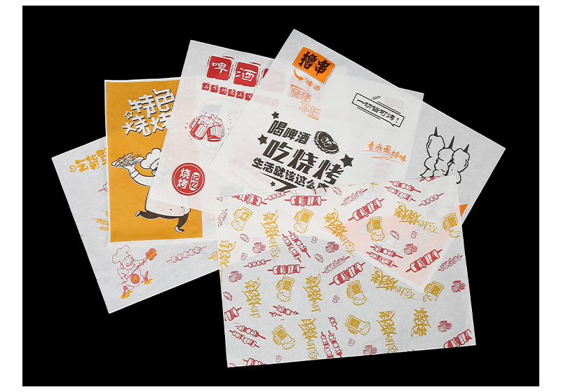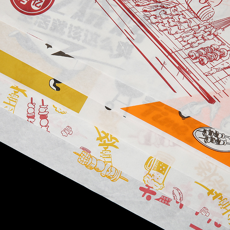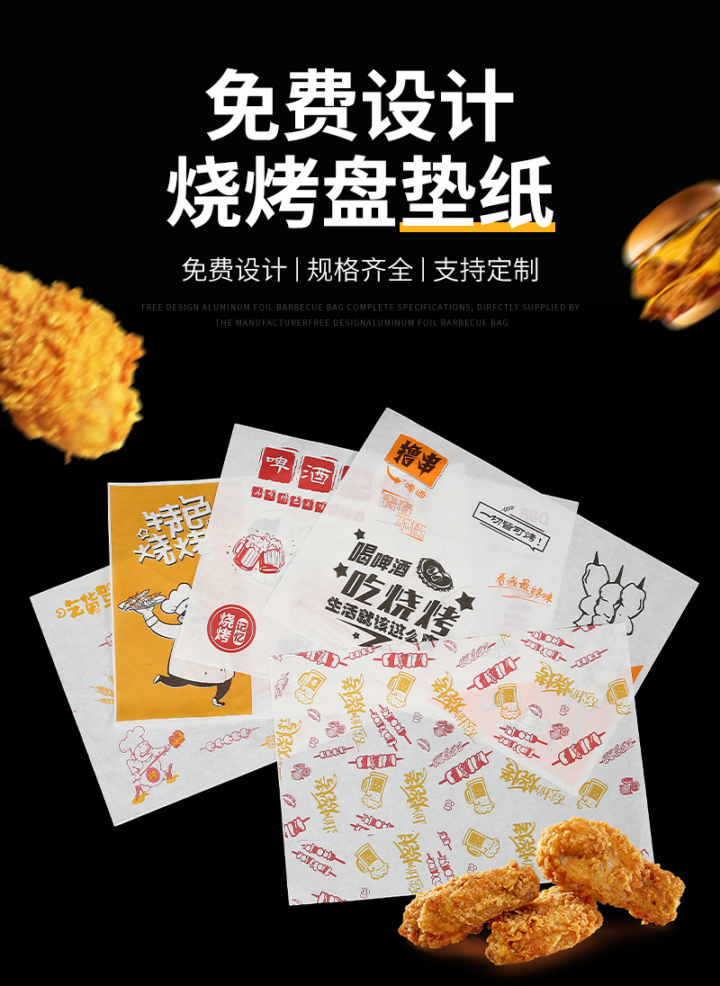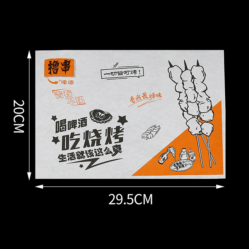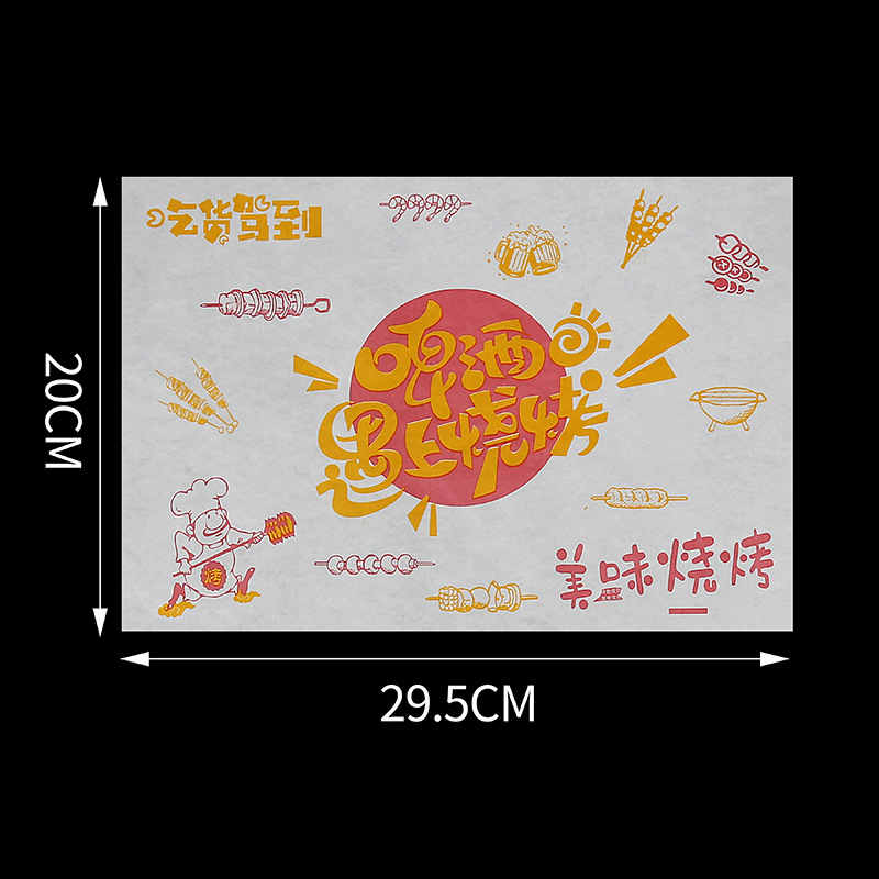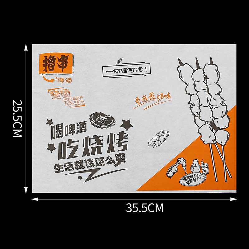 Бумажные подложки для барбекю, одноразовые пищевые маслопоглощающие бумажные шпажки, жареные маслостойкие лотки, бумага с печатью, мелованная бумага, индивидуальный заказ