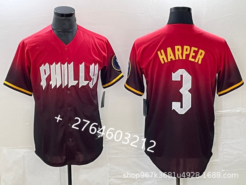Филлис Филлис 3 # Джерси Harper, мужская и женская городская версия, бейсбольная форма с вышивкой