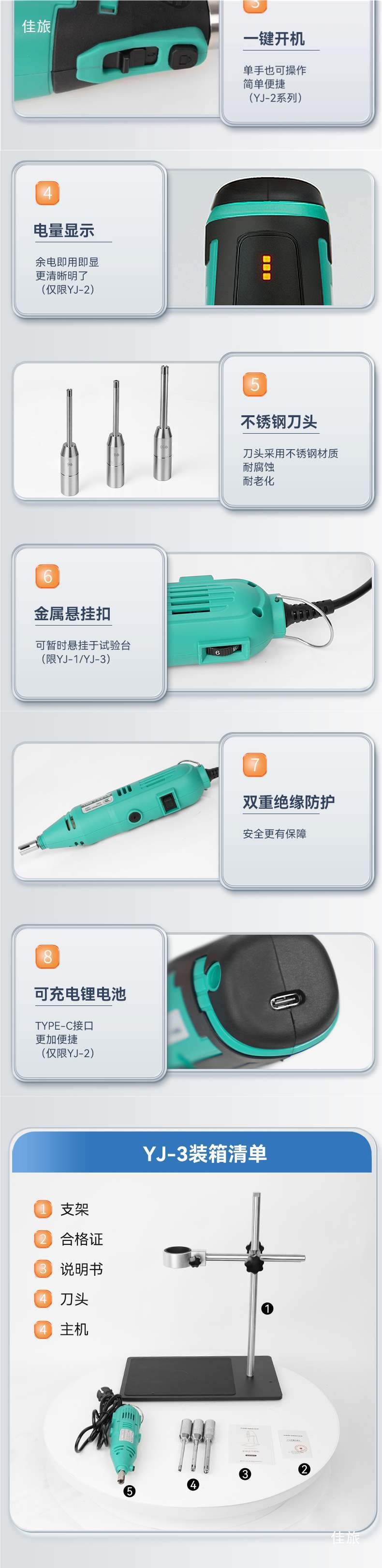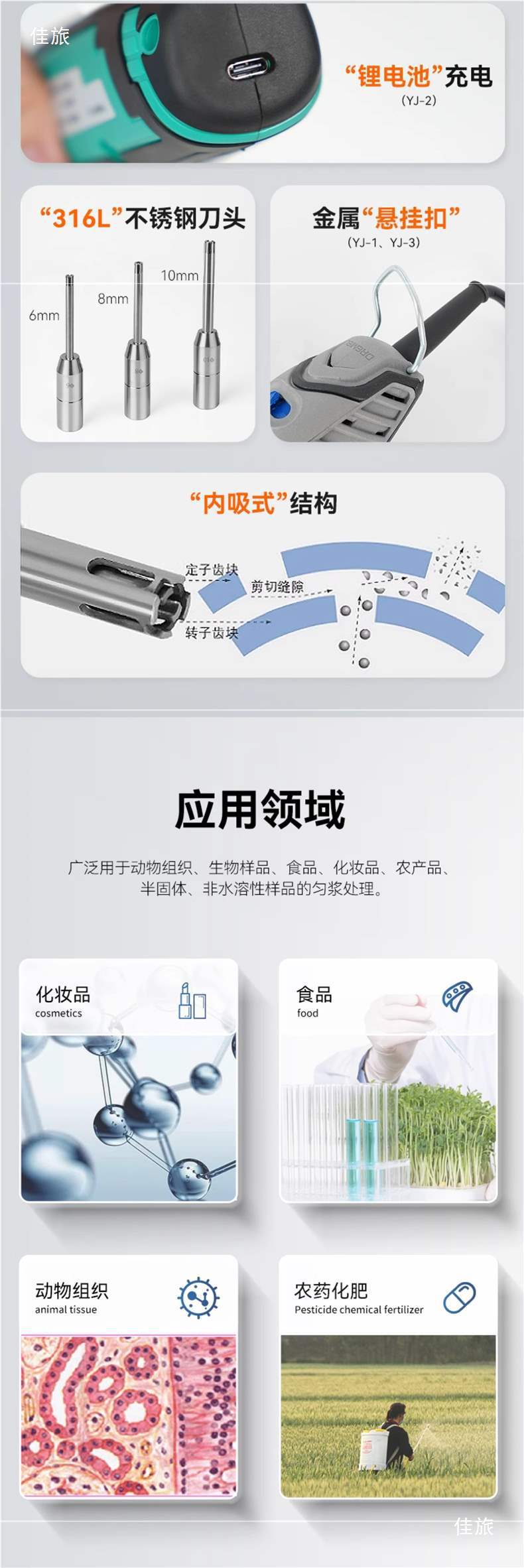 YJ-1 (вставной двигатель); YJ-1 (включая кронштейн); YJ-3 (подключаемая модель); YJ-3 (включая кронштейн); YJ-2 (перезаряжаемая модель); (Аксессуар) Лезвие из нержавеющей стали толщиной 6 мм.; (Аксессуары) Лезвие из нержавеющей стали толщиной 8 мм.; (Аксессуары) Лезвие из нержавеющей стали толщиной 10 мм.; (Аксессуар) Ручная высокоскоростная подставка для гомогенизатора; Подключаемый двигатель YJ-1