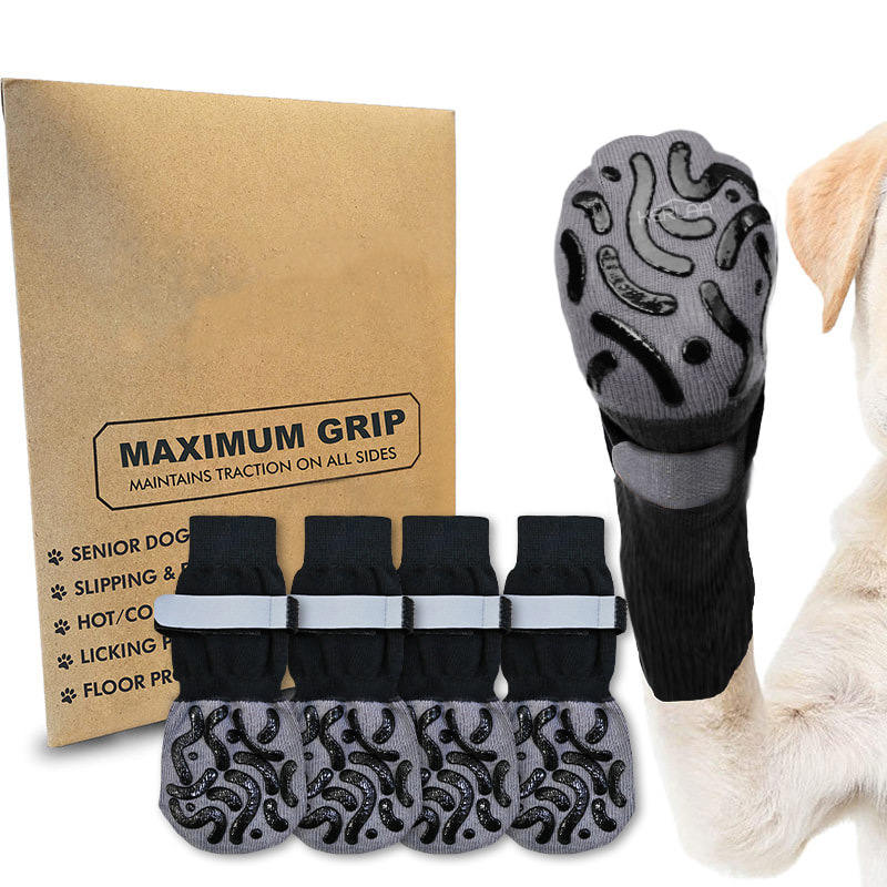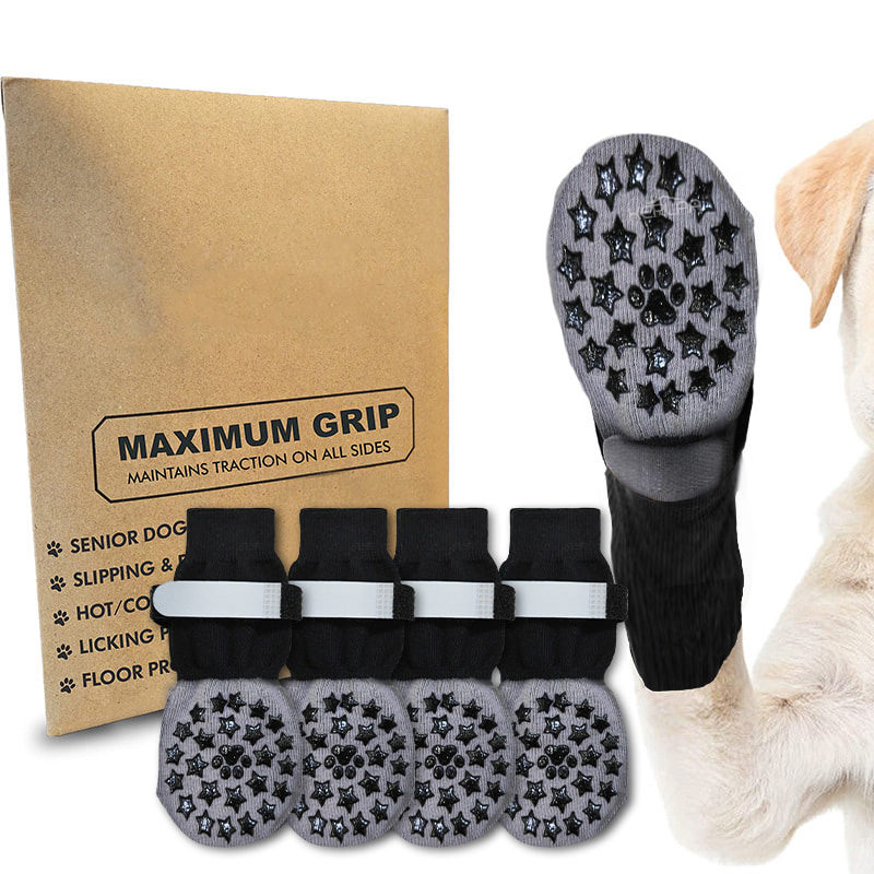 Носки для собак Amazon, нескользящие, черные, с ремешком, дышащие, ПВХ, офсетная печать, средние и большие размеры.