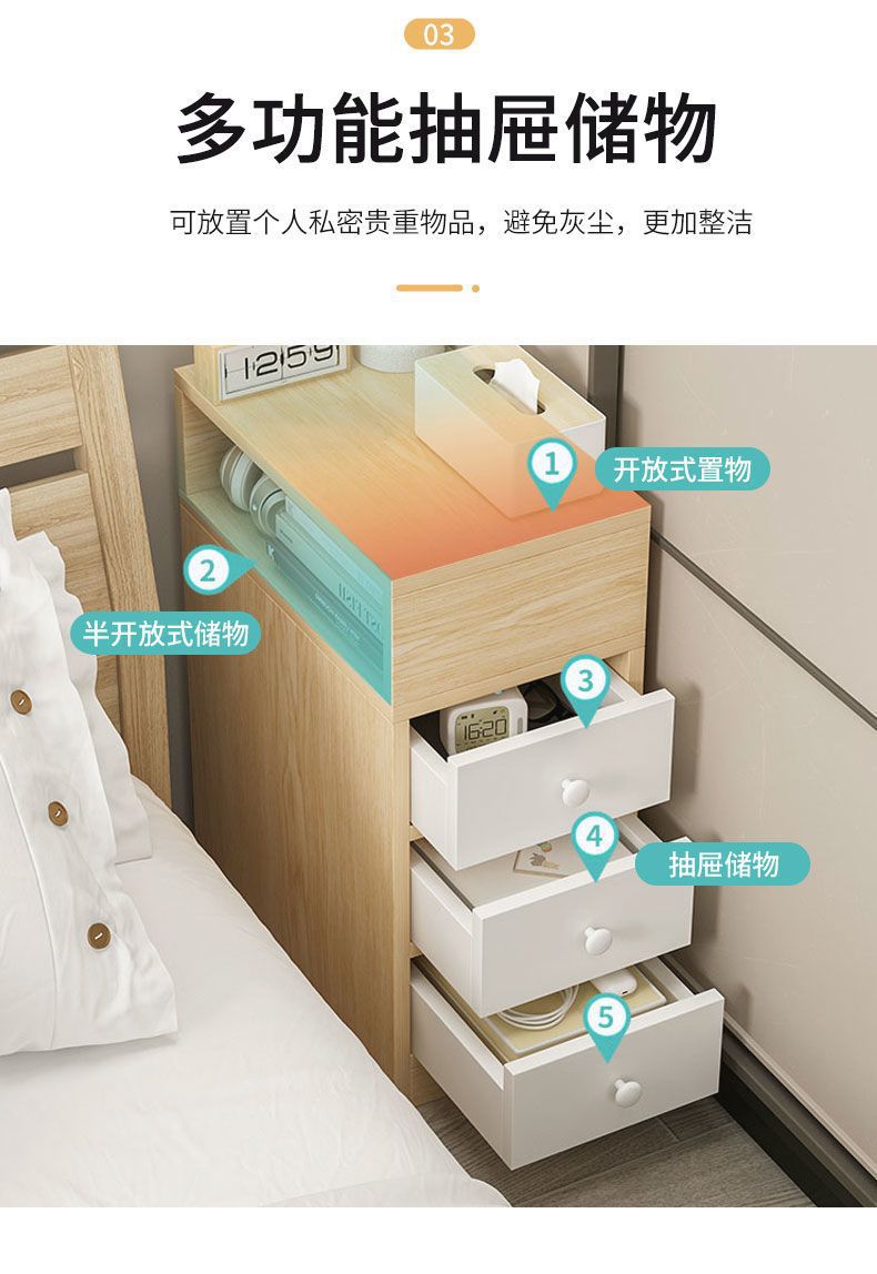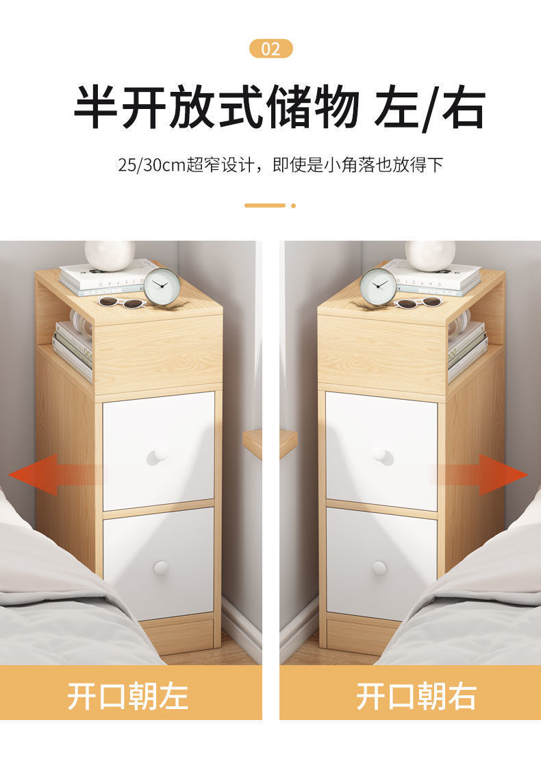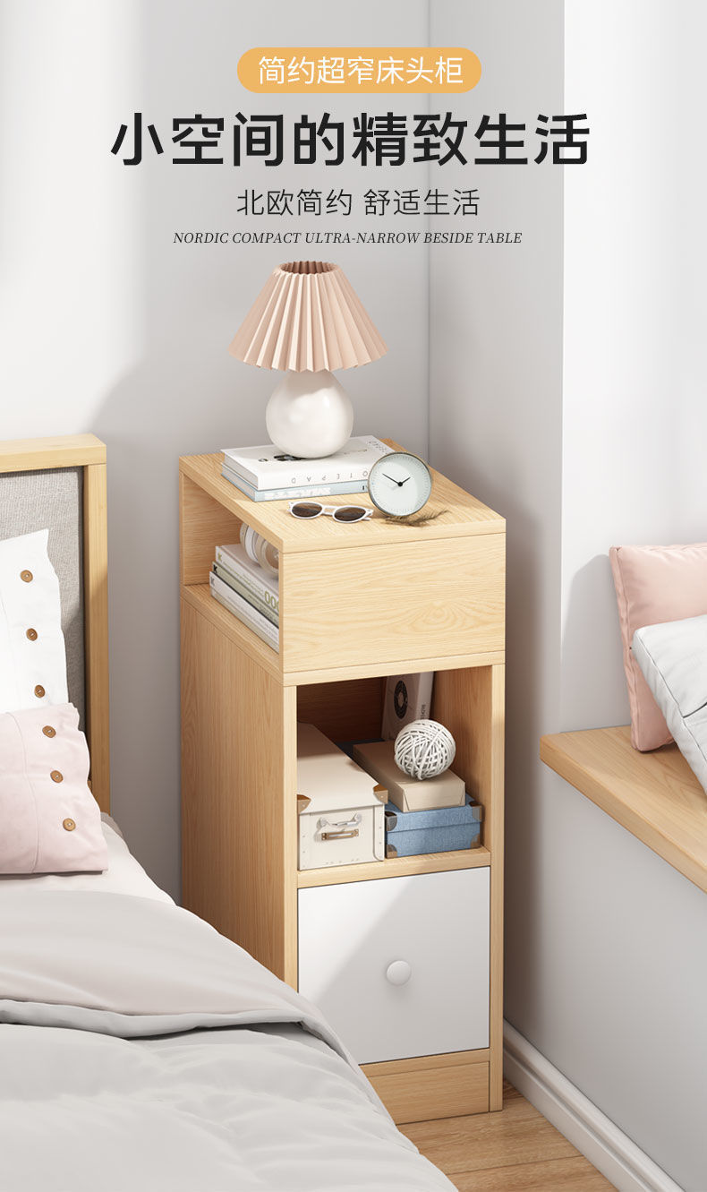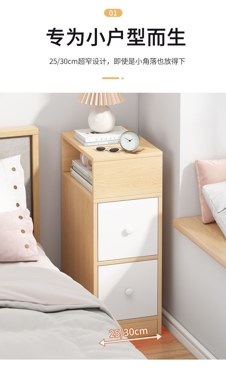 Ультраузкая прикроватная тумбочка, современная минималистичная спальня, цветной сэндвич из цельного дерева, прикроватная тумбочка, небольшой шкаф для хранения, мини-шкаф для хранения