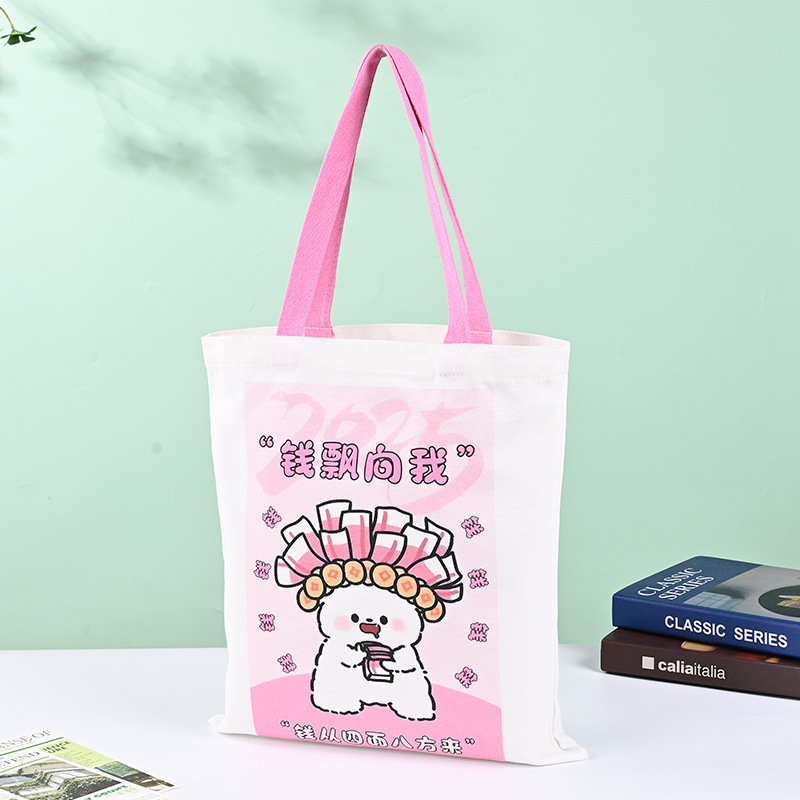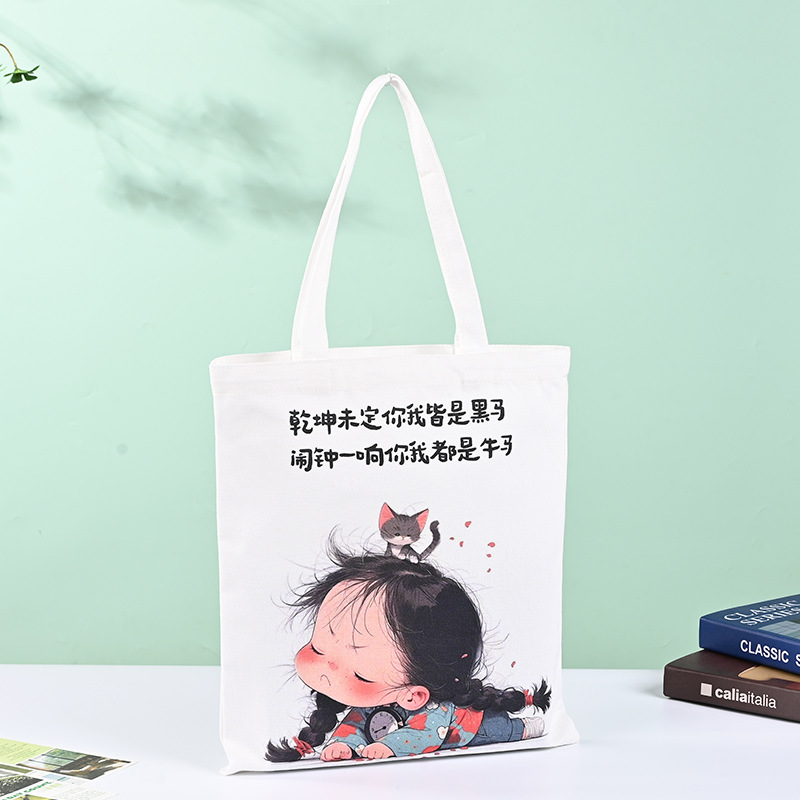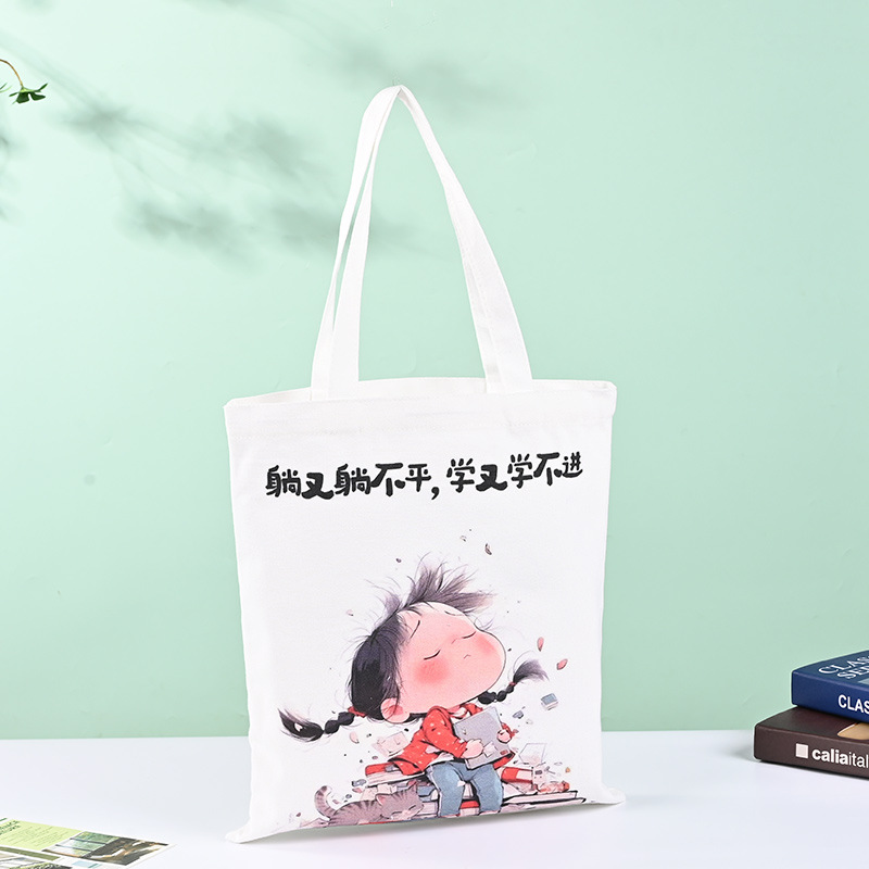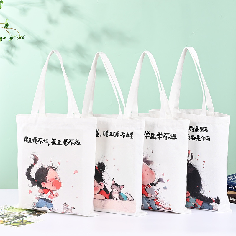 Холщовая сумка с индивидуальным высококачественным логотипом, шоппинг-сумка, студенческая сумка, холщовая сумка с индивидуальным красочным милым мультяшным принтом.