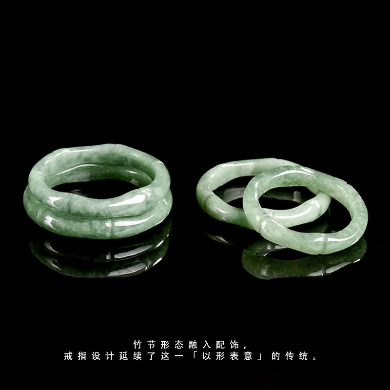 Кольцо из натурального жадеита класса А с зеленым бамбуковым узлом, женское нефритовое кольцо с трехмерным семенем боба, индивидуальное.