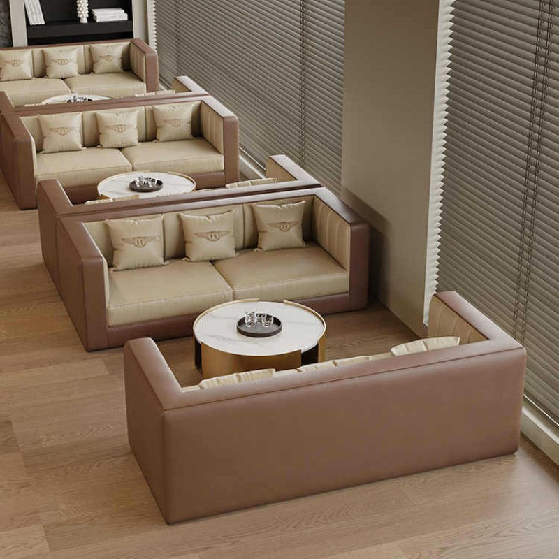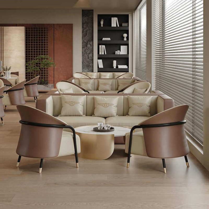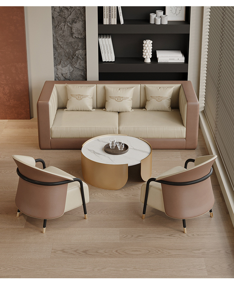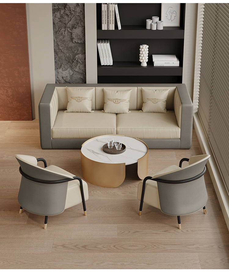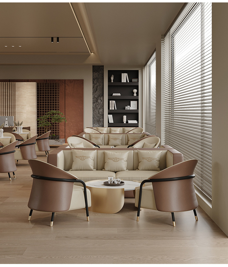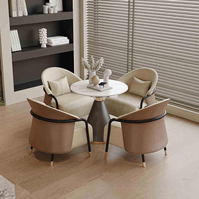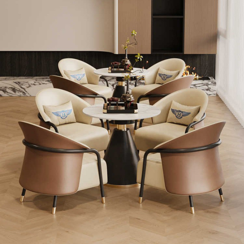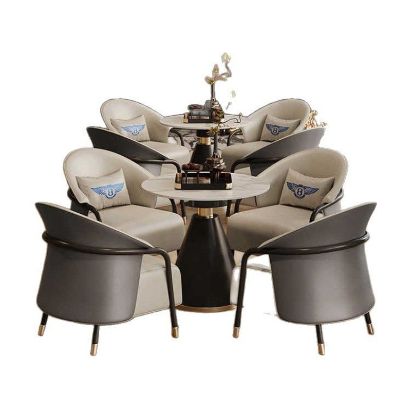 Легкий роскошный офис продаж, диван, стол и стул, комбинация, вестибюль отеля, небольшой круглый стол, приемная, деловая приемная, один стол и четыре стула