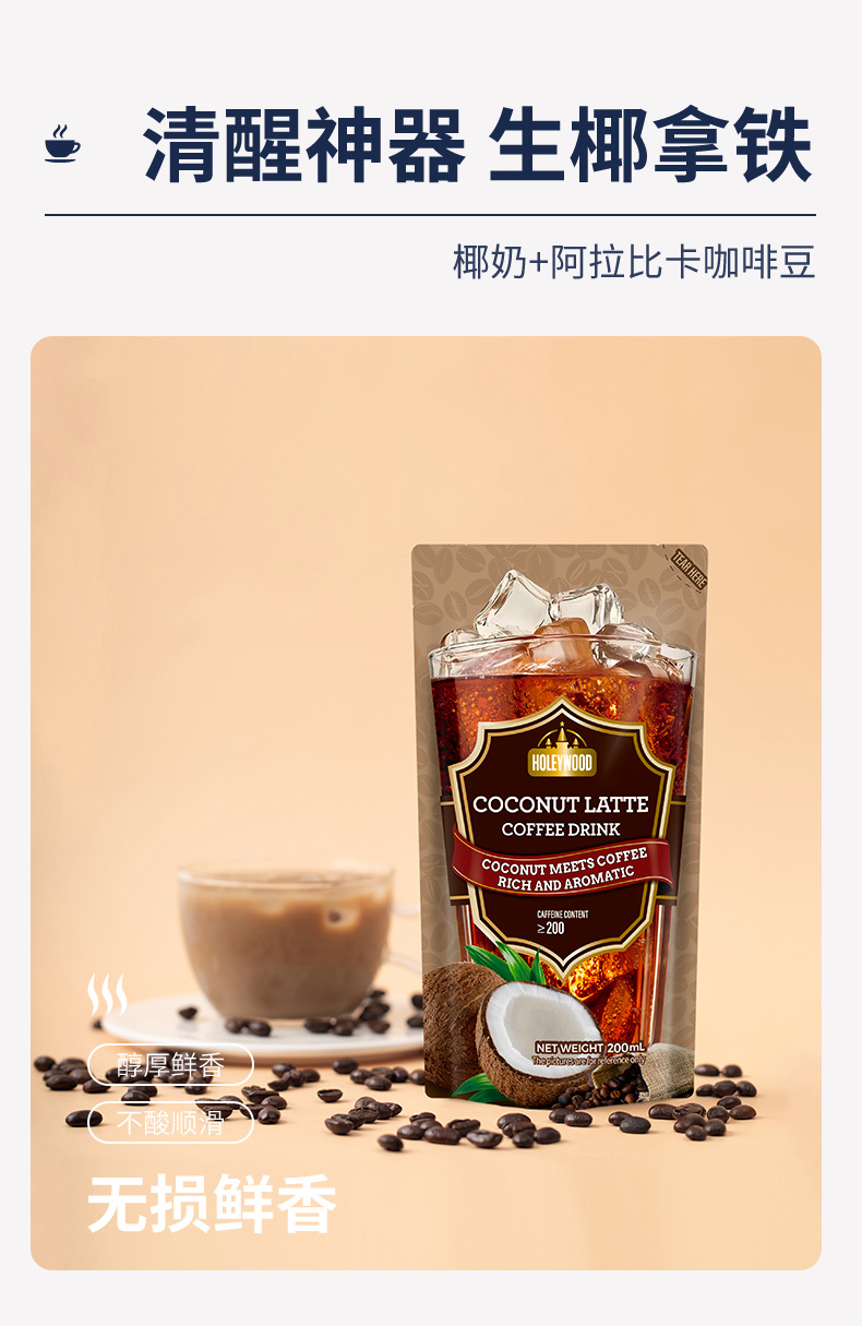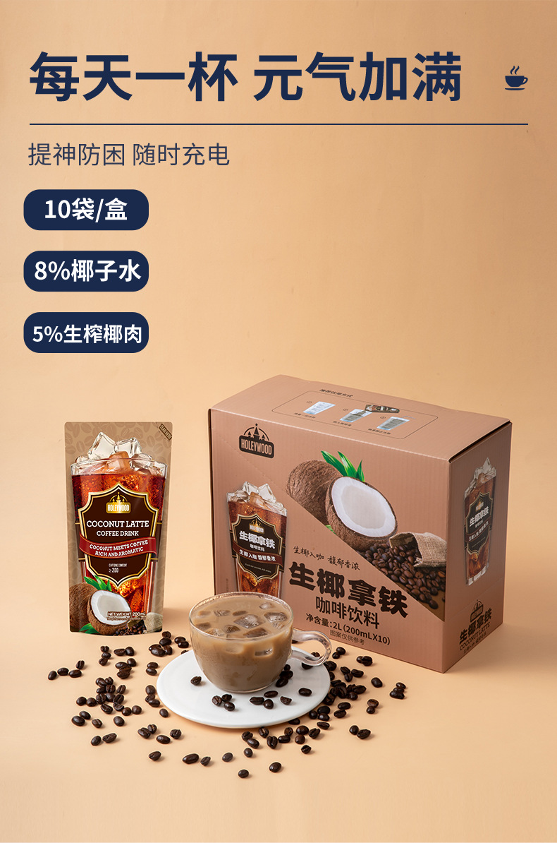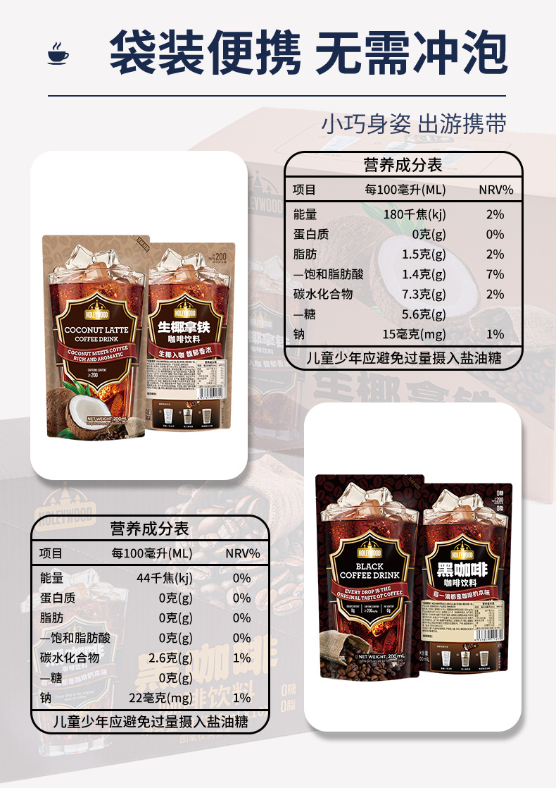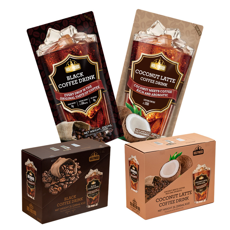 200 мл/пакет черного кофе; 200 мл/пакетик сырых кокосовых латте