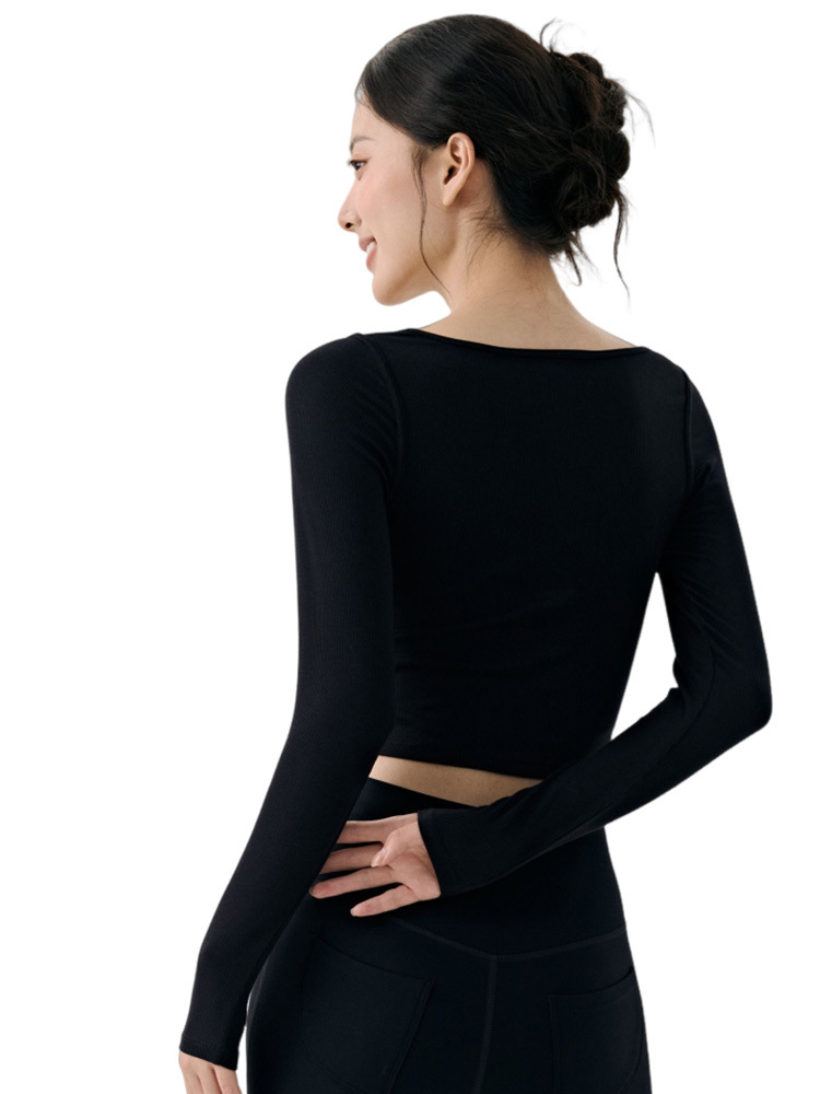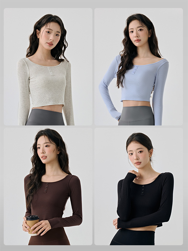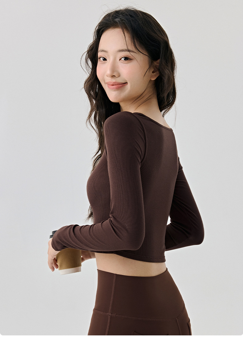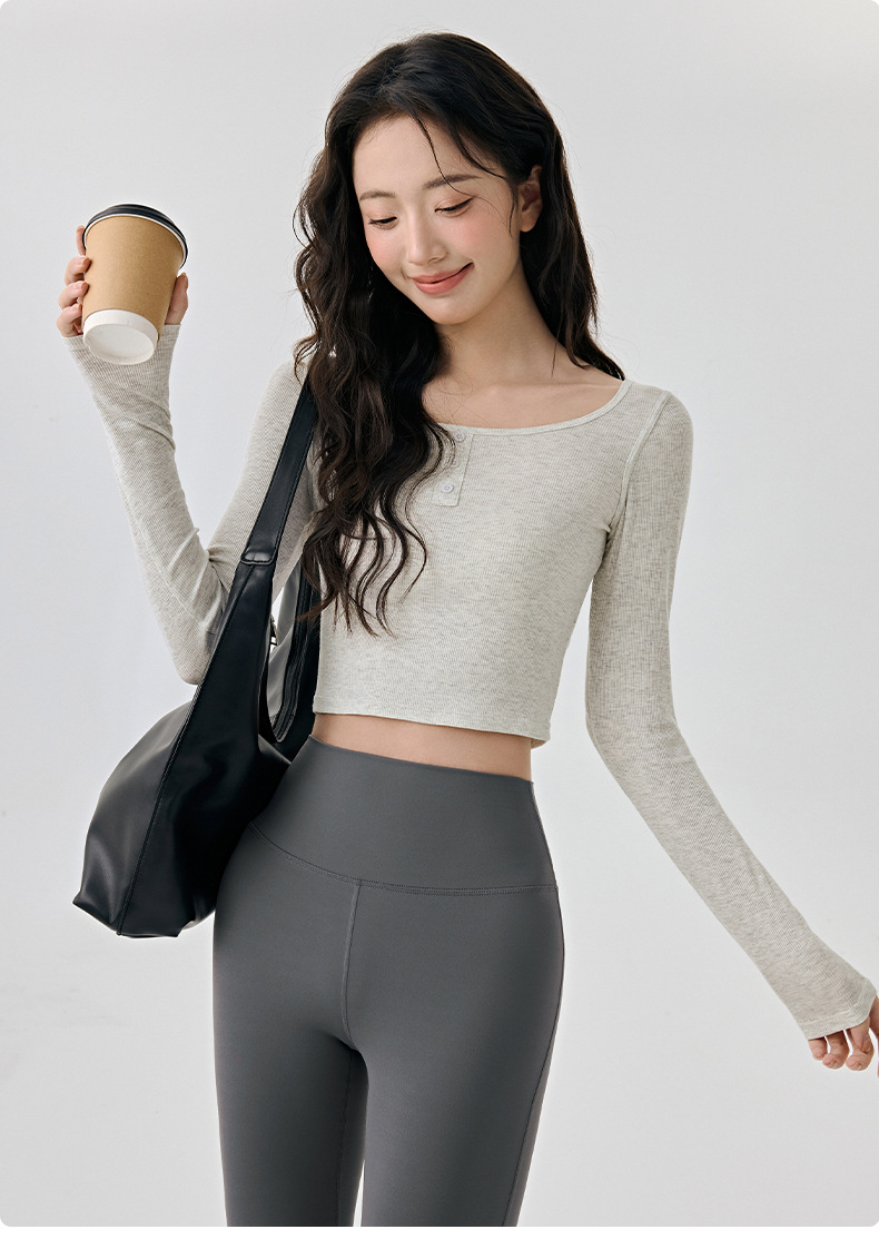 Однотонные короткие топы для йоги с длинными рукавами, обтягивающие, для похудения, для бега, фитнеса, модные спортивные топы с круглым вырезом для женщин