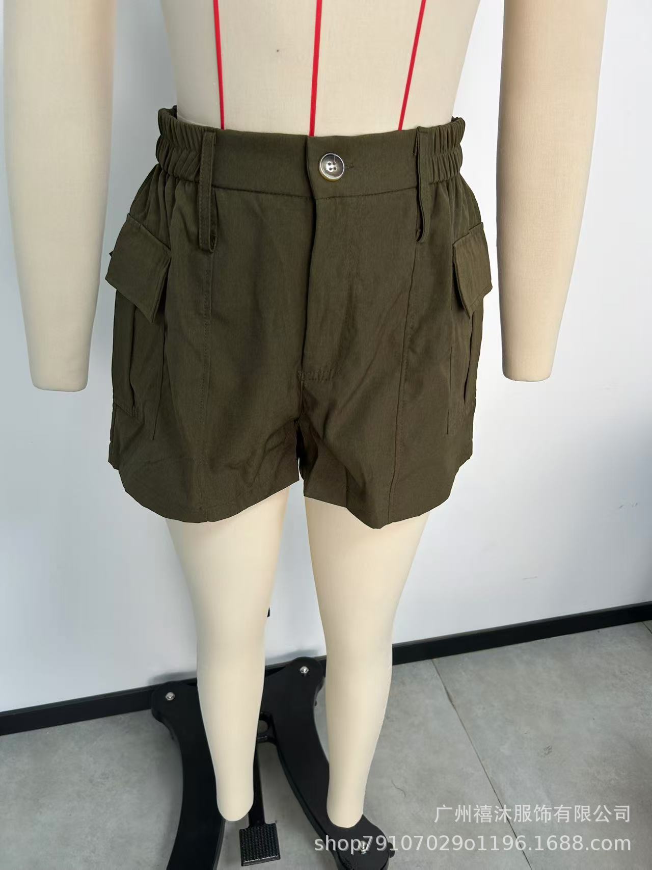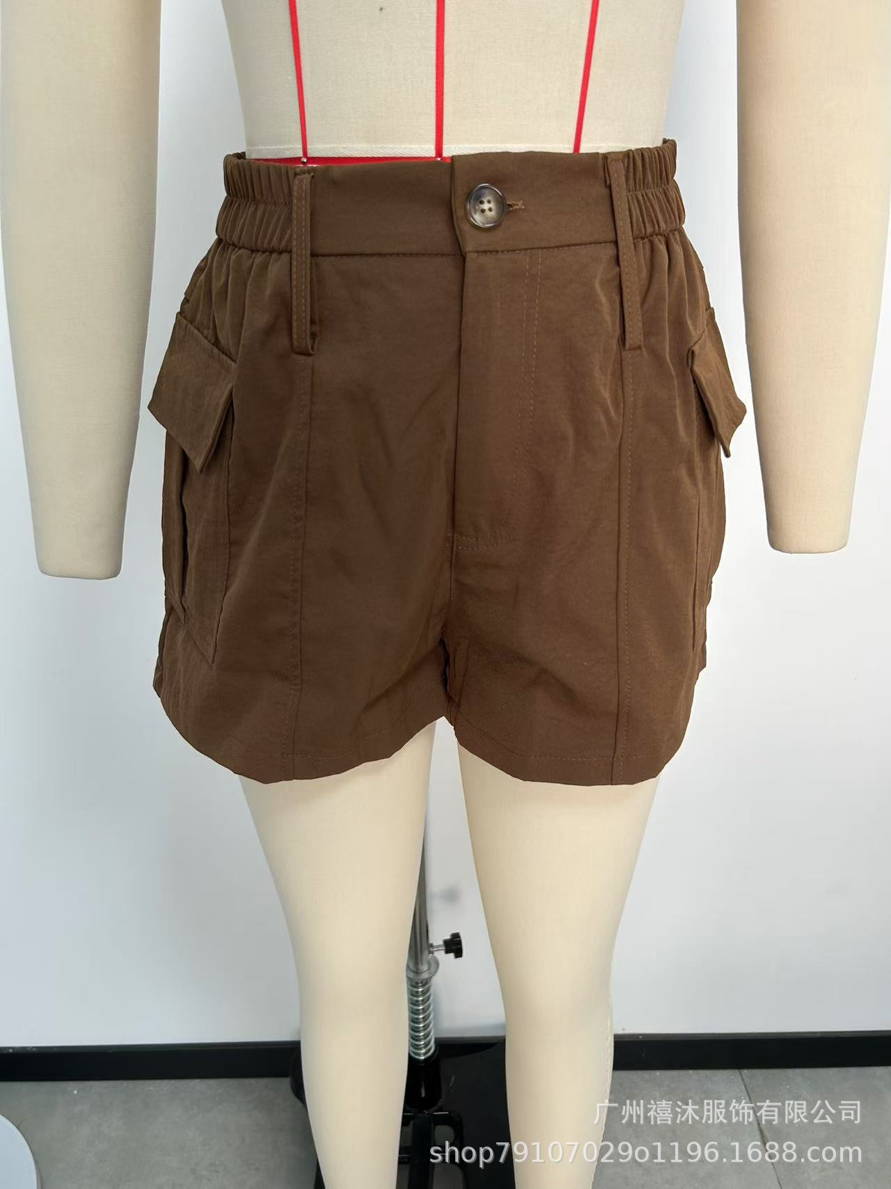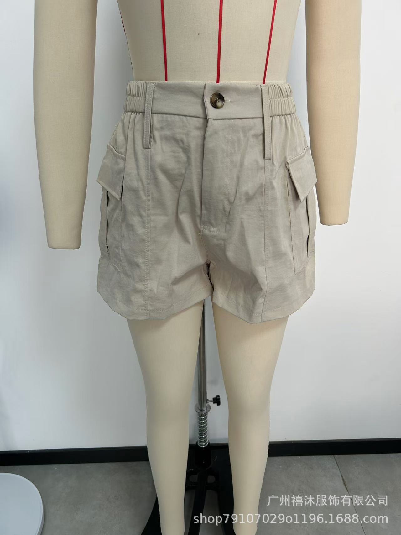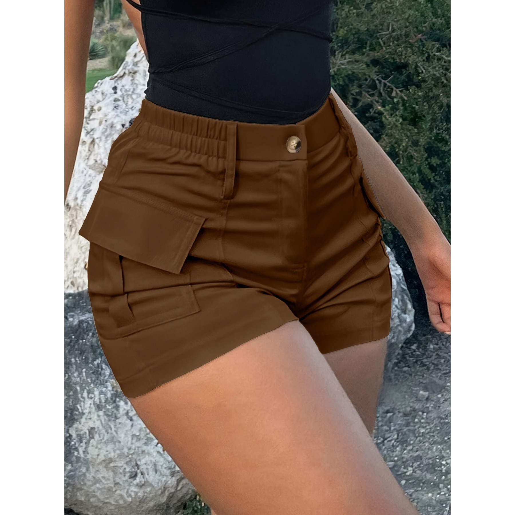 В наличии — европейские и американские стильные женские шорты-карго с высокой талией, на пуговицах, с карманами, для eBay, 2025 года.