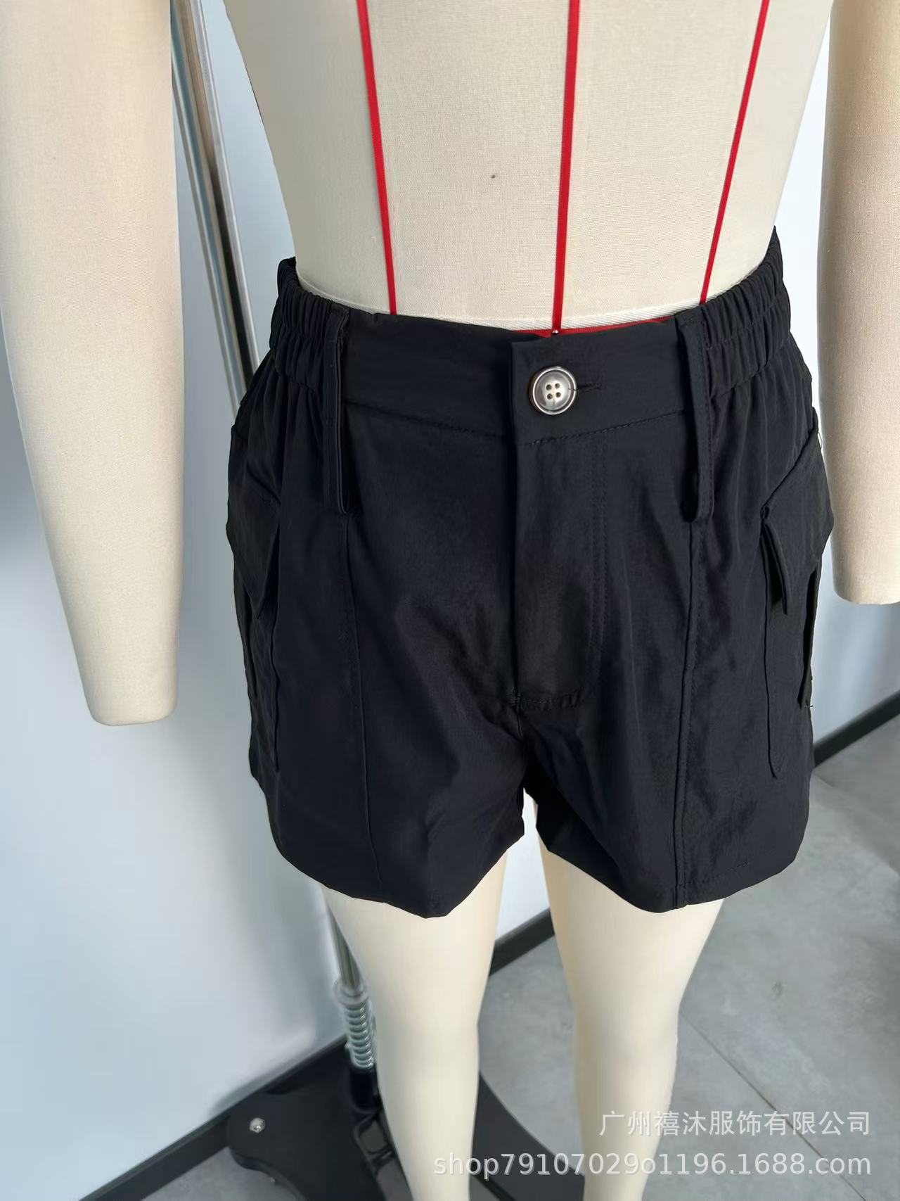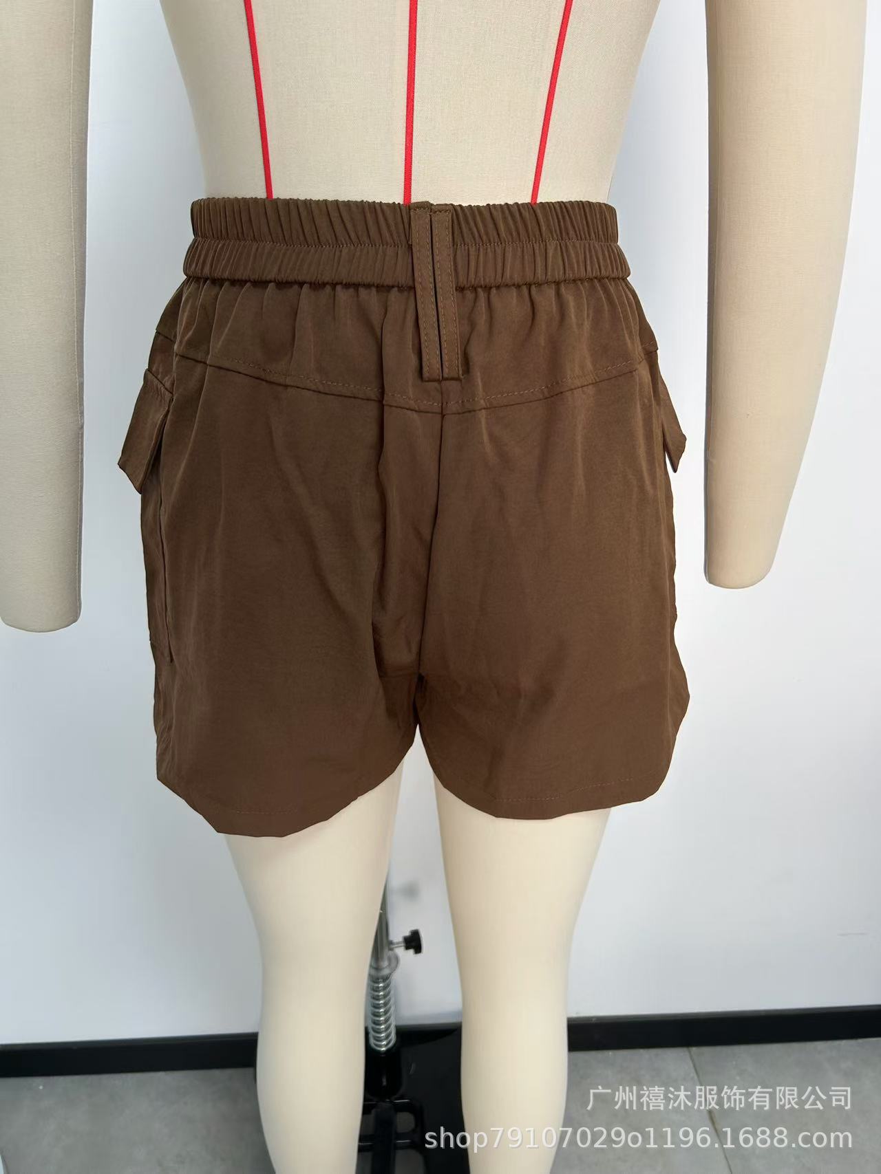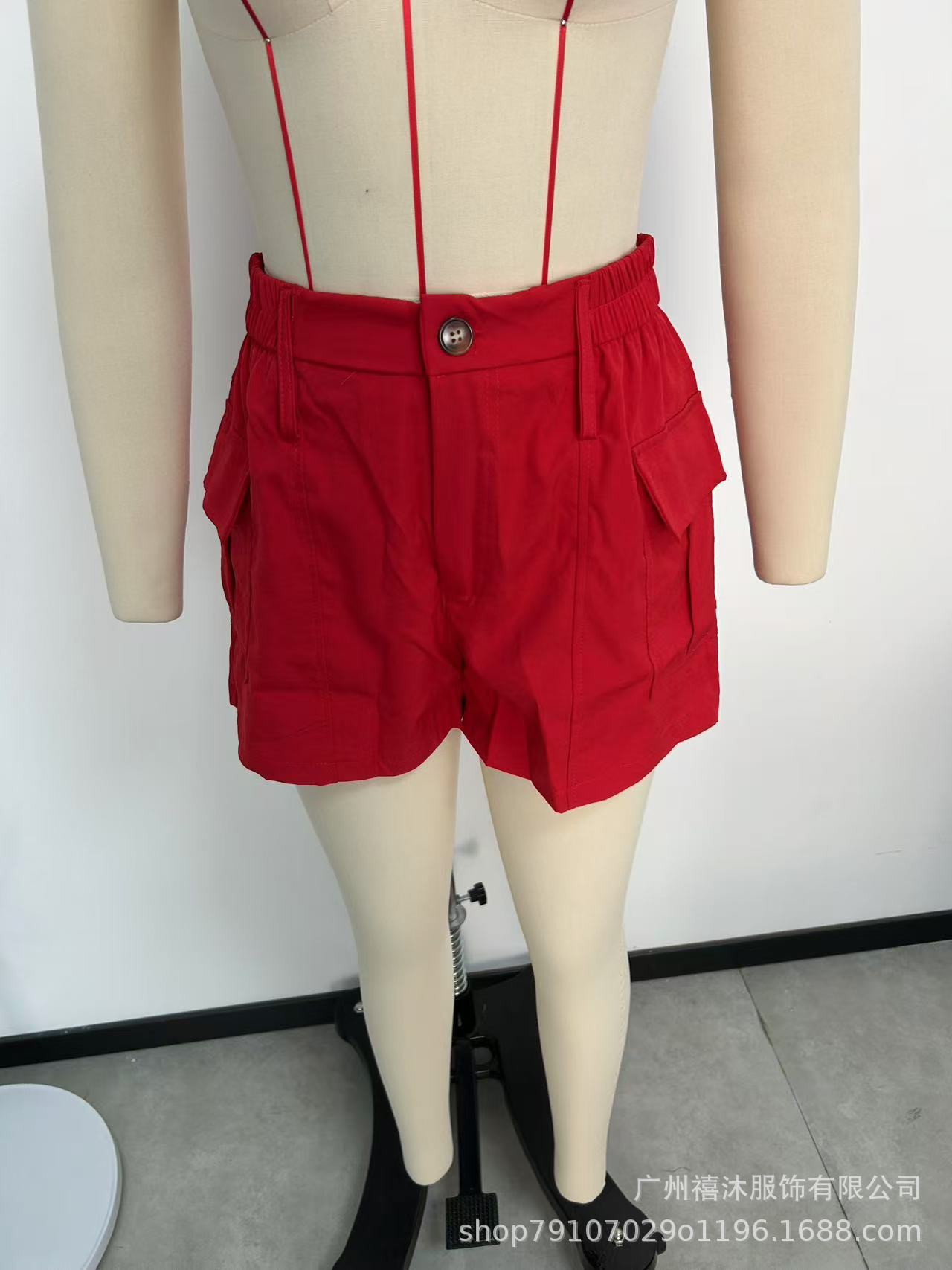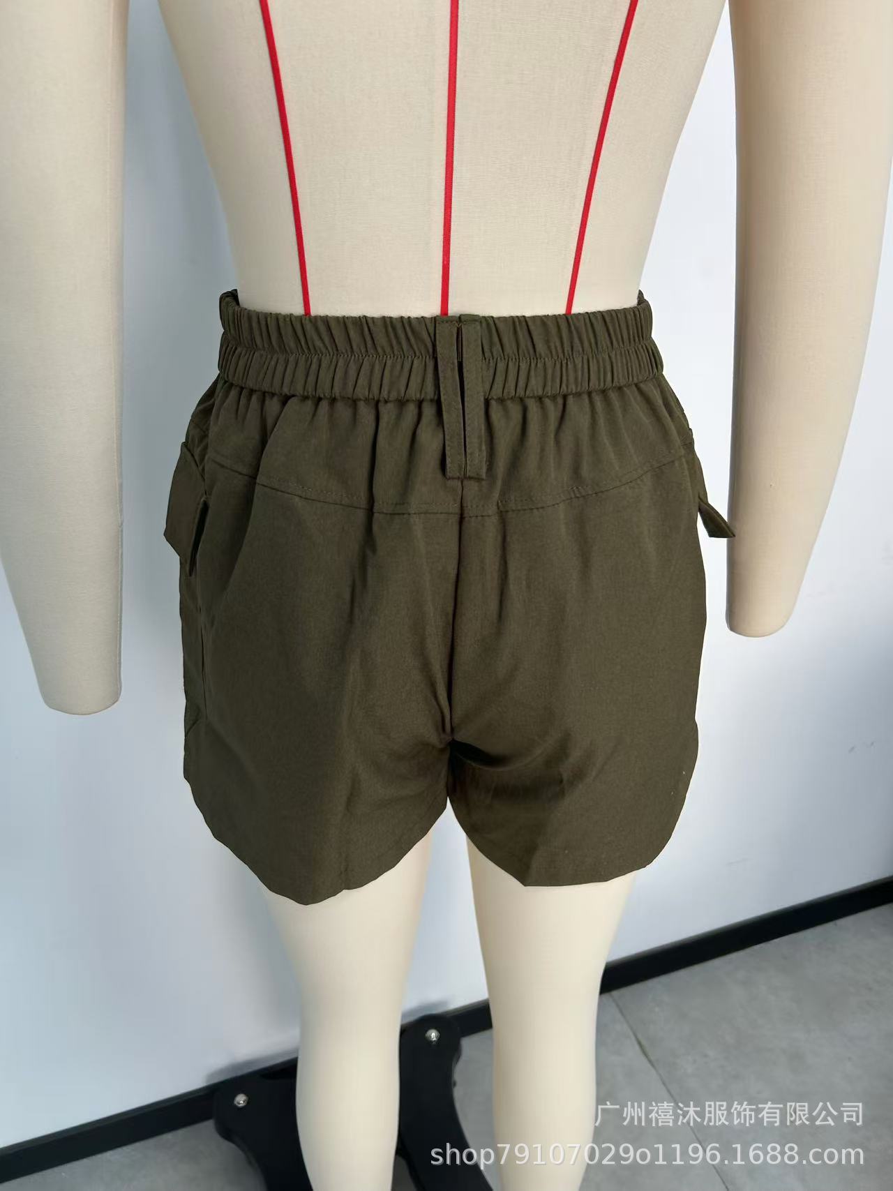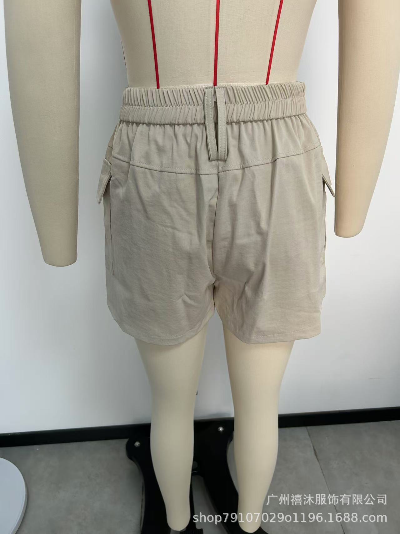 В наличии — европейские и американские стильные женские шорты-карго с высокой талией, на пуговицах, с карманами, для eBay, 2025 года.