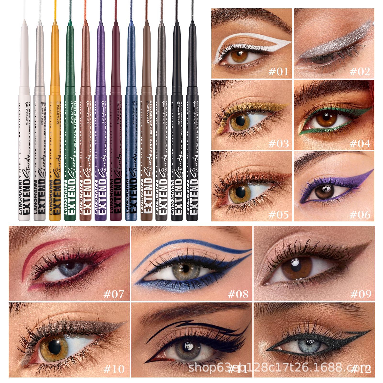 Новая двенадцатицветная гелевая подводка для глаз LANGMANNI, эксклюзивная трансграничная полностью укомплектованная вращающаяся подводка для глаз Temu