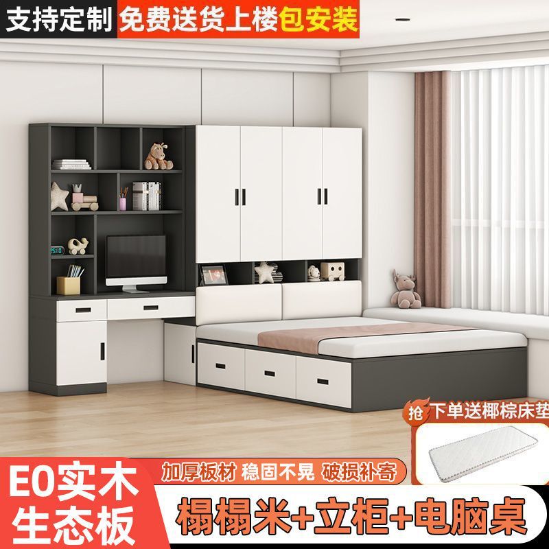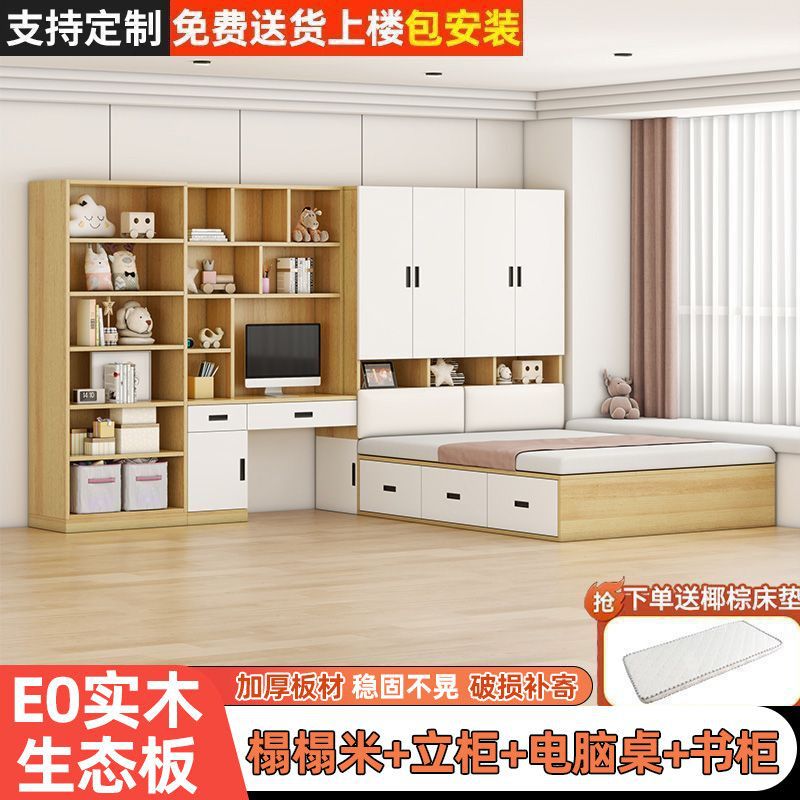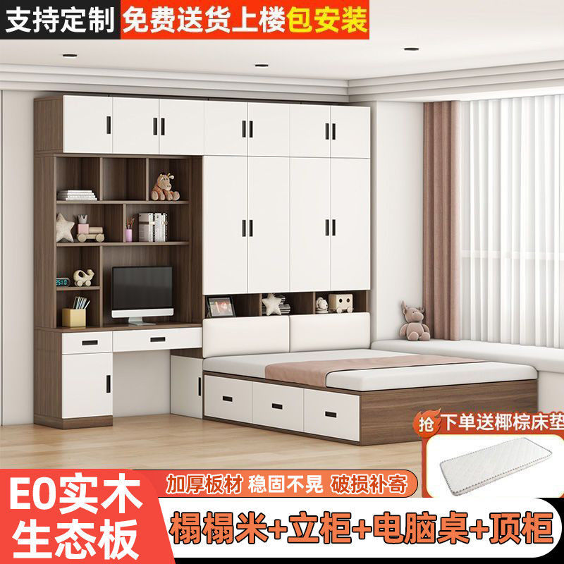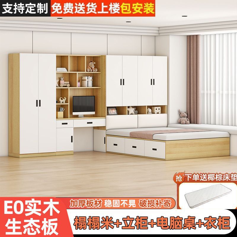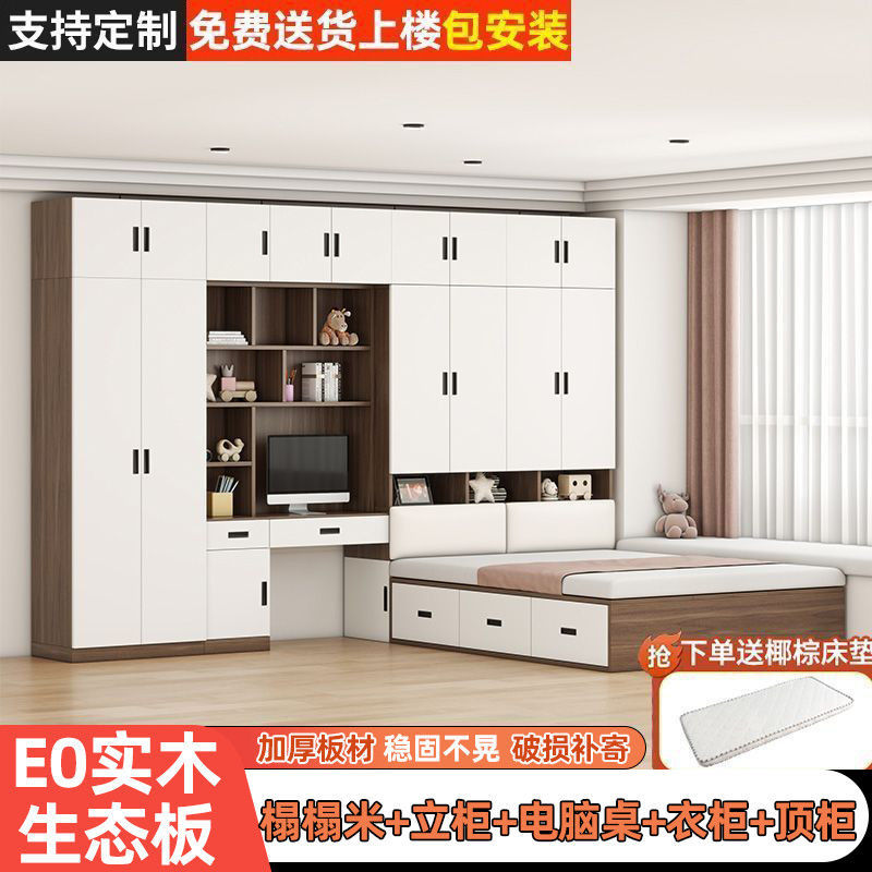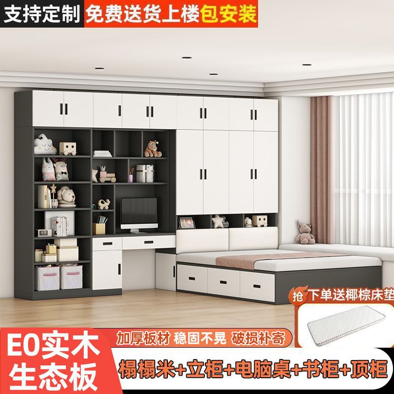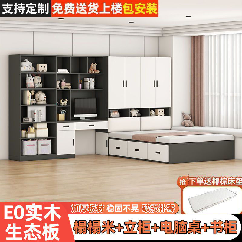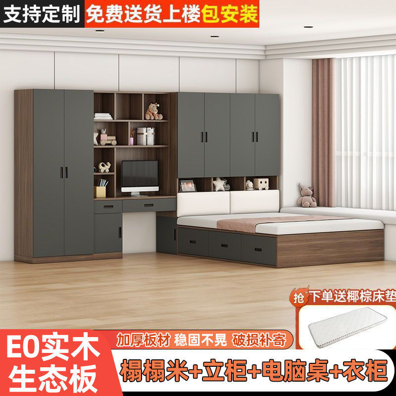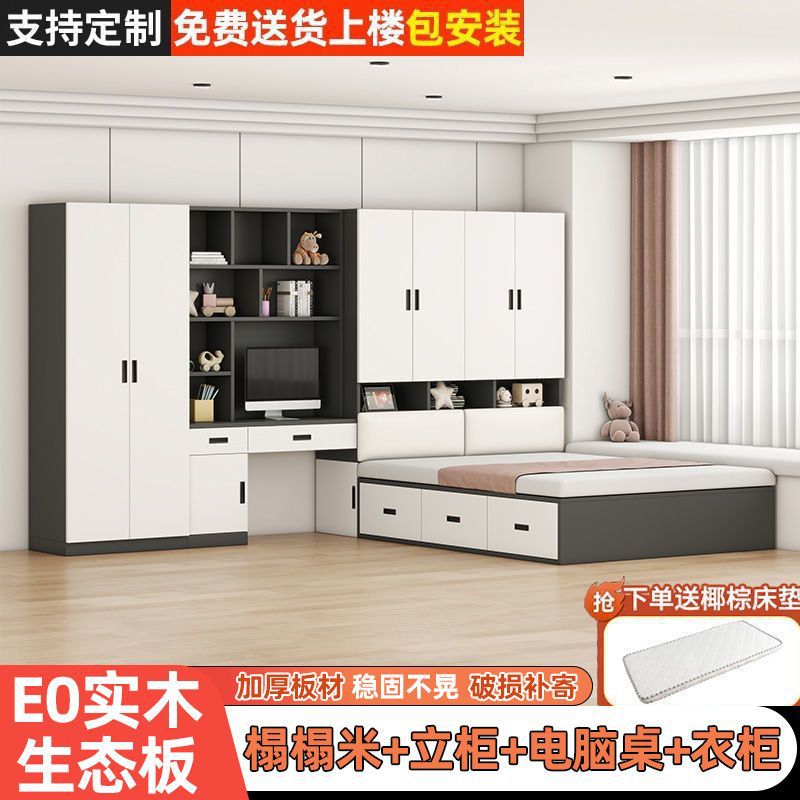 Татами-кровать с интегрированным шкафом для малогабаритной квартиры, многофункциональная комбинация для спальни, гардеробная, шкаф-стол, кровать с ящиками для хранения из массива дерева
