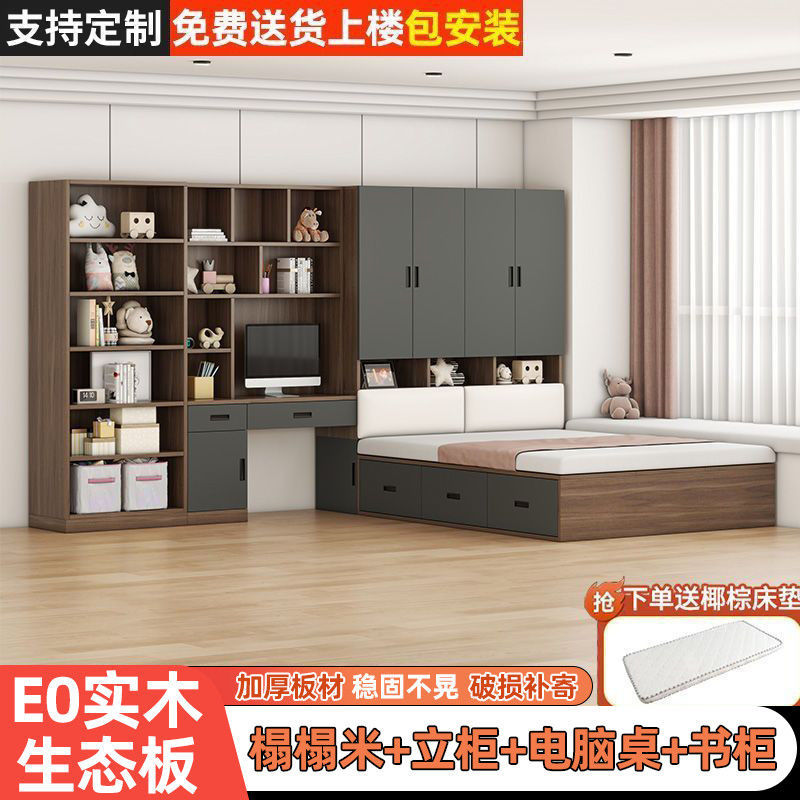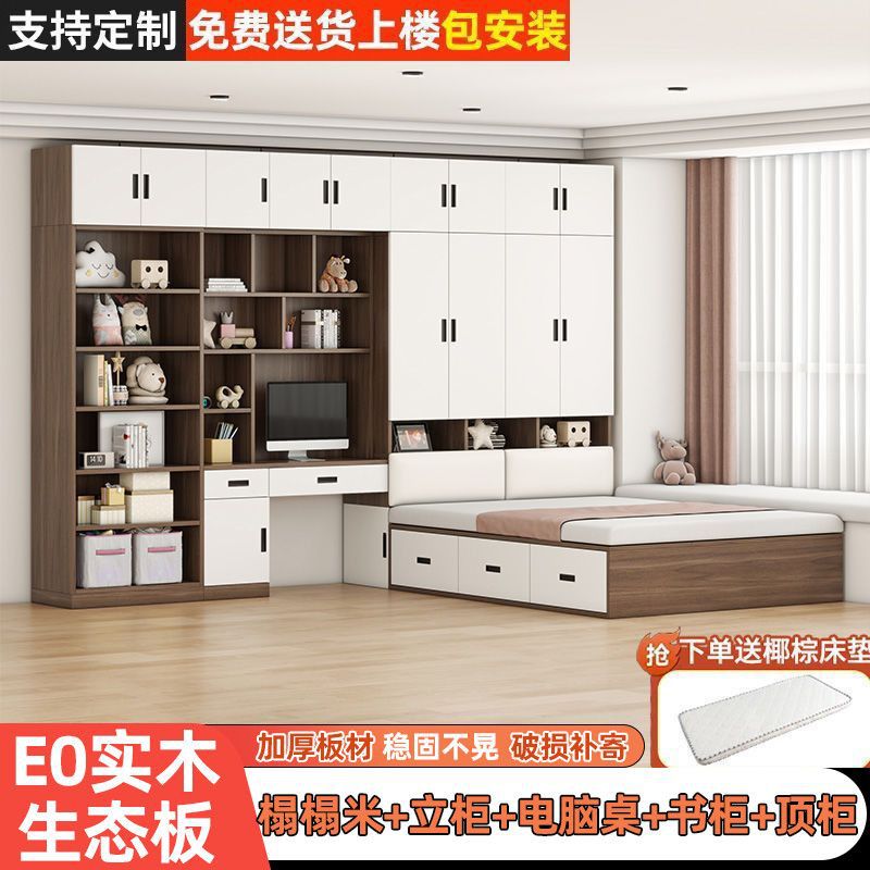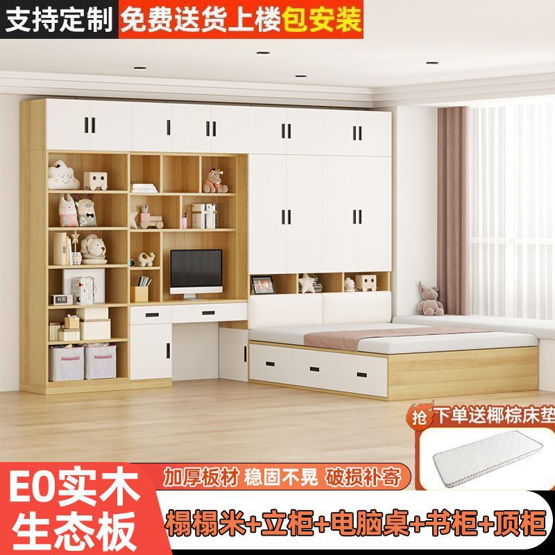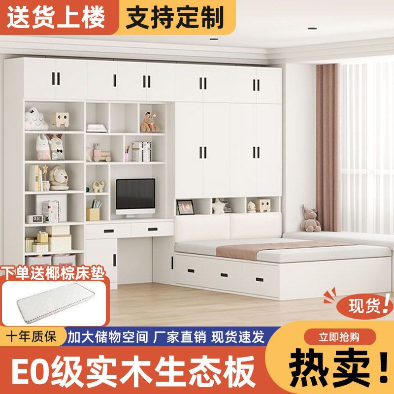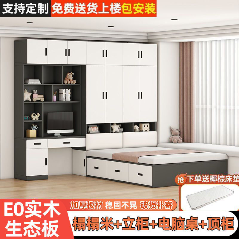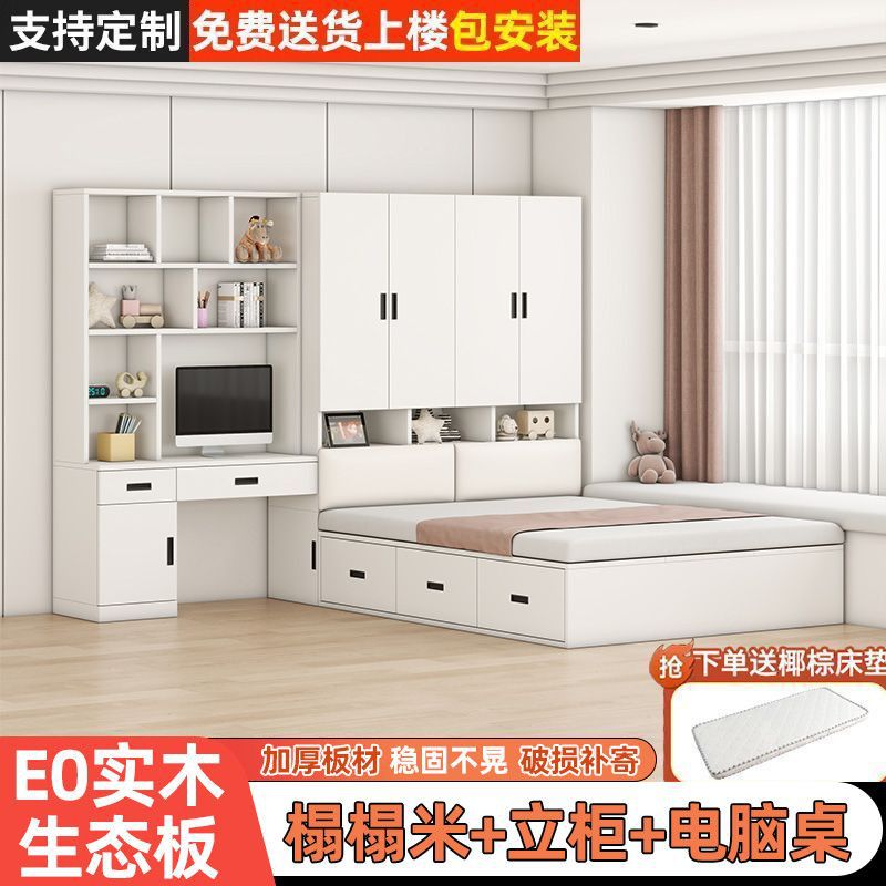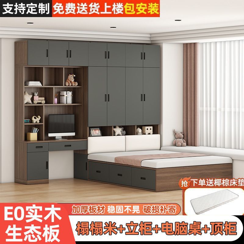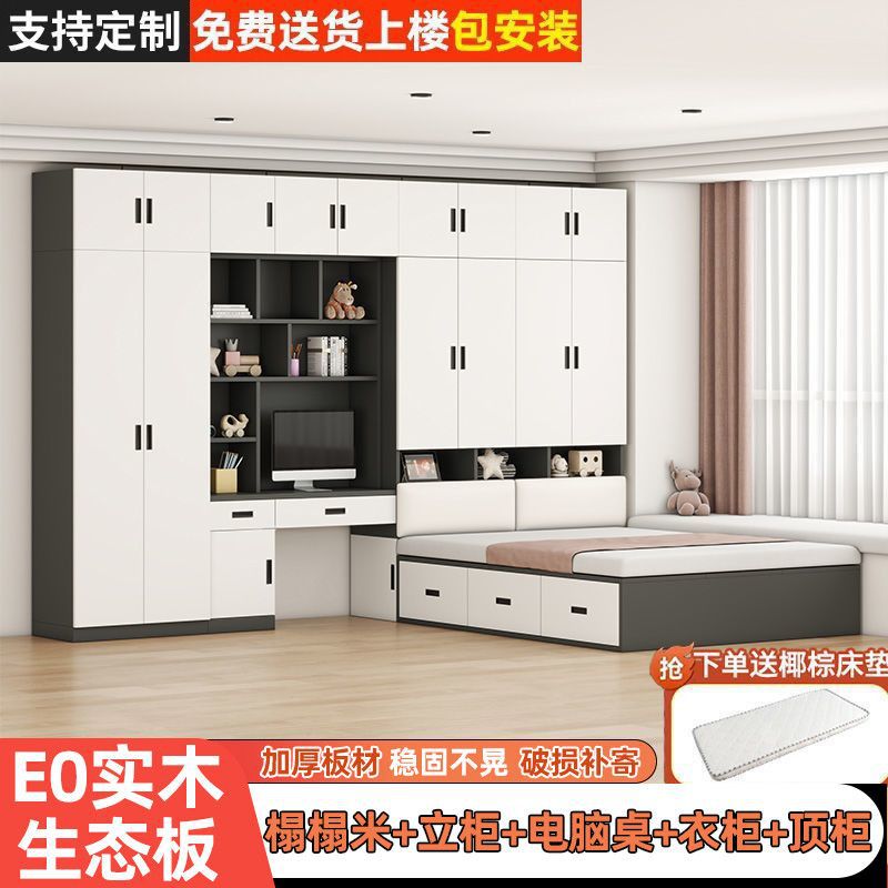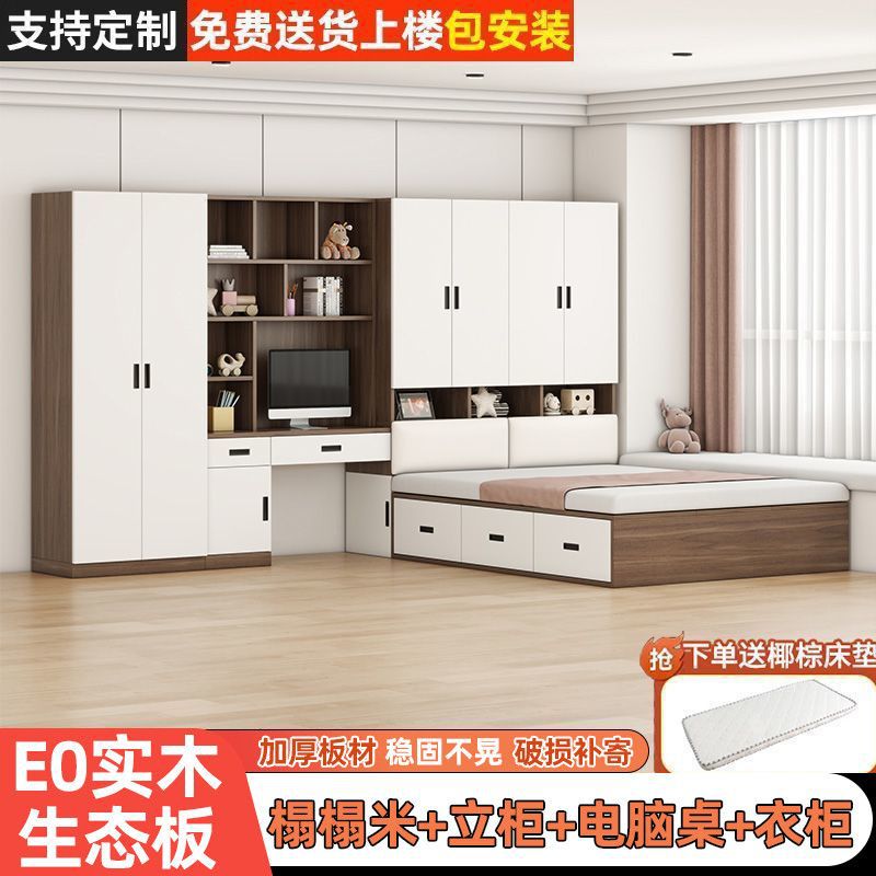 Татами-кровать с интегрированным шкафом для малогабаритной квартиры, многофункциональная комбинация для спальни, гардеробная, шкаф-стол, кровать с ящиками для хранения из массива дерева