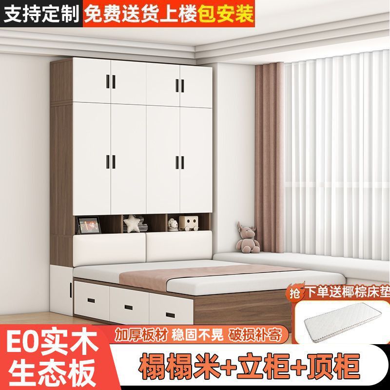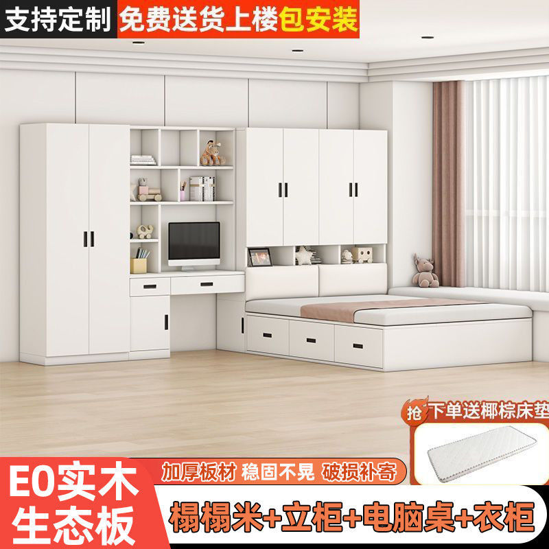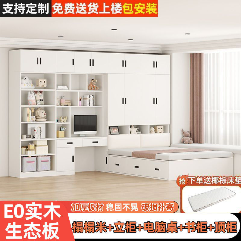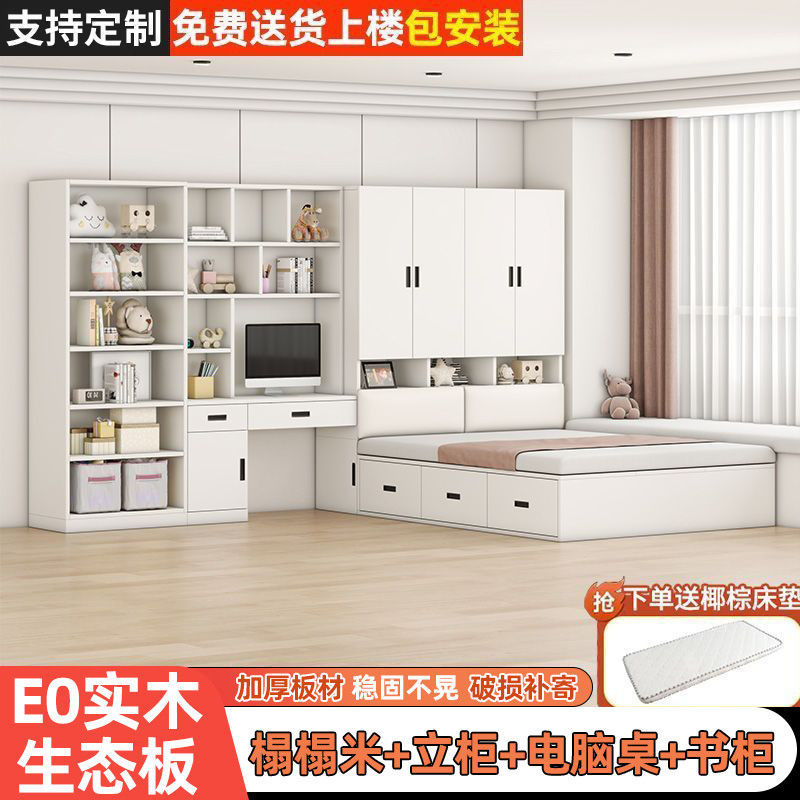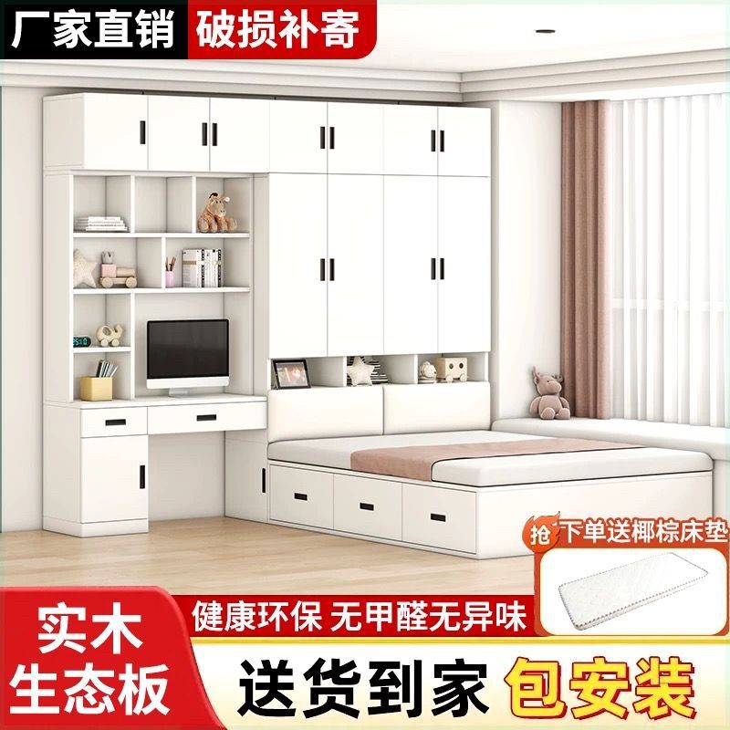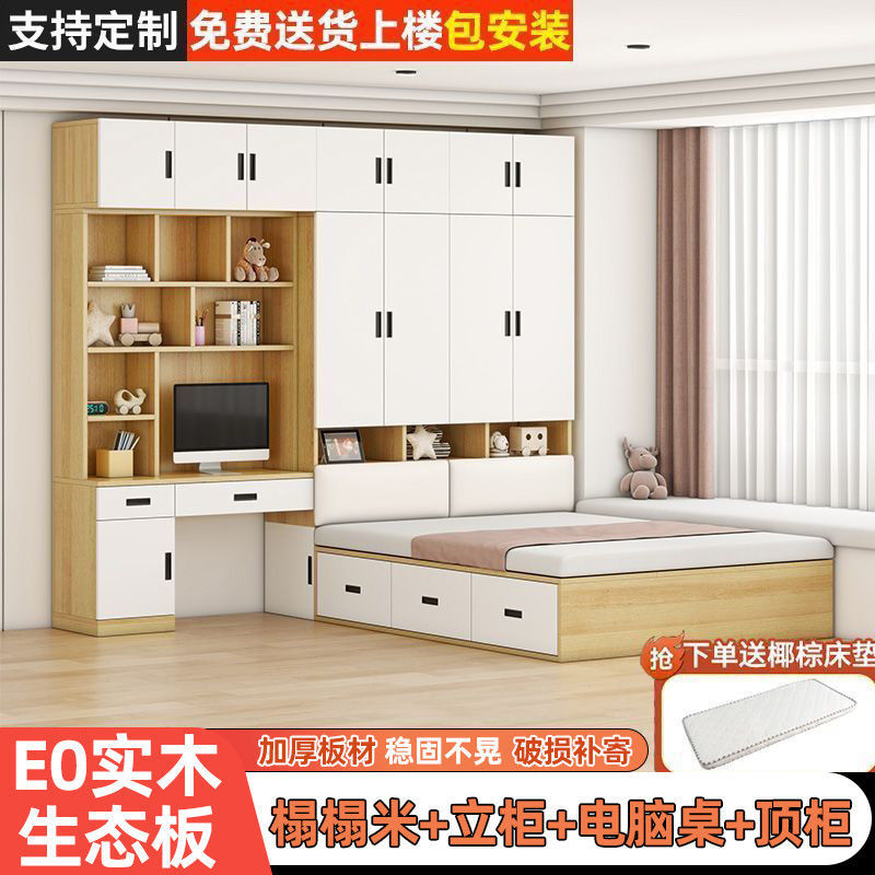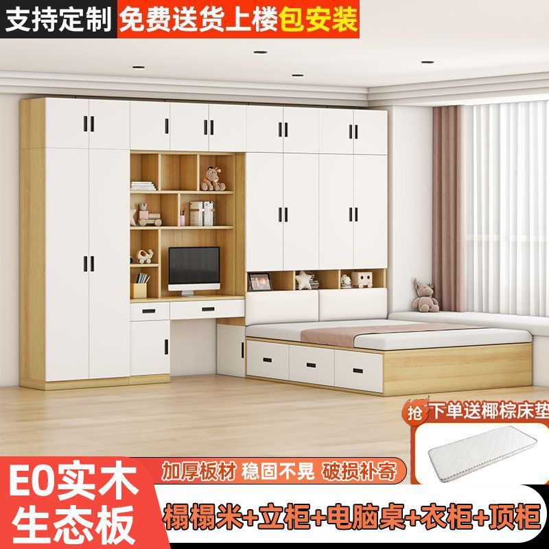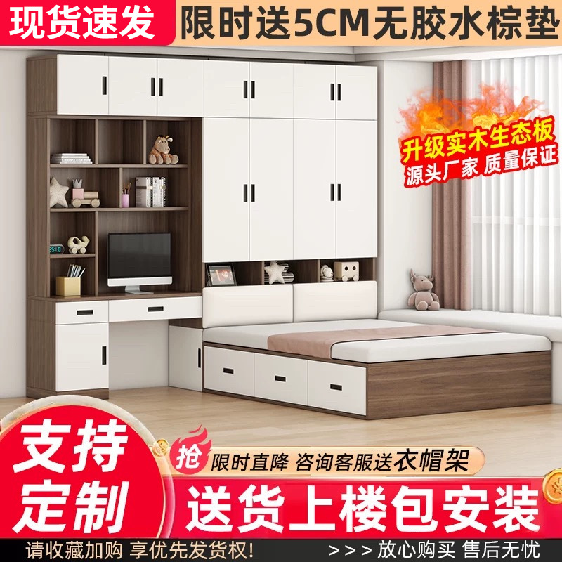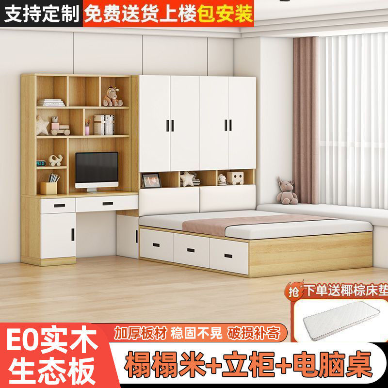 Татами-кровать с интегрированным шкафом для малогабаритной квартиры, многофункциональная комбинация для спальни, гардеробная, шкаф-стол, кровать с ящиками для хранения из массива дерева