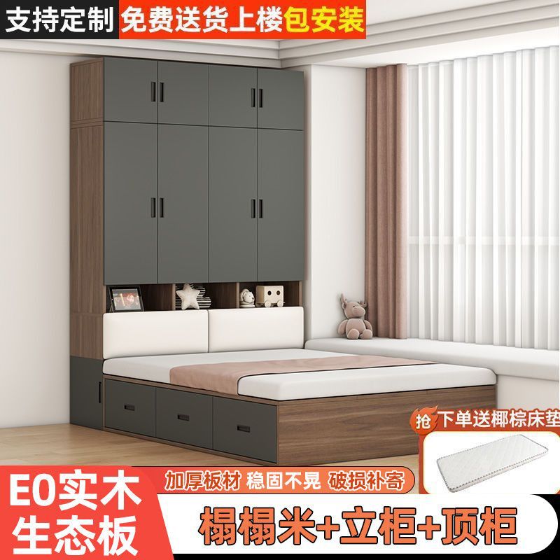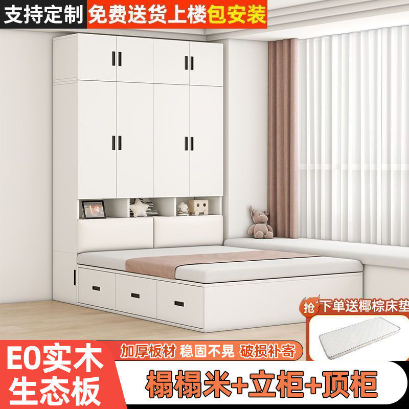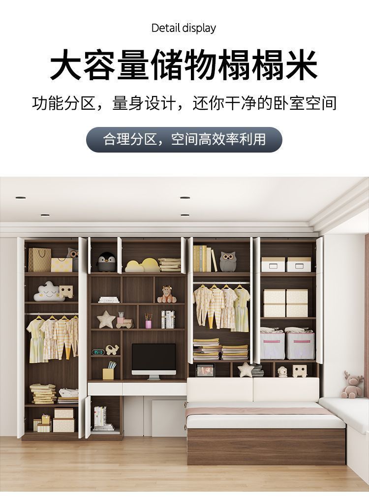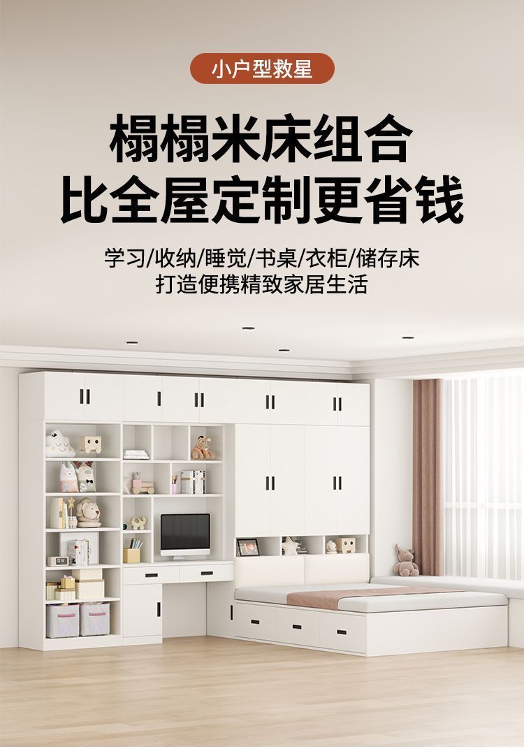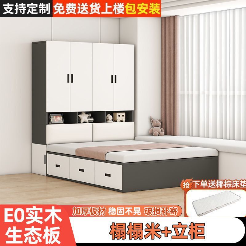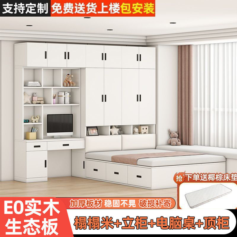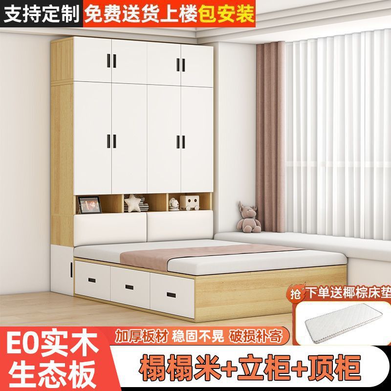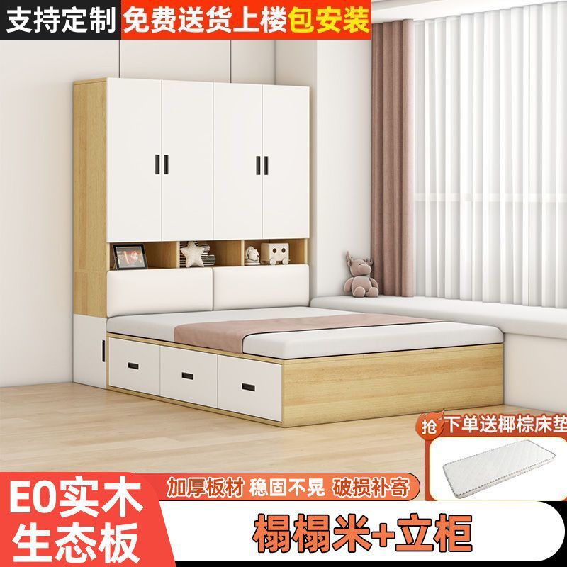 Татами-кровать с интегрированным шкафом для малогабаритной квартиры, многофункциональная комбинация для спальни, гардеробная, шкаф-стол, кровать с ящиками для хранения из массива дерева
