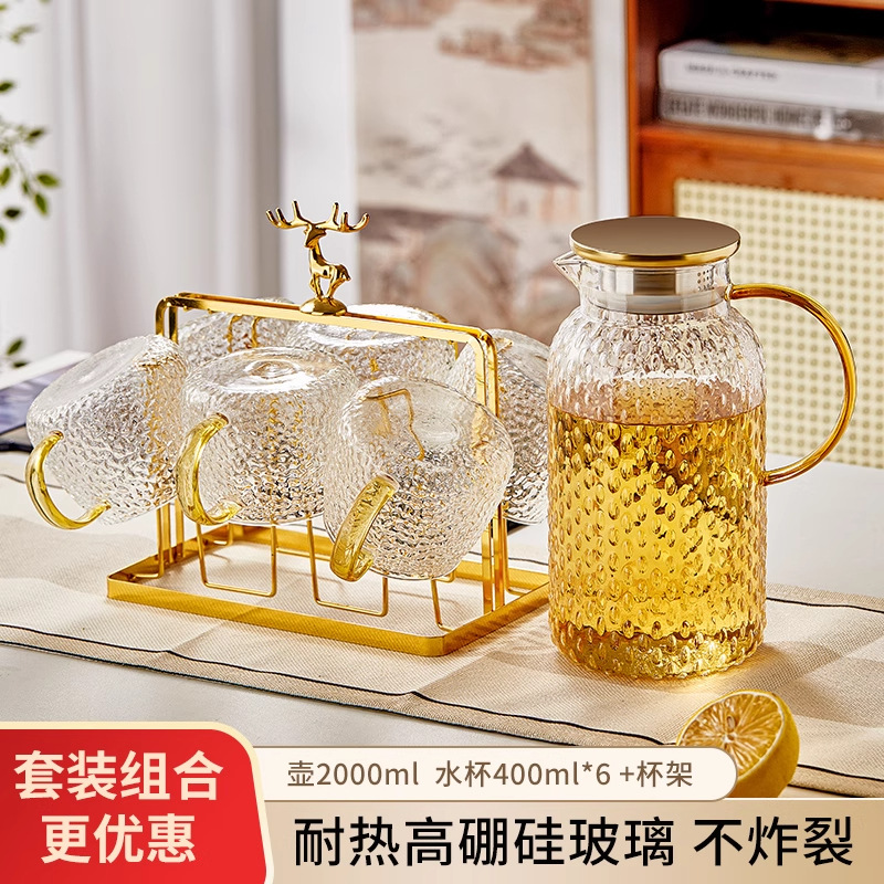 Круглый кованый горшок емкостью 1600 мл (кипятить воду непосредственно в высоком боросиликатном стекле); Круглый кованый горшок 1600 мл + 2 кованых стакана по 400 мл.; В случае - круглый кованый горшок объемом 2000 мл (кипятить прямо в высоком боросиликатном стекле); Круглый кованый горшок 2000 мл + 2 кованых стакана по 400 мл.; Круглый кованый горшок 2000 мл + 4 кованых стакана по 400 мл; Круглый кованый горшок 2000 мл + 6 кованых чашек по 400 мл.; Круглый кованый горшок 2000 мл + 6 кованых чашек по 400 мл + подстаканник с золотым оленем; (Крышка из нержавеющей стали серебристого цвета) Круглый кованый горшок емкостью 2000 мл (кипящая вода поступает непосредственно в боросиликатное стекло с высоким содержанием боросиликата); (Серебряная крышка из нержавеющей стали) круглая чашка объемом 2000 мл с молотком + 2 чашки объемом 400 мл с молотком; (Серебряная крышка из нержавеющей стали) круглая чашка объемом 2000 мл с молотком + 4 чашки объемом 400 мл с молотком; Конический чайник с кованым узором, объем 1800 мл; Конический кувшин 1800 мл с кованым узором + 2 чашки; Конический кувшин 1800 мл с молотковой текстурой + 4 чашки; Конический кувшин 1800 мл с молотковой текстурой + 6 чашек; Кубок Ананаса