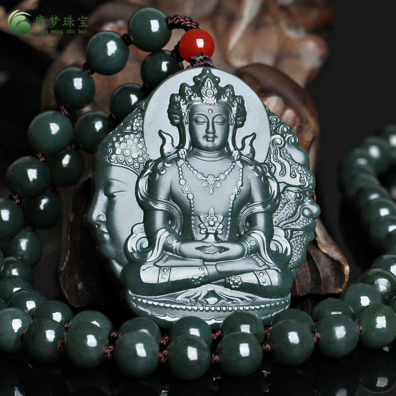 Натуральный нефритовый кулон из Синьцзяна Хэтянь с сапфирином, нефритовый кулон Будды и демона, мужское и женское нефритовое ювелирное ожерелье