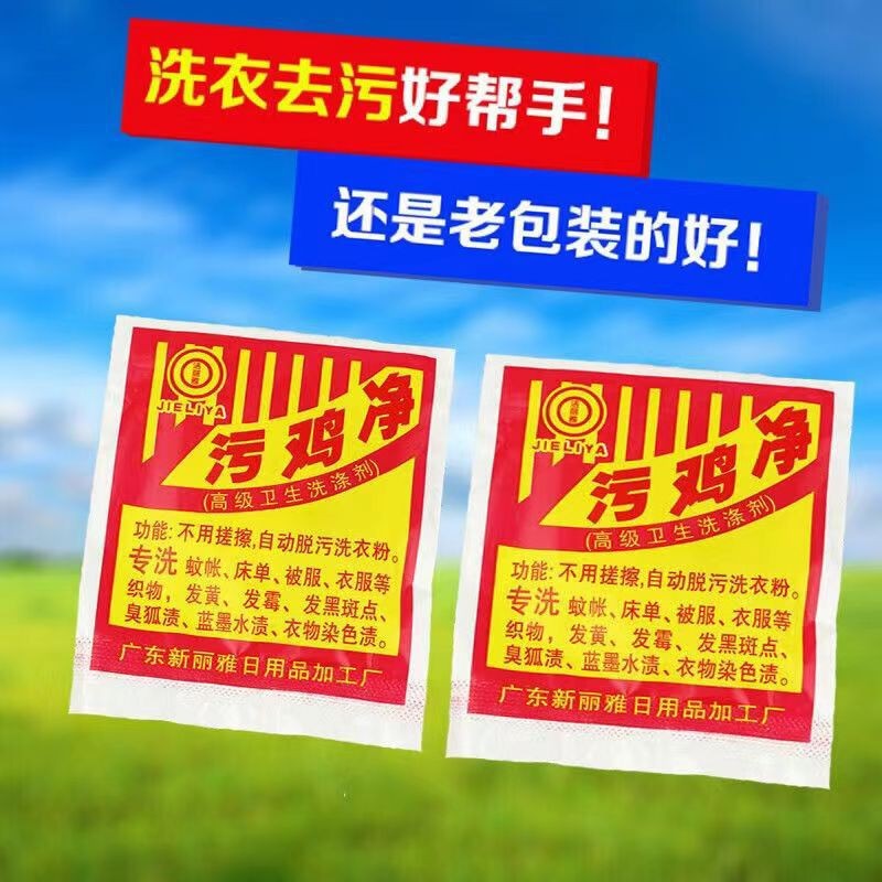 1、不可以把污鸡净的粉未直接洒在衣服上!一定要先将粉未融化在开水中,再放入衣服浸泡!!水量以刚好淹没衣服为准!